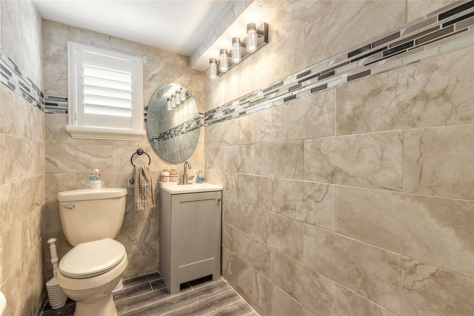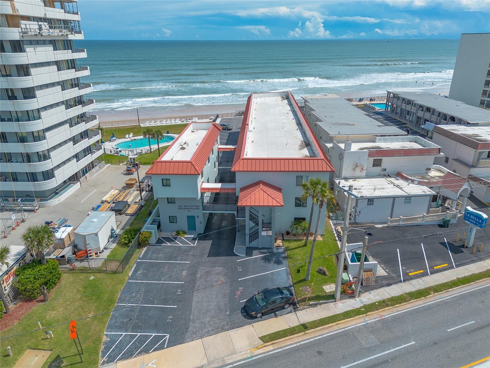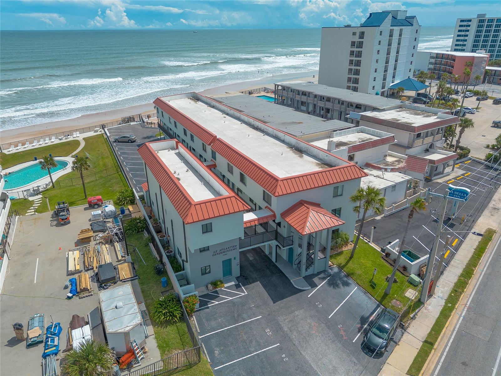 Your oceanfront getaway awaits at Le Atlantico, a true beachfront treasure in Daytona Beach. This two-story, second-floor condo features 2 bedrooms, 1.5 baths, and an open, airy layout. The spacious living room offers captivating ocean views right from your window. The adjoining kitchen makes entertaining effortless with brand new grey shaker cabinets, stainless steel appliances and tile backsplash to tie everything together. Plank tile floors throughout and both half bath and full bath have elegant tile from top to bottom. Upstairs, you'll find two comfortable bedrooms with walk in closets creating the perfect retreat after a day by the beach.