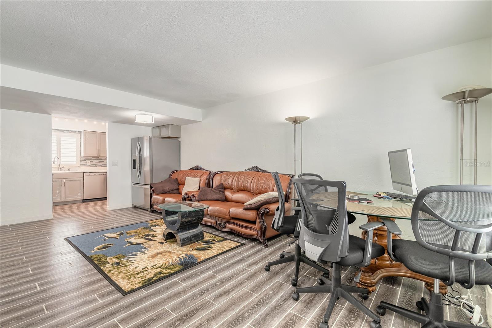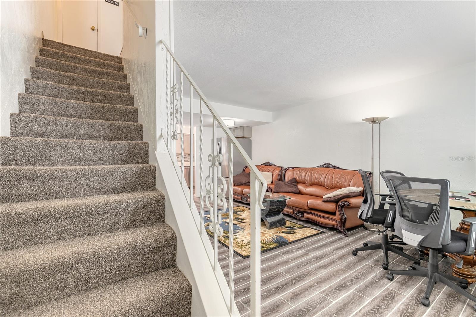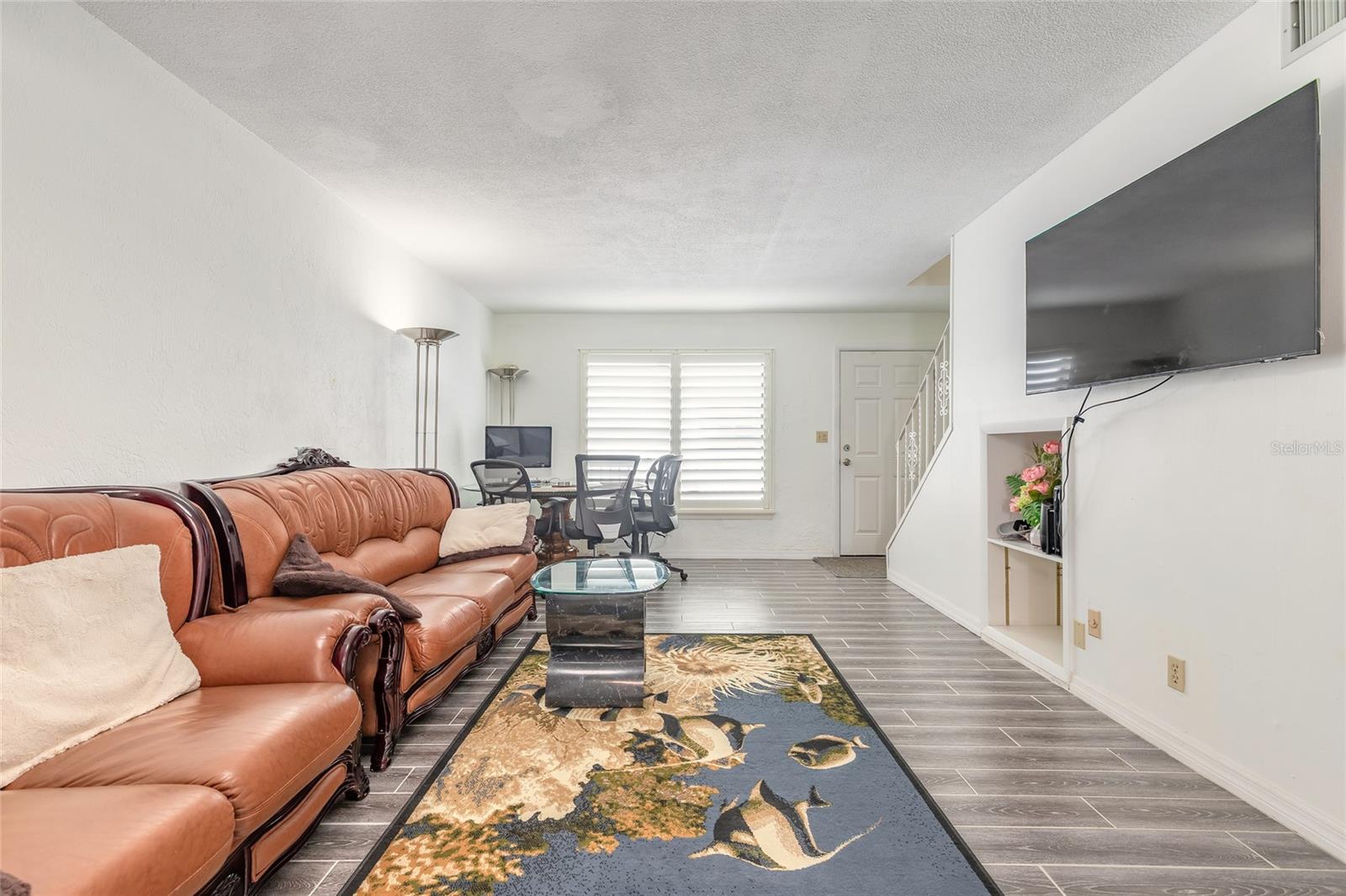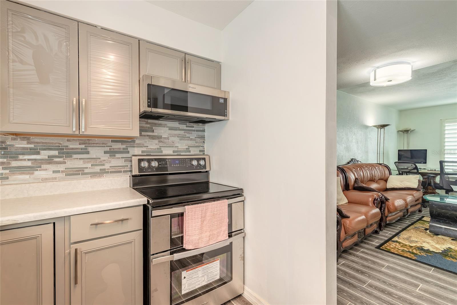 Your oceanfront getaway awaits at Le Atlantico, a true beachfront treasure in Daytona Beach. This two-story, second-floor condo features 2 bedrooms, 1.5 baths, and an open, airy layout. The spacious living room offers captivating ocean views right from your window. The adjoining kitchen makes entertaining effortless with brand new grey shaker cabinets, stainless steel appliances and tile backsplash to tie everything together. Plank tile floors throughout and both half bath and full bath have elegant tile from top to bottom. Upstairs, you'll find two comfortable bedrooms with walk in closets creating the perfect retreat after a day by the beach.