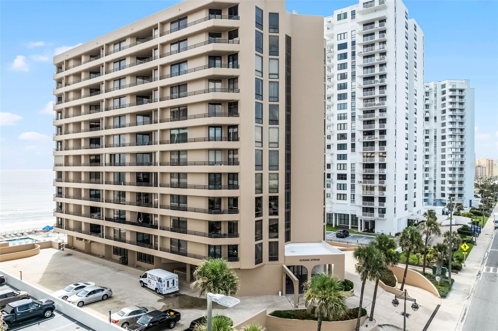 Incredible ocean view! Welcome to this stunning 6th floor 2-bedroom, 2-bathroom condo located in the highly desirable Oceans Atrium — an oceanfront community offering the perfect blend of comfort, luxury, and breathtaking coastal views. The spacious primary suite offers direct balcony access, a walk-in closet, and a private en-suite bath, creating the ultimate coastal retreat. Enjoy morning coffee or evening sunsets from your private wrap-around balcony, with ocean views visible from the living room, dining area, kitchen, and primary bedroom. Oceans Atrium offers a full suite of resort-style amenities, including a reserved parking spot in the covered garage, ample guest parking on the upper deck, fitness room, sauna, indoor heated pool, oceanfront outdoor pool with sun deck, private beach access, car wash area, bike cage, and social room perfect for gatherings. HOA fees also include: cable, internet, trash, water, sewer, building insurance, pest control, and ground maintenance — allowing for truly hassle-free living. Prime location just minutes from shopping, dining, entertainment, and everything the area has to offer. Don’t miss your chance to own a piece of beachfront paradise — schedule your private showing today!