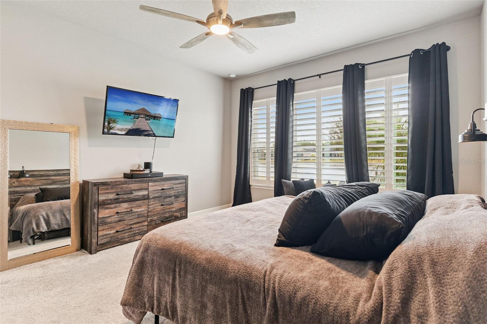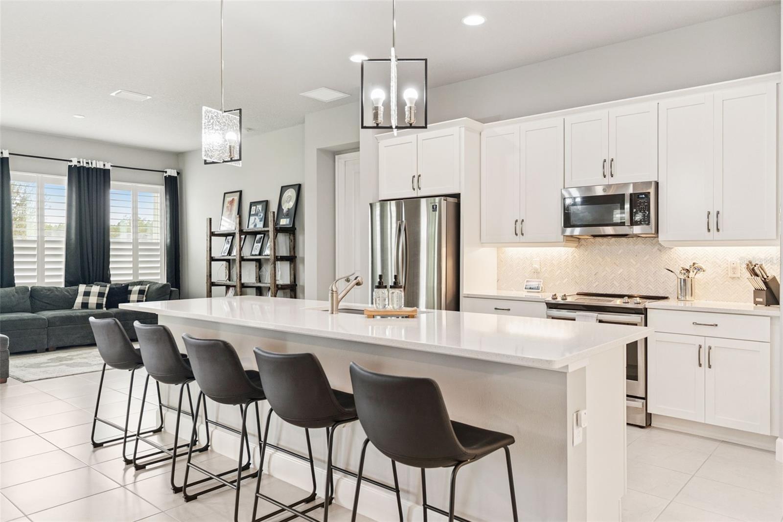 Welcome to this immaculate home in the sought-after Mosaic community of Daytona Beach, FL—built by ICI Homes in 2021. This well-maintained Arden model offers 2,400 sq ft of living space with a thoughtful split floor plan, 10-foot ceilings, and numerous upgrades. The home includes 4 bedrooms and 3 full bathrooms, featuring a spacious primary suite with a large walk-in shower, added bench, and generous closet space. The open-concept living area is centered by a large kitchen with quartz countertops and modern finishes. Flooring includes ceramic tile in main areas and carpet in the bedrooms. Additional upgrades include energy-efficient features, plantation shutters, woven UV shades, and an HVAC system with active air purification. The oversized 3-car garage with epoxy flooring provides excellent storage. A covered lanai overlooks a peaceful pond, and the backyard offers ample access for future projects, including adding a pool. This home has been meticulously cared for with no pets or smoking, offering a pristine, move-in-ready living environment.