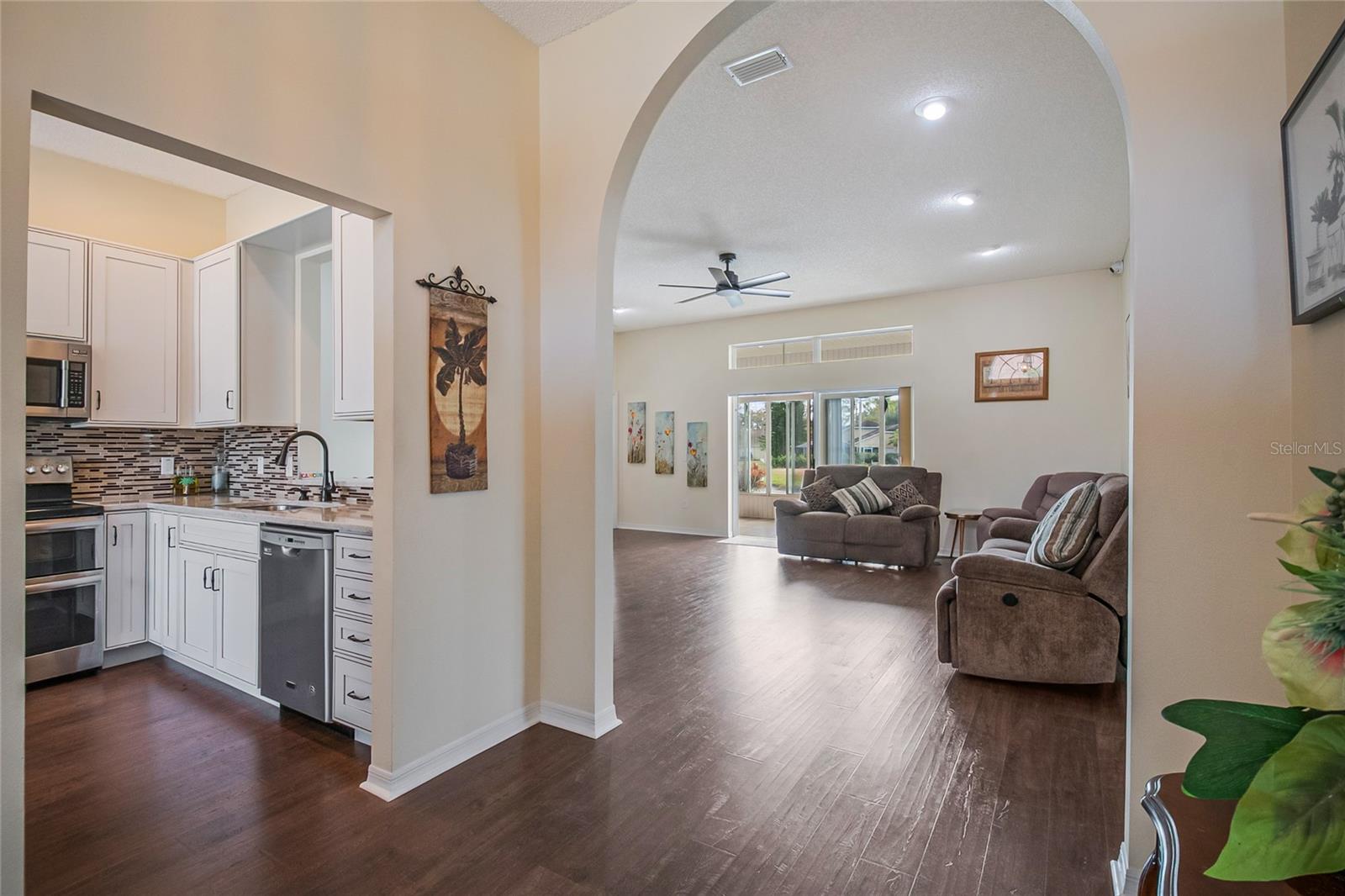 Welcome to this beautiful 3-bedroom waterfront home in the heart of Daytona! The spacious split floorplan offers the ideal balance of privacy and everyday comfort. The updated eat-in kitchen showcases over $30K in improvements, including sleek countertops, an island, upgraded cabinetry with custom storage drawers, and stainless steel appliances. A convenient pass-through opens to the separate dining area and living room, creating an excellent layout for hosting and family gatherings. The generous primary suite features a large ensuite bathroom with a walk-in shower and oversized garden tub. The secondary bedrooms are also spacious, with a full bathroom positioned between them for easy access. Additional highlights include an inside laundry room, a 2-car garage, and really nice Pergo wood-look flooring throughout. The screened-in back porch/Florida room provides the perfect spot for entertaining or relaxing while enjoying peaceful waterfront views. Fresh exterior paint, meticulous upkeep, and a 2022 roof make this home truly move-in ready. Situated in a beautifully maintained community with a low annual HOA, this home offers a rare opportunity due to unforeseen seller circumstances. Conveniently located near shopping, dining, beaches, the Speedway, with quick access to major highways leading into Orlando. A must-see home that will NOT disappoint!