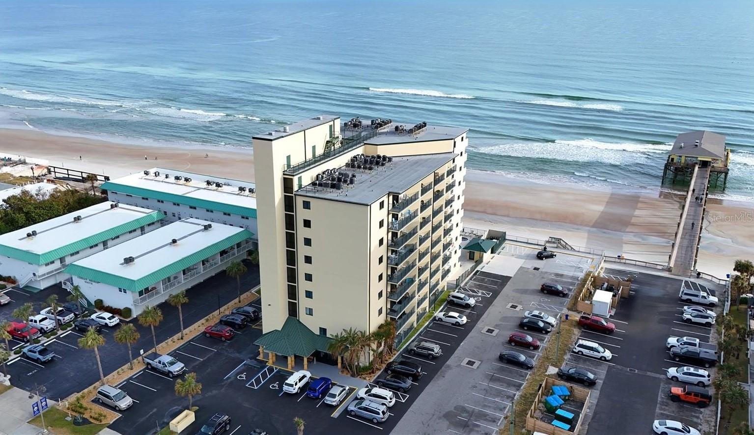 Just reduced! Beautiful beachfront condo located in Daytona Beach Shores. This is an updated one bedroom one bath condo unit currently being used as short term rental and is located next to the beach with access to a fishing pier and the well known restaurant Crabby Joe's. The balcony has a partial ocean view. The building has undergone recent renovations which include a new roof, new balconies, a new seawall and renovated pool & spa. Management offers a rental program or the unit can be rented yourself independently. This unit does have a few future reservations already in place and will be sold fully furnished. This is a great investment opportunity to own a turnkey unit with great income producing potential.