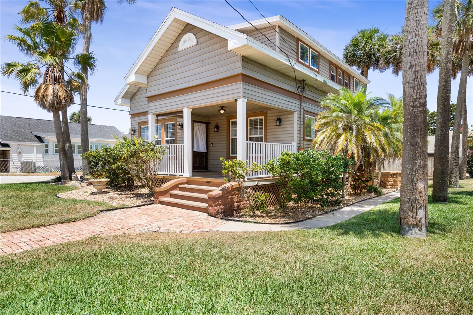 One or more photo(s) has been virtually staged. Beautiful historic home on a double lot. Step into the timeless coastal charm of this beachside residence. Restored to preserve its vintage design while incorporating modern conveniences, this home offers space, comfort, and style. As you enter, the bright living room welcomes you with its expansive windows and inviting fireplace, while the spacious dining room boasts charming built-ins. Discover the delightful nooks and crannies, alongside generous rooms adorned with high ceilings, large closets, and classic baseboards. The allure continues with a newly renovated kitchen and a lovely first-floor master suite featuring a grand bathroom with dual sinks and a stunning walk-in shower. Upstairs you will find two additional large bedrooms, complemented by another beautifully remodeled bath. Throughout the home you will find restored hardwood floors that echo the timeless character of the era. Additional updates include new electric service, lighting fixtures, a newer roof, updated hvac systems for each floor and plumbing enhancements. Outside, a detached two-car garage sits on the spacious driveway, while the expansive yard offers the potential for subdivision and the construction of a second home, without compromising the generous lot sizes. Discover the endless possibilities of this corner lot which spans .38 acres, and is located just one block from the beach. It is also very close to most of Daytona Beach's vibrant attractions, including the Boardwalk, Main Street, Beach Street and the Riverfront Esplanade. Rarely does a home like this, with such generous lot dimensions, become available on the beachside. If this sounds like your ideal coastal retreat, don't hesitate to schedule a private showing. There are no warranties expressed or implied. All measurements are approximate. Square footage received from tax rolls. All information recorded in the MLS intended to be accurate but cannot be guaranteed. Sorry no short term rentals.