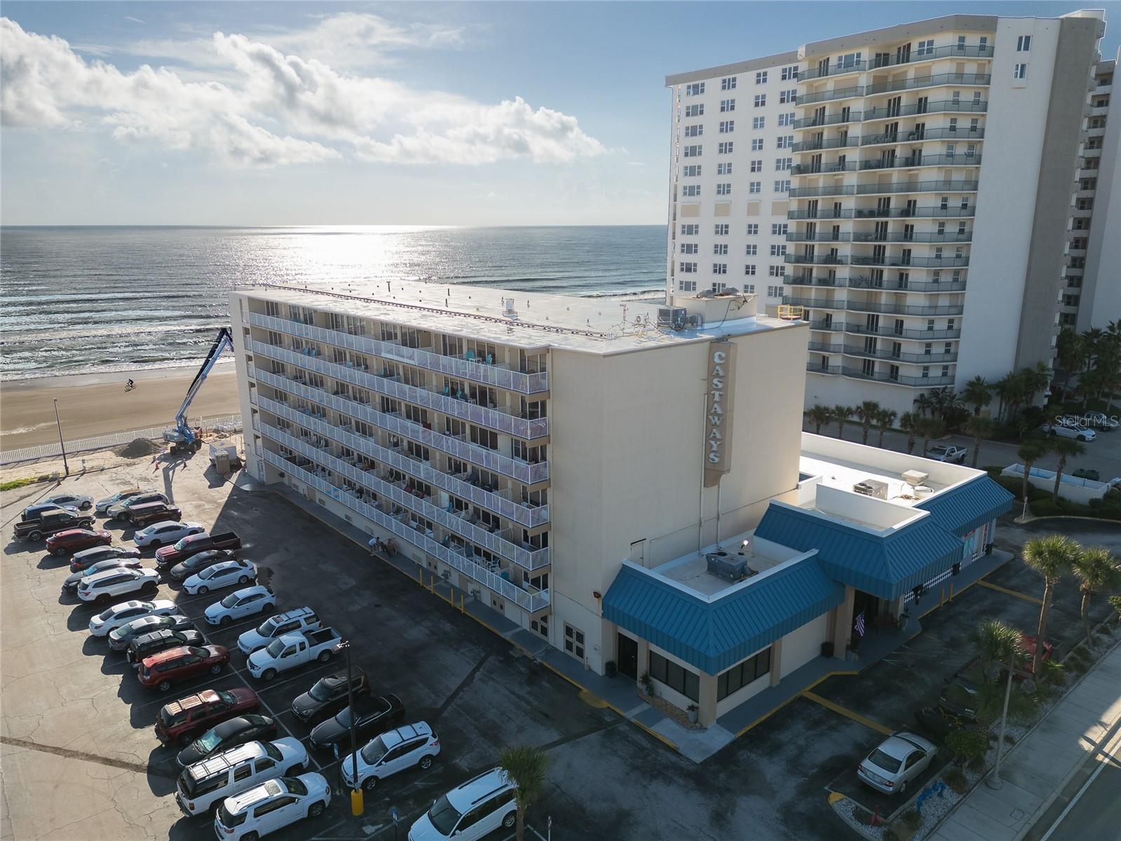 This completely remodeled 3rd floor ocean view Castaways Ocean Beach Resort condotel in the heart of Daytona Beach Shores is living life the way it was meant to be lived! The kitchen includes a full refrigerator, range, ornate backsplash and a breakfast bar. The entire northern side of the kitchen and main living area features beautiful shiplap walls and the luxury vinyl plank flooring flows throughout this gorgeous home. The Murphy Bed and Murphy table are efficiently stowed and brought to use as needed. Just out the back door is the deck to relax, listening to the sounds of the waves and feeling the ocean breezes. The full bathroom with pocket door includes a walk-in shower and sink. The new beachfront swimming pool and deck are expected to be completed soon and are supported by a new seawall and the attached assessments, which include a new roof, will be paid in full at closing. The Castaways condotel includes the Daytona Diner and fitness center on the first floor and a pet and BBQ area outdoors. The association fee of $507/month includes electric, cable TV, insurance, internet, grounds and structural maintenance, pest control, sewer, trash, and water. The seller indicates this unit qualifies as a short-term rental. All measurements are approximate and should be independently verified.