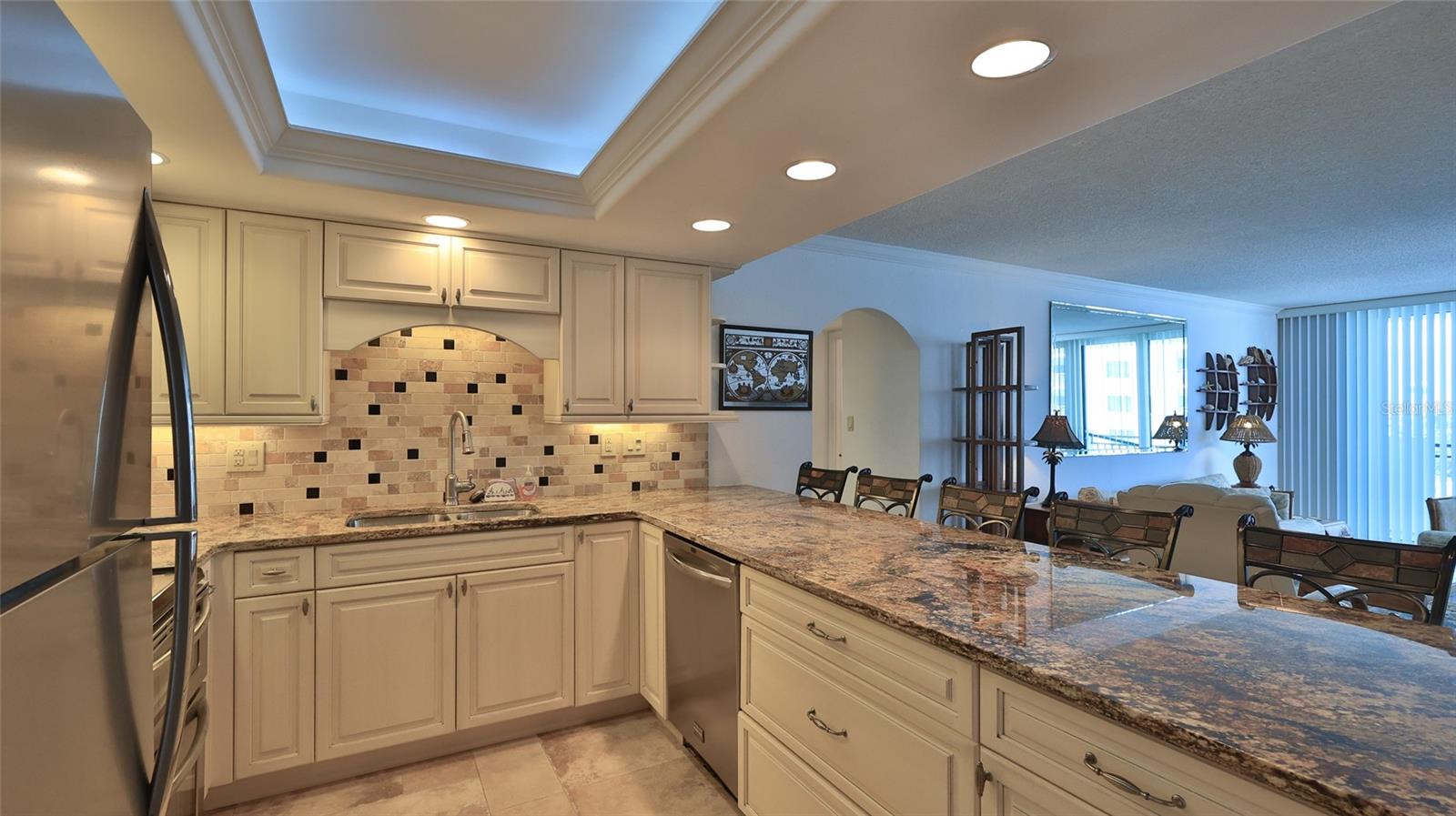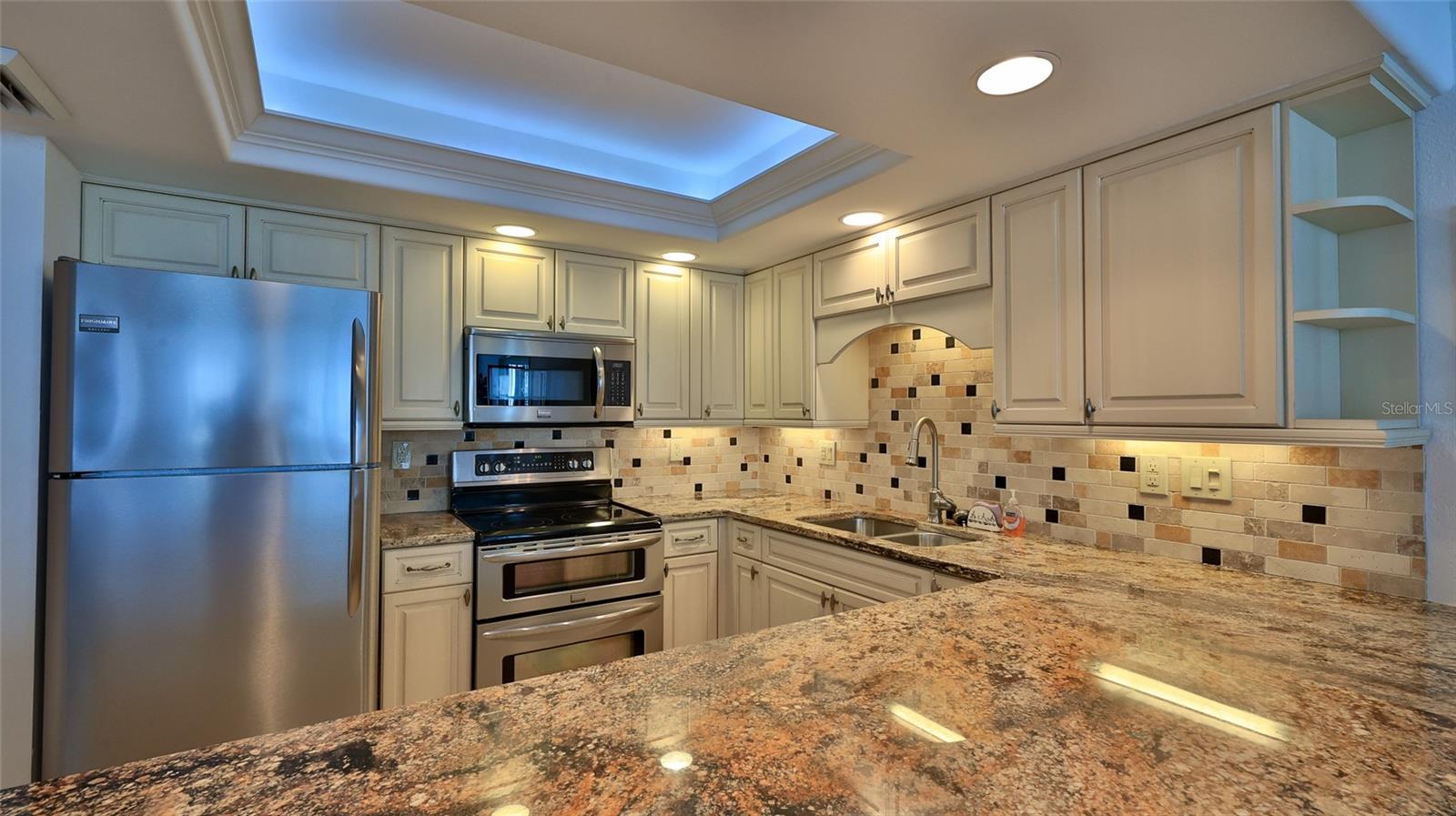 WOW! LOWEST PRICED CONDO IN THE BUILDING! Beautiful updates AND amazing price!! You don't want to miss this one! Gorgeous kitchen with granite counters, newer cabinets & tiled backsplash, SS appliances, & breakfast bar! Tiled living room with spacious balcony that has ocean AND intracoastal views so you can watch the sun rise and set! Updated bathrooms with quality cabinetry, wall to wall built in storage cabinets in the master. Oceans Five is almost complete with a fantastic remodeling project including many interior and exterior improvements. Striking lobby, new fitness center coming soon, social room, shuffleboard, newly resurfaced oceanfront pool. Full time on site manager, One assigned parking space in the garage, storage cage. Walk across the street to Publix, Walgreens, The Shores Community Center with pickleball courts! Life is better in the Shores!