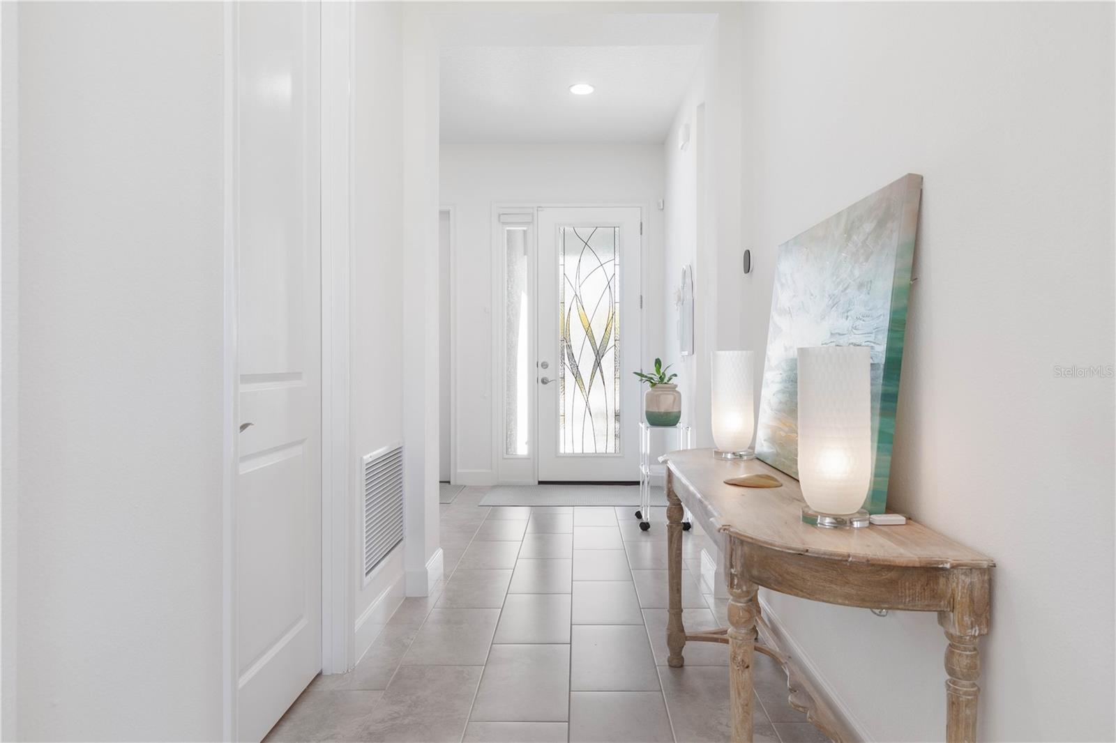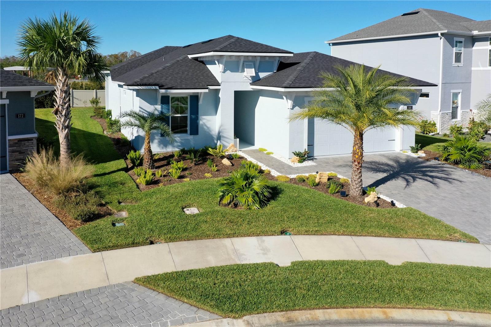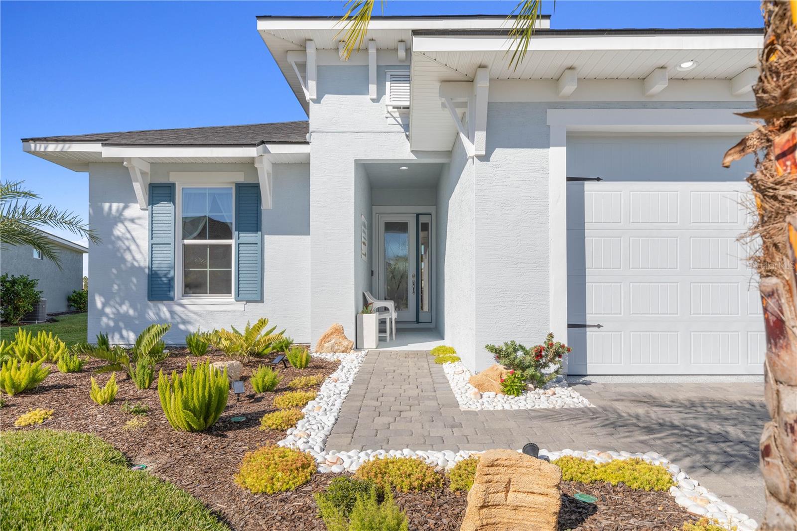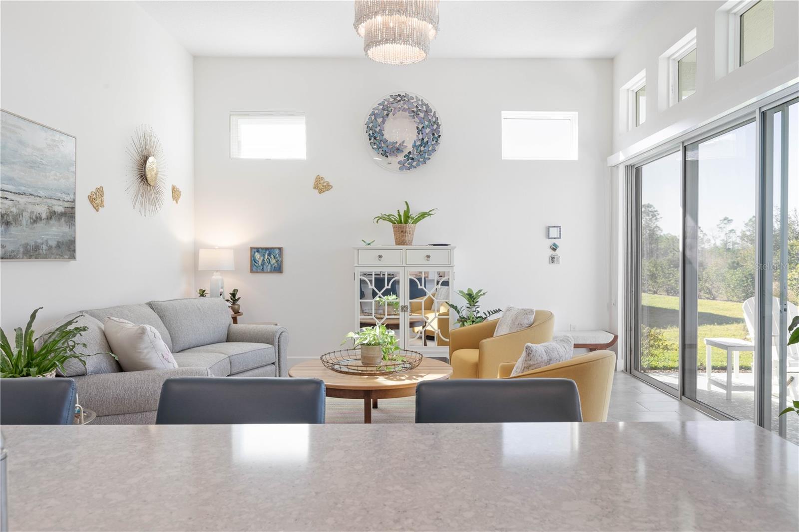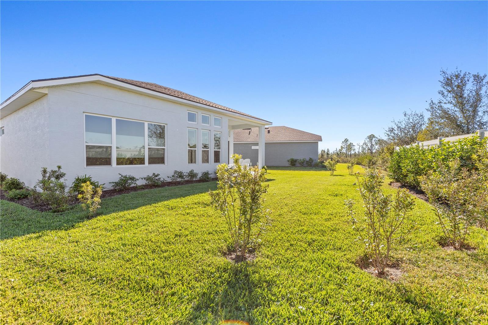 Custom ICI Avery II Home in the Mosaic Community with 12ft Ceiling Located in the desirable Mosaic neighborhood, this 2022 built ICI Avery II home offers a spacious layout with extensive custom upgrades. Positioned on a quiet cul-de-sac, the property features a larger yard and added privacy. Upon entering the open foyer, you’ll find a versatile study/den to the right, complete with large double doors. To the left of the foyer, a separate corridor leads to the second and third bedrooms and a full guest bathroom. For added privacy, a Hunter Douglas motorized roller shade can close off this guest area, making it ideal for hosting visitors. The open floor plan features soaring 12-foot ceilings in the kitchen, living room, dining room, and lanai. The kitchen is equipped with upgraded Ingalis purestyle white cabinets with crown molding and quartz countertops with eased edges and an LG Smart wi-fi french door refrigerator with a dual ice maker. A large island provides ample seating and workspace, while Cambridge Gray tile flooring extends through the main living areas. The living room features a three-panel sliding glass door leading to the lanai, complete with a Hunter Douglas pull-down shade that spans all three panels. Floor outlets with brass covers enhance the room’s functionality, and the dining area is surrounded by windows that let in abundant natural light. The primary suite, located off the kitchen, features large windows overlooking the backyard. The en-suite bathroom includes dual vanities with Ingalis purestyle white cabinets, quartz countertops, a walk-in shower with three safety grab bars, and a separate toilet closet with an added electrical outlet, and a Toto Drake Tornado Flush toilet. The bathroom connects to a spacious walk-in closet, which offers convenient direct access to the laundry room. The covered lanai provides additional outdoor living space. The front and back yard are enhanced by custom landscaping featuring Chinese fan palms, Sylvester palms, Japanese magnolias, 20 Foxtail ferns, butterfly bushes, and more, all accented with Coquina stones. Additional features include Hunter Douglas blinds throughout the home, with top-down/bottom-up blinds on standard windows and a sheer shade for the living room’s transom window. The bathrooms are upgraded with safety grab bars, and the garage features deluxe epoxy flooring. The home’s HVAC system includes a surge protector, dual UV Fresh Aire system, and a hot water heater expansion tank added in 2024. For peace of mind, Massey termite protection is in place and transferable, with bait traps around the home and attic treatments already completed. The front door was upgraded to a JELD-WEN fiberglass front door, as well as having a retractible screen door system perfect for those beautiful Florida days. This thoughtfully designed home combines comfort, style, and practicality, making it a standout property in the Mosaic community. Don’t miss this wonderful home! Schedule a showing today.