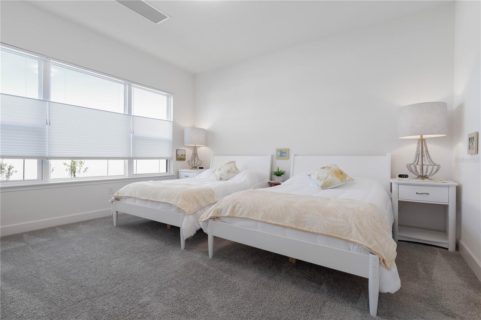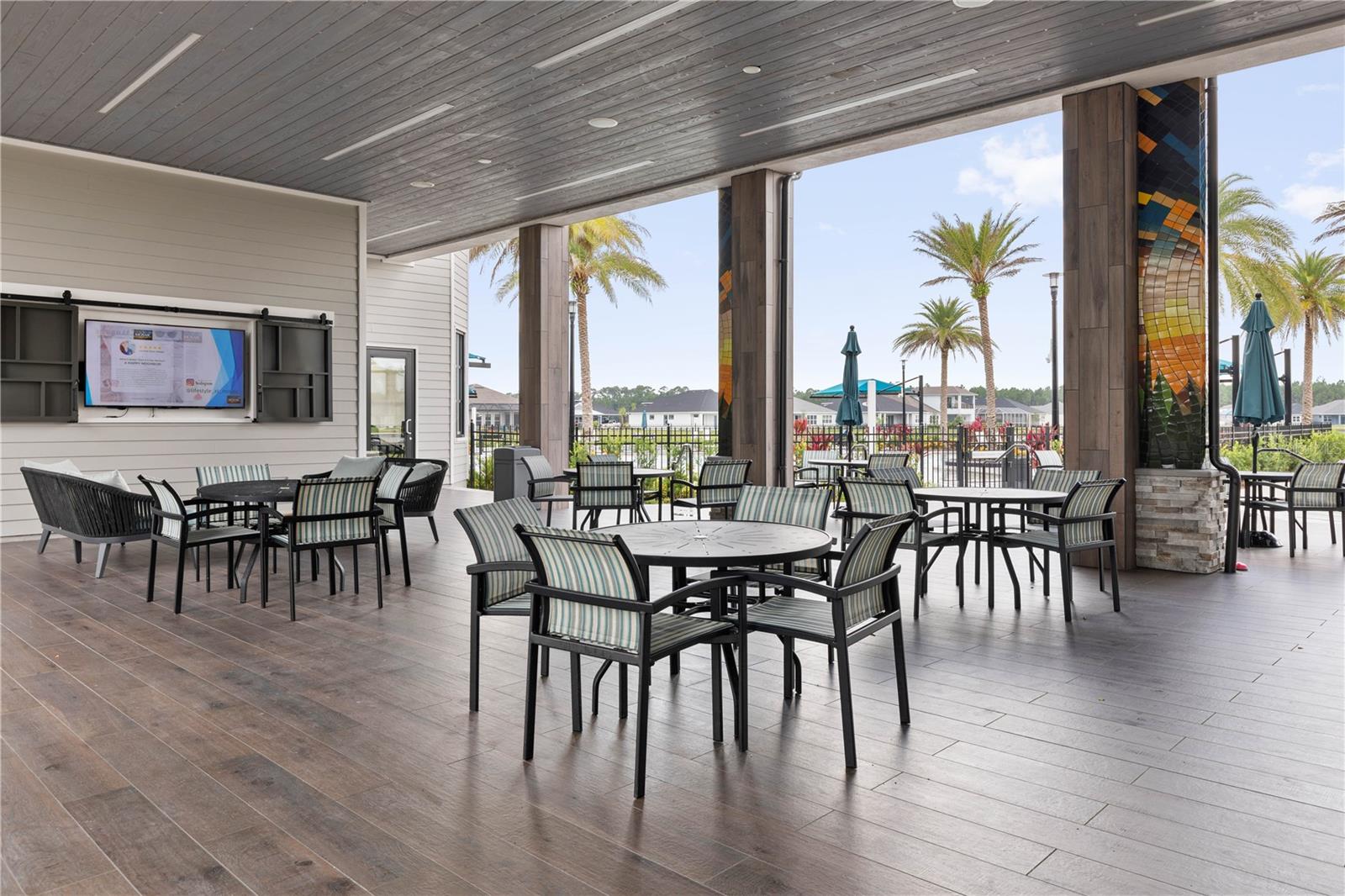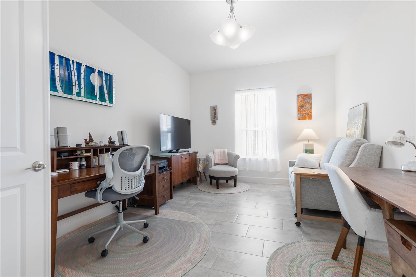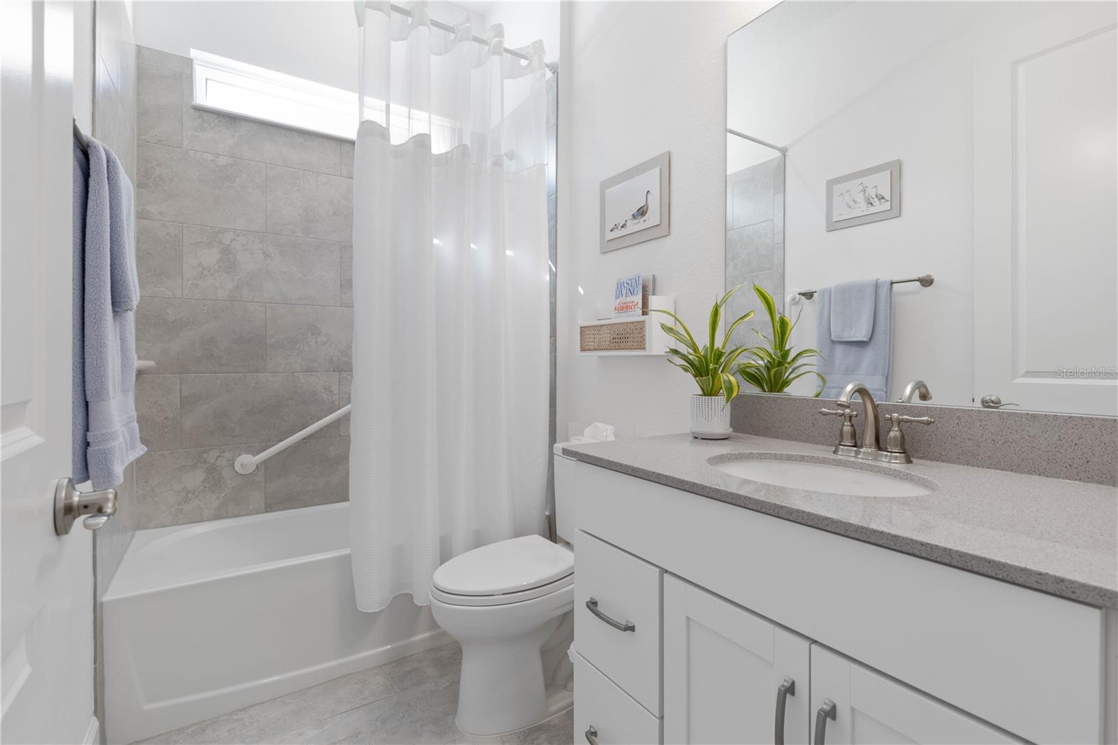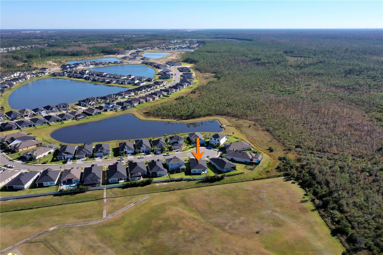 Custom ICI Avery II Home in the Mosaic Community with 12ft Ceiling Located in the desirable Mosaic neighborhood, this 2022 built ICI Avery II home offers a spacious layout with extensive custom upgrades. Positioned on a quiet cul-de-sac, the property features a larger yard and added privacy. Upon entering the open foyer, you’ll find a versatile study/den to the right, complete with large double doors. To the left of the foyer, a separate corridor leads to the second and third bedrooms and a full guest bathroom. For added privacy, a Hunter Douglas motorized roller shade can close off this guest area, making it ideal for hosting visitors. The open floor plan features soaring 12-foot ceilings in the kitchen, living room, dining room, and lanai. The kitchen is equipped with upgraded Ingalis purestyle white cabinets with crown molding and quartz countertops with eased edges and an LG Smart wi-fi french door refrigerator with a dual ice maker. A large island provides ample seating and workspace, while Cambridge Gray tile flooring extends through the main living areas. The living room features a three-panel sliding glass door leading to the lanai, complete with a Hunter Douglas pull-down shade that spans all three panels. Floor outlets with brass covers enhance the room’s functionality, and the dining area is surrounded by windows that let in abundant natural light. The primary suite, located off the kitchen, features large windows overlooking the backyard. The en-suite bathroom includes dual vanities with Ingalis purestyle white cabinets, quartz countertops, a walk-in shower with three safety grab bars, and a separate toilet closet with an added electrical outlet, and a Toto Drake Tornado Flush toilet. The bathroom connects to a spacious walk-in closet, which offers convenient direct access to the laundry room. The covered lanai provides additional outdoor living space. The front and back yard are enhanced by custom landscaping featuring Chinese fan palms, Sylvester palms, Japanese magnolias, 20 Foxtail ferns, butterfly bushes, and more, all accented with Coquina stones. Additional features include Hunter Douglas blinds throughout the home, with top-down/bottom-up blinds on standard windows and a sheer shade for the living room’s transom window. The bathrooms are upgraded with safety grab bars, and the garage features deluxe epoxy flooring. The home’s HVAC system includes a surge protector, dual UV Fresh Aire system, and a hot water heater expansion tank added in 2024. For peace of mind, Massey termite protection is in place and transferable, with bait traps around the home and attic treatments already completed. The front door was upgraded to a JELD-WEN fiberglass front door, as well as having a retractible screen door system perfect for those beautiful Florida days. This thoughtfully designed home combines comfort, style, and practicality, making it a standout property in the Mosaic community. Don’t miss this wonderful home! Schedule a showing today.