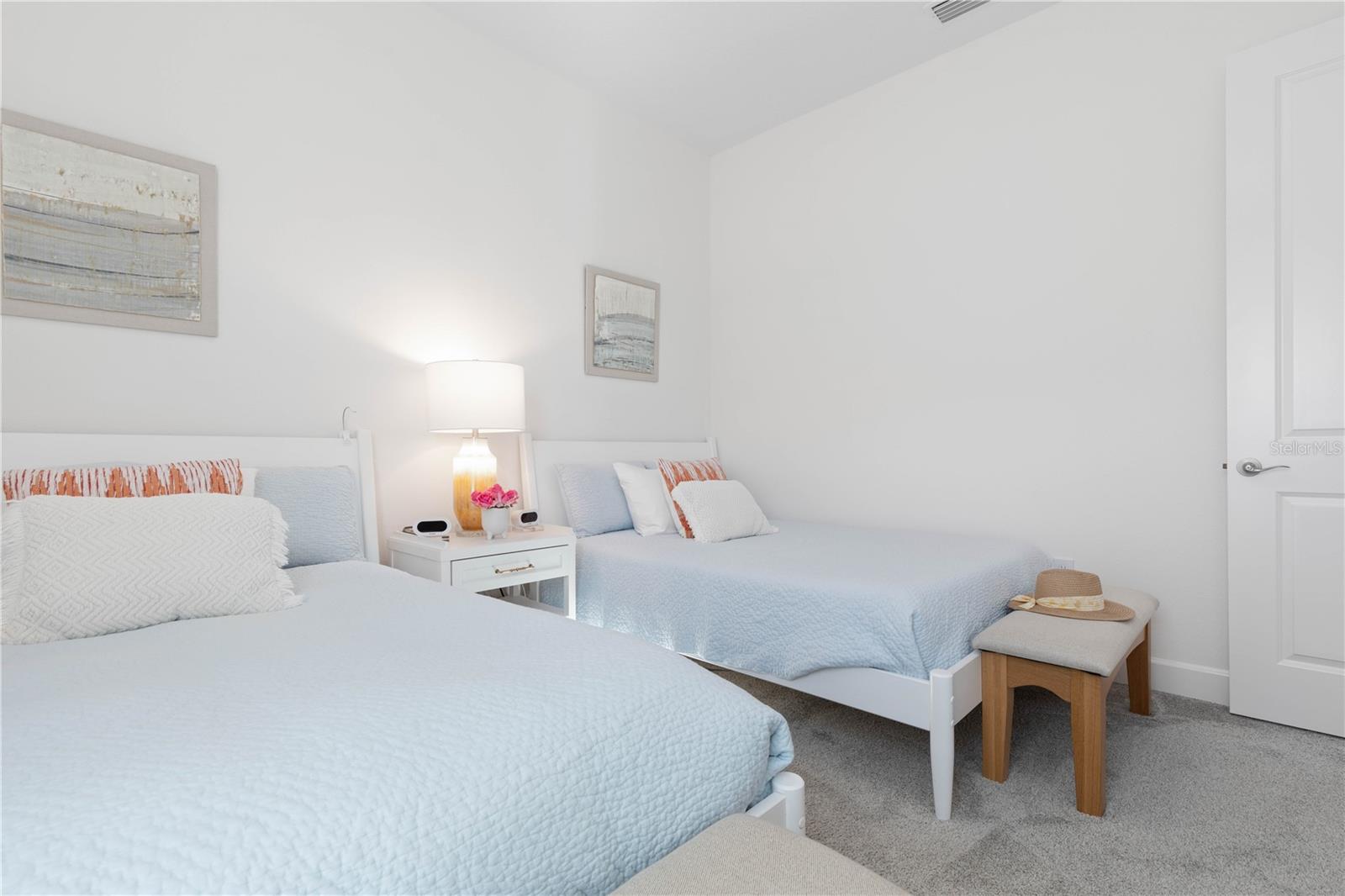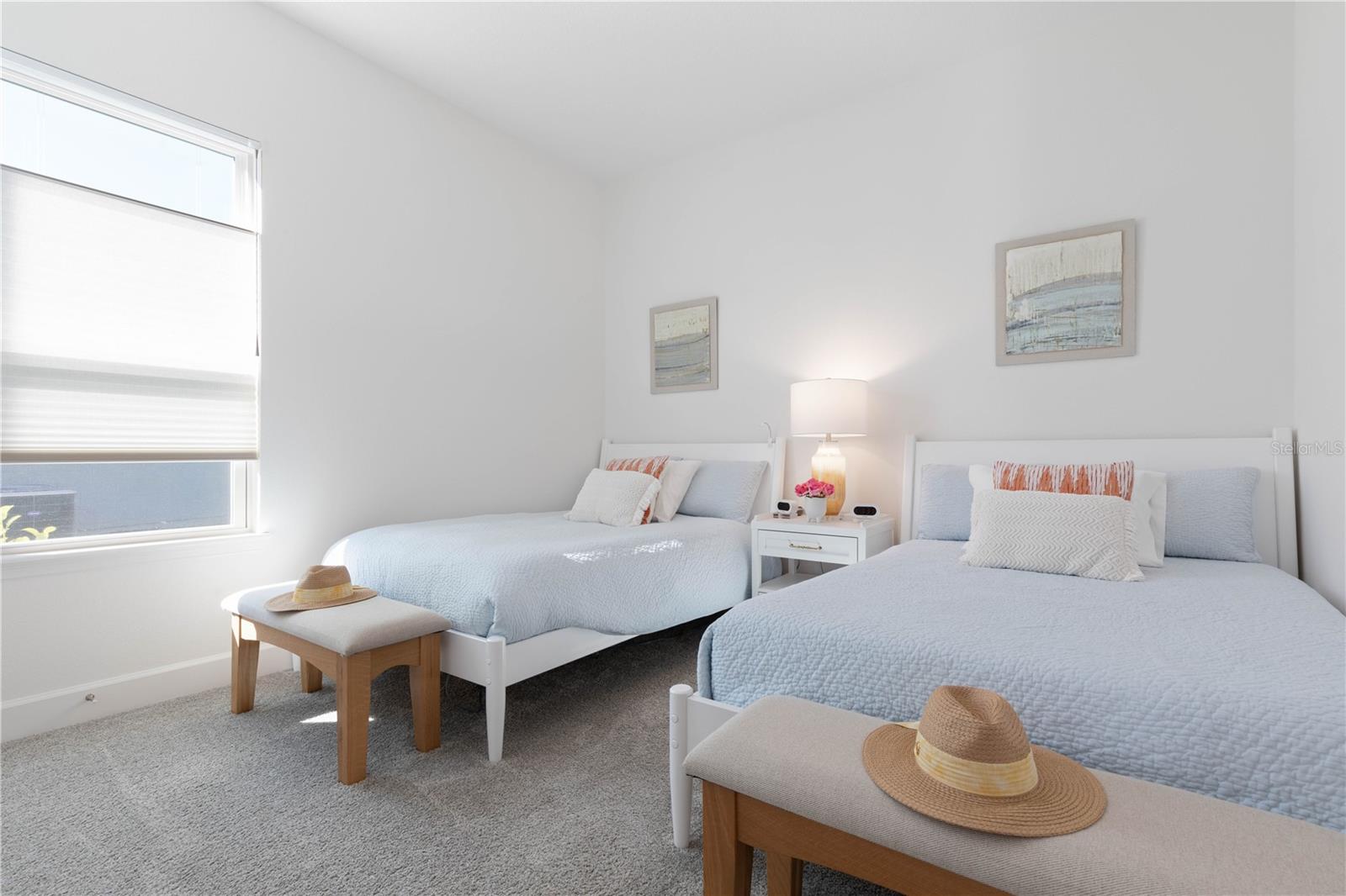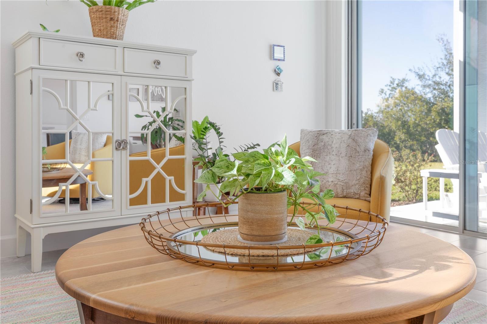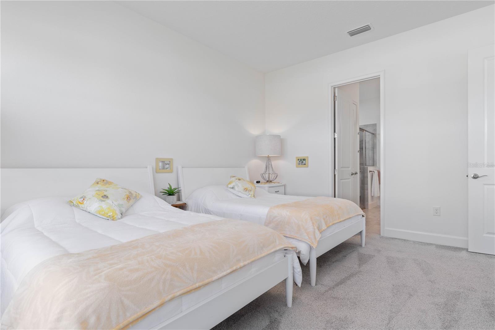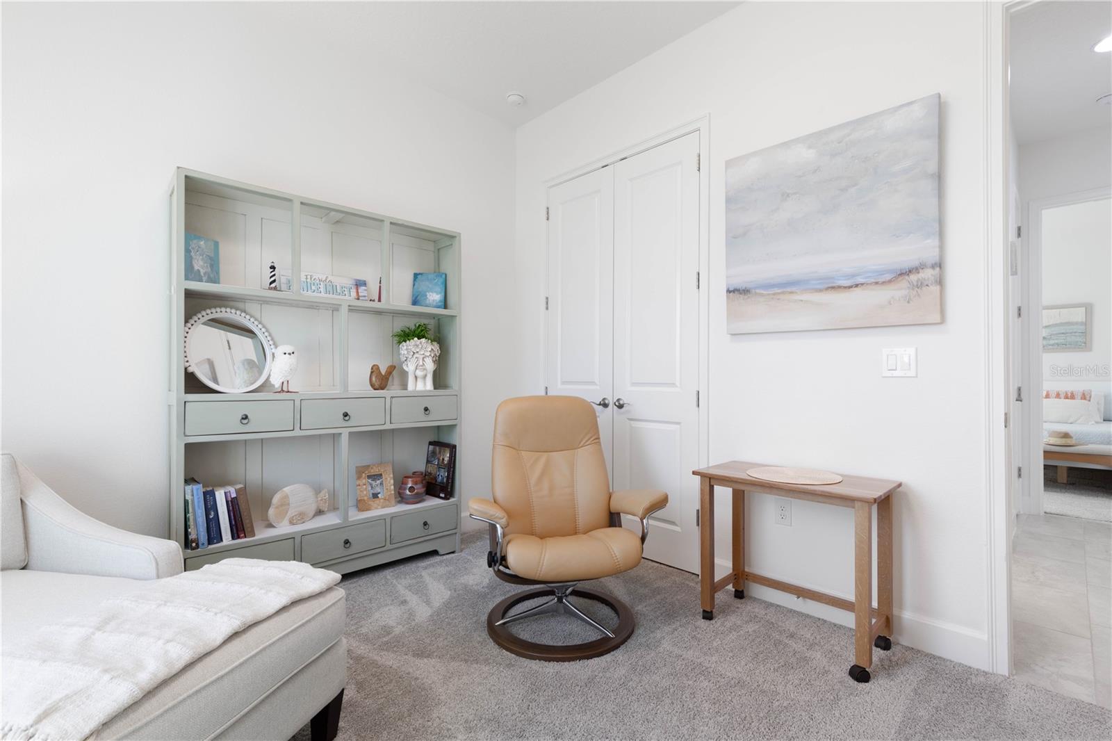 Custom ICI Avery II Home in the Mosaic Community with 12ft Ceiling Located in the desirable Mosaic neighborhood, this 2022 built ICI Avery II home offers a spacious layout with extensive custom upgrades. Positioned on a quiet cul-de-sac, the property features a larger yard and added privacy. Upon entering the open foyer, you’ll find a versatile study/den to the right, complete with large double doors. To the left of the foyer, a separate corridor leads to the second and third bedrooms and a full guest bathroom. For added privacy, a Hunter Douglas motorized roller shade can close off this guest area, making it ideal for hosting visitors. The open floor plan features soaring 12-foot ceilings in the kitchen, living room, dining room, and lanai. The kitchen is equipped with upgraded Ingalis purestyle white cabinets with crown molding and quartz countertops with eased edges and an LG Smart wi-fi french door refrigerator with a dual ice maker. A large island provides ample seating and workspace, while Cambridge Gray tile flooring extends through the main living areas. The living room features a three-panel sliding glass door leading to the lanai, complete with a Hunter Douglas pull-down shade that spans all three panels. Floor outlets with brass covers enhance the room’s functionality, and the dining area is surrounded by windows that let in abundant natural light. The primary suite, located off the kitchen, features large windows overlooking the backyard. The en-suite bathroom includes dual vanities with Ingalis purestyle white cabinets, quartz countertops, a walk-in shower with three safety grab bars, and a separate toilet closet with an added electrical outlet, and a Toto Drake Tornado Flush toilet. The bathroom connects to a spacious walk-in closet, which offers convenient direct access to the laundry room. The covered lanai provides additional outdoor living space. The front and back yard are enhanced by custom landscaping featuring Chinese fan palms, Sylvester palms, Japanese magnolias, 20 Foxtail ferns, butterfly bushes, and more, all accented with Coquina stones. Additional features include Hunter Douglas blinds throughout the home, with top-down/bottom-up blinds on standard windows and a sheer shade for the living room’s transom window. The bathrooms are upgraded with safety grab bars, and the garage features deluxe epoxy flooring. The home’s HVAC system includes a surge protector, dual UV Fresh Aire system, and a hot water heater expansion tank added in 2024. For peace of mind, Massey termite protection is in place and transferable, with bait traps around the home and attic treatments already completed. The front door was upgraded to a JELD-WEN fiberglass front door, as well as having a retractible screen door system perfect for those beautiful Florida days. This thoughtfully designed home combines comfort, style, and practicality, making it a standout property in the Mosaic community. Don’t miss this wonderful home! Schedule a showing today.