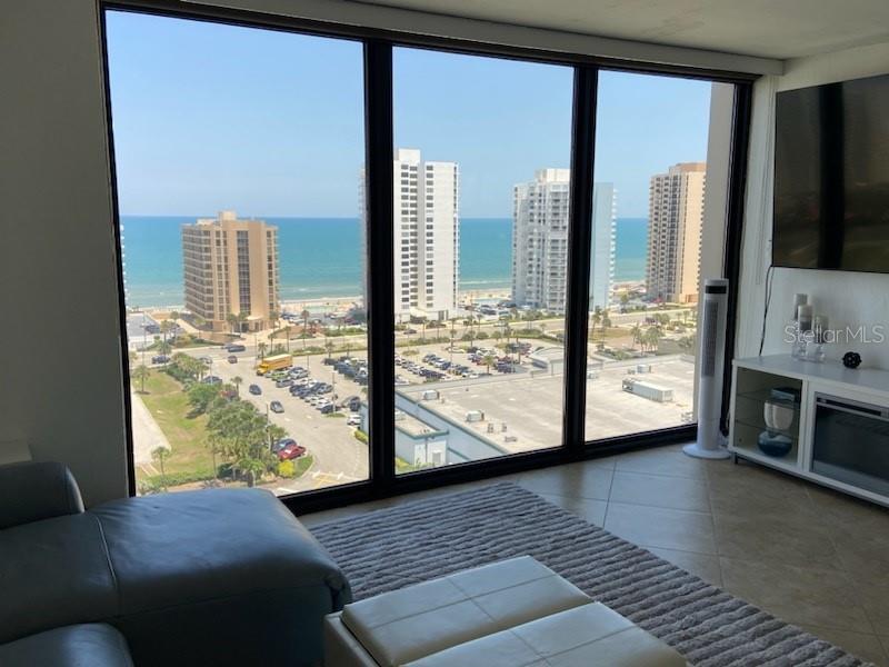 Seller states: No water intrusion from Milton or any other storm since seller bought this unit over 3 years ago. This area of the Atlantic Coast and this building specifically holds up amazingly well to inclement weather. Possibly the best ocean & river views in Daytona / Port Orange area. Breathtaking views of the ocean from every room. Modern. 16th floor condo. Watch amazing sunrises from either bedroom, the living room, the kitchen, the dining area, or either private balcony. Views are literally everywhere in this rare high floor A4 unit. This unit features 2 private balconies with unobstructed views. The large private balcony off the dining area / 2nd bedroom is the perfect place to relax on a double chaise lounge under the ceiling fan or to sit and eat while taking in the panoramic ocean, golf course, and river views. The unit comes furnished - including the 82'' HDTV - and has been recently updated throughout - including new stainless steel appliances. A motorized privacy/shade screen in the living room lets you easily control the sunlight and privacy. Ceramic tile flooring, split bedroom plan. Perfect for the active lifestyle. A community 13 hole - par 3 - Executive Golf Course, Tennis Courts, Pickle Ball Courts, anda community rec center. Publix, Walgreens, and banking are just a 2 minute walk. There's also a dozen restaurants within a 10 minute walk. Amenities include: Active clubhouse, fully equipped gym, saunas, pool, and shuffleboard. Assigned underground parking space (currently undergoing preventative maintenance) - bicycle storage - and assigned storage space for your golf and beach gear.