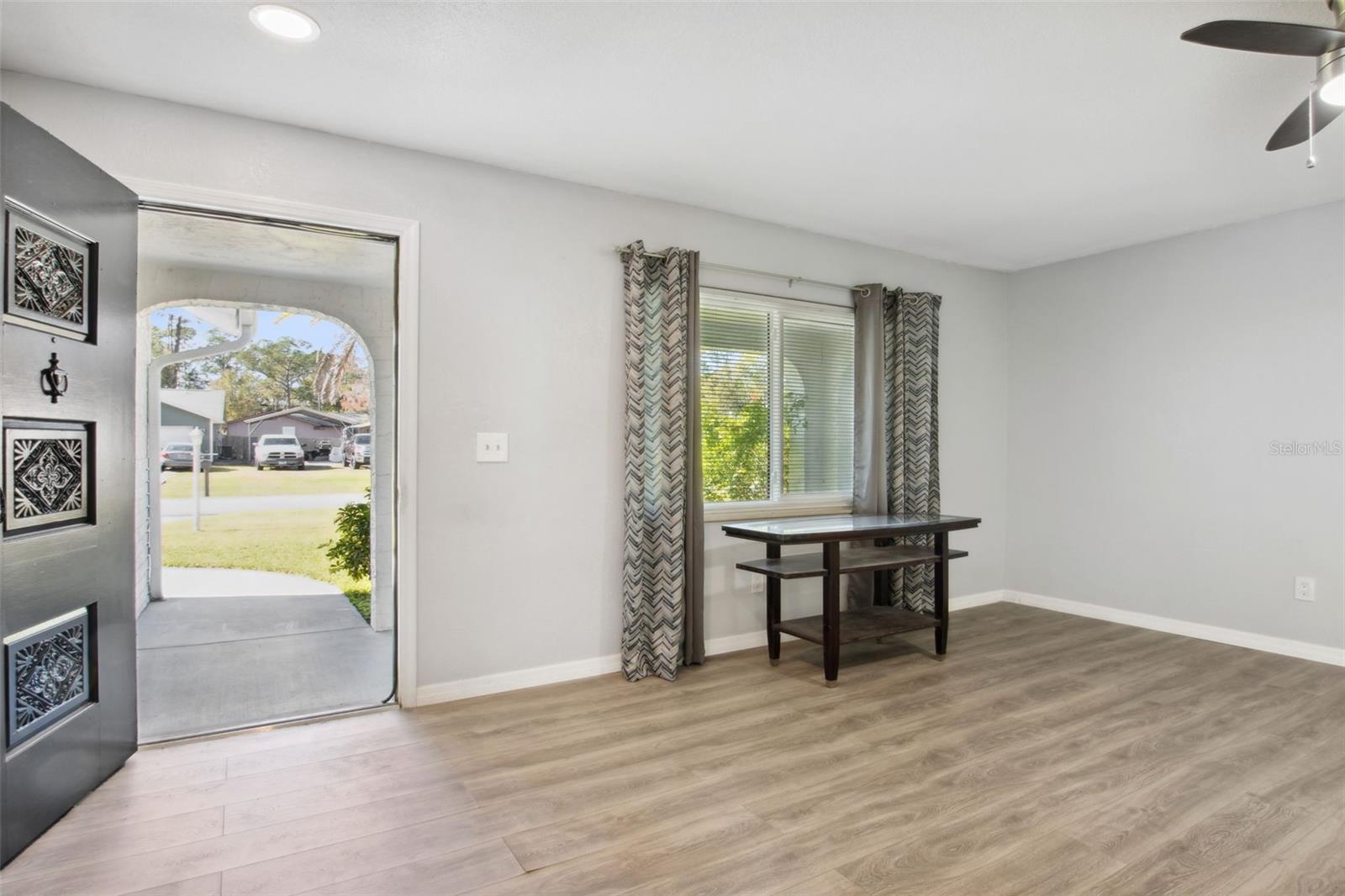 Charming & Updated CONCRETE BLOCK HOME BUILT IN 1979, Home on Over ¼ Acre – No HOA – Prime Location! Presenting a beautifully maintained and move-in ready 2-bedroom, 2-bathroom home located in the peaceful Highridge Estates neighborhood. This delightful home features numerous recent updates, making it a smart investment and a comfortable residence. ROOF REPLACED IN 2021, NEW WINDOWS throughout for enhanced energy efficiency All APPLIANCES INCLUDED, including a NEWERS WASHER, DRYER, AND WATER HEATER, FULLY UPDATED KITCHEN WITH GORGEOUS COUNTERTOPS, stainless-steel appliances, and modern pull-out cabinetry. Laminate flooring throughout for a sleek, low-maintenance lifestyle, Open floor plan connecting the living, dining, and kitchen areas, the fireplace, ideal for cozy evenings COVERED PATIO, PERFECT FOR GRILLING AND OUTDOOR ENJOYMENT. Location Highlights: Just minutes from I-95 and I-4 Less than an hour to Orlando Only 5 miles to beaches, restaurants, shopping, and entertainment Close to Historic Downtown DeLand and Stetson University The home is bathed in natural light, creating a bright, airy atmosphere with generous living space indoors and out. Whether you're a first-time buyer, downsizing, or looking for a vacation or rental property, this home offers the ideal blend of charm, comfort, and convenience. Disclaimer: Property is being sold in As-Is condition. All information provided is deemed reliable but not guaranteed and should be independently verified by the buyer and/or the buyer’s agent. It is the sole responsibility of the buyer to confirm lot size, property dimensions, zoning, land use, and any other facts material to the buyer’s decision to purchase. Neither the seller nor listing agent makes any warranties, express or implied, regarding the condition or accuracy of the property information.