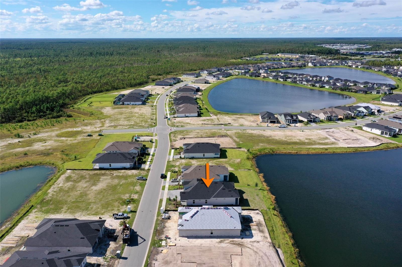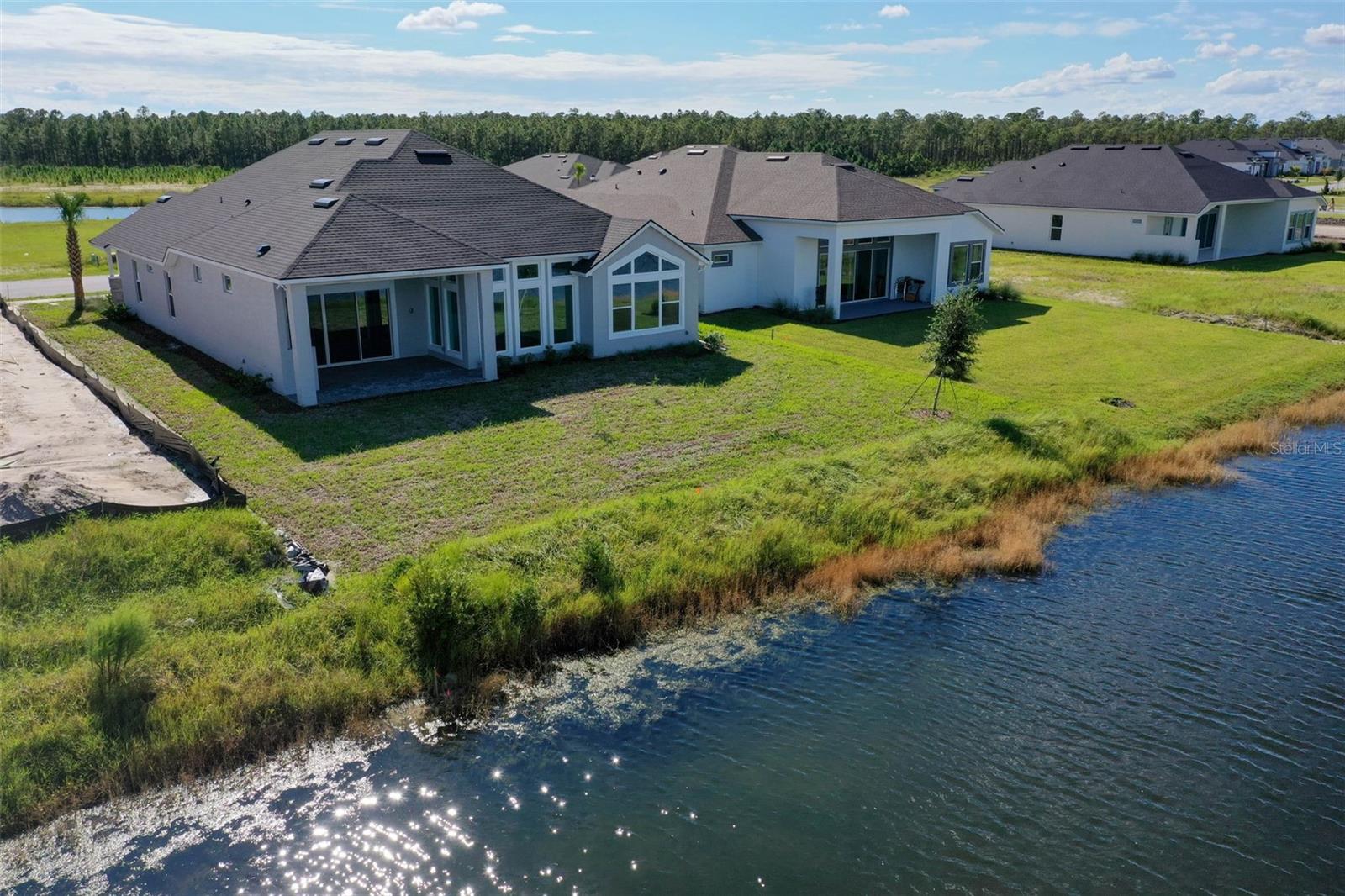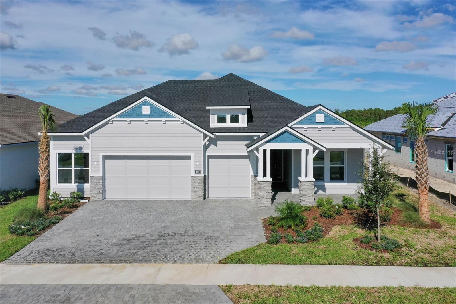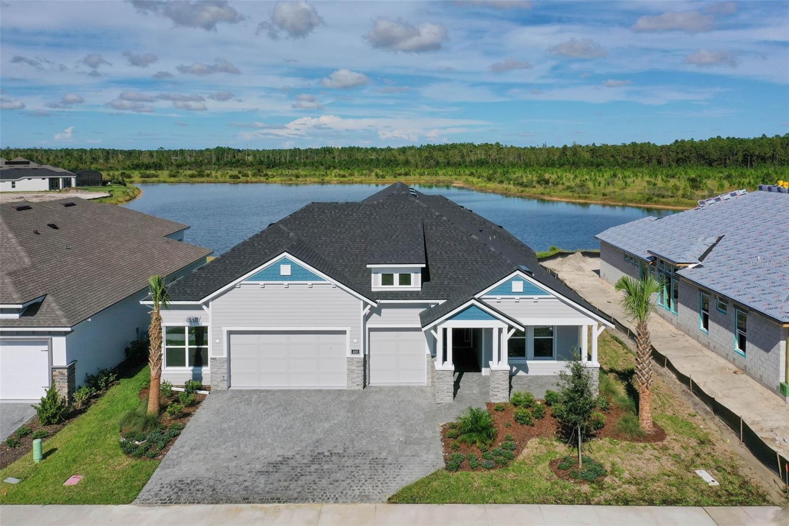 One-of-a-Kind, Brand-New ICI Home with Unmatched Features and a 4+ Car Garage in the Prestigious Mosaic Community! Discover luxury living at its finest in this beautifully crafted, newly built home in the highly sought-after Mosaic community on an oversized lot with gorgeous lake views. This custom ICI home stands out with exquisite finishes, a thoughtfully designed floor plan, and a rare 4+ car garage that boasts an impressive 12-foot ceiling height and oversized garage doors, offering ample space for vehicles, storage, or hobbies. As you approach, the paver entryway and inviting front porch welcome you home. Every detail has been carefully curated to offer elegance, convenience, and comfort. Main Features: * Spacious and Thoughtfully Designed Layout: Step into the entryway where the floor plan unfolds, leading you into a wide foyer. To the right, you'll find two guest bedrooms, each with ample natural light and closet space. These bedrooms share a beautifully appointed full bathroom, complete with upgraded quartz countertops and cabinetry. On the left, you'll find the second full bathroom and a laundry room enhanced with custom wall cabinets for extra storage and organization, conveniently located next to the interior garage entrance. * Open-Concept Living at its Best: Continue down the foyer, where the home opens up into a stunning living room, dining room, and kitchen space. Designed for entertaining, this area features soaring 12-foot ceilings and a full wall of three-panel glass sliding doors that provide seamless access to the paver-covered lanai. The living room is anchored by a sleek, 60-inch gas vent-free linear fireplace, creating a cozy yet modern atmosphere. Whether you're hosting guests or enjoying a quiet evening, the indoor-outdoor flow offers a perfect setting. * Chef's Dream Kitchen: The kitchen is truly the heart of the home, designed with both style and functionality in mind. It boasts quartz countertops and a large island with a beautiful Inverness Cobalt Matt finish, providing ample prep space and seating. One of the standout features of this home is the 4+ car garage, designed with functionality in mind. With a depth of 36 feet at the deepest point, this space is ideal for storing multiple vehicles, boats, or even creating a workshop. The 12-foot ceiling height allows for additional overhead storage, and the oversized garage doors (16x8 and 8x8) provide easy access. The wall-mounted garage door openers on both doors offer convenience and keep the space clutter-free. High-End Upgrades Throughout: * Flooring: Luxury vinyl with natural bevel honeycomb finish runs throughout the entire home, providing durability and style. * Technology & Convenience: The home features modern conveniences such as the Halo touch contemporary fingerprint keyless front door entry, extra electrical outlets placed throughout for easy access, and floodlights with motion sensors to enhance security. 300 amp service, a tankless hot water heater, and is prewired for security cameras. * Ceilings: 12-foot ceilings in the main living areas and lanai, plus vaulted ceilings in the master suite, and 8ft doors throughout add to the home's sense of spaciousness. With top-of-the-line finishes, an unbeatable layout, and a rare 4+ car garage, this is a dream home for those seeking luxury living in the Mosaic community. Don't miss out on this unique opportunity to own one of the most well-appointed homes in Daytona Beach's premier neighborhood!