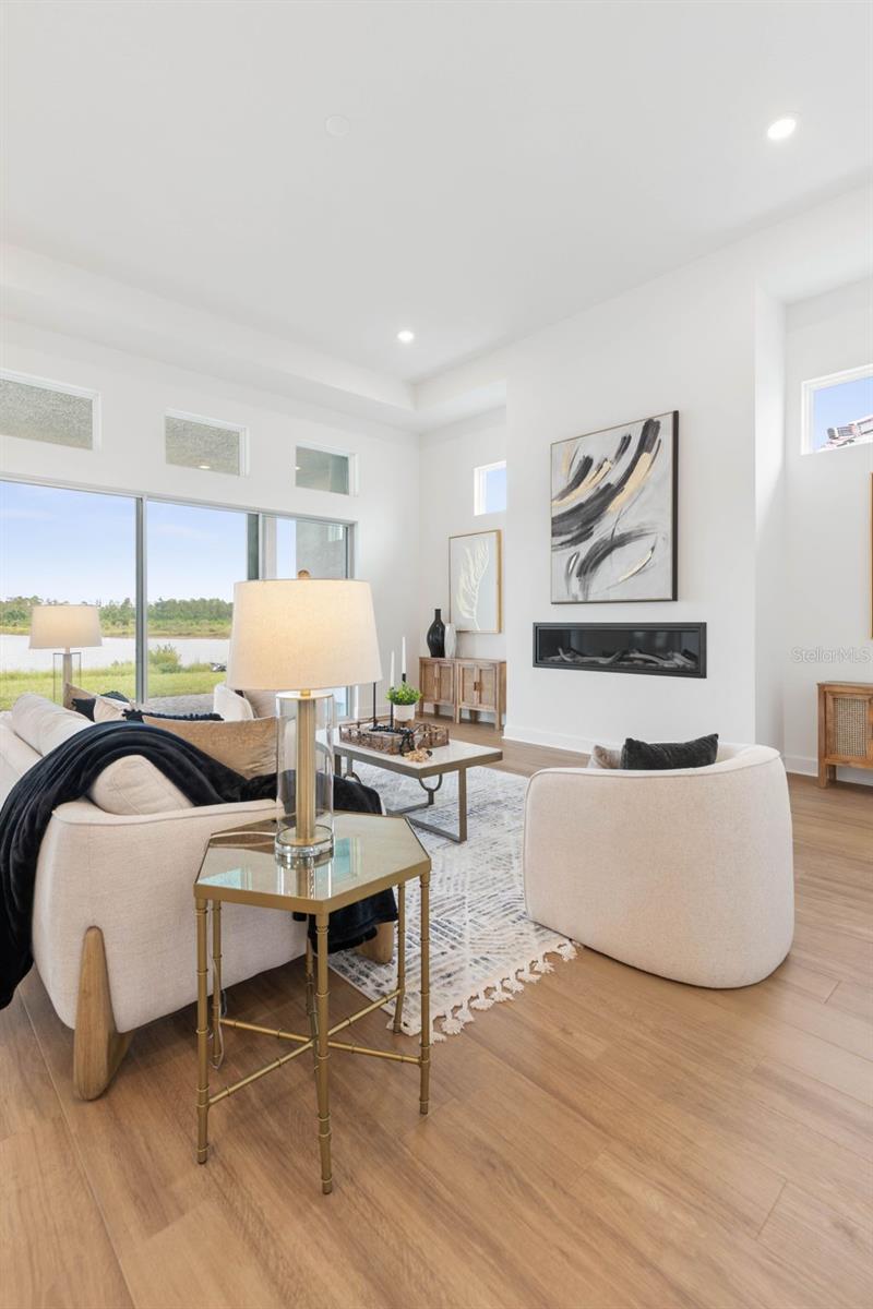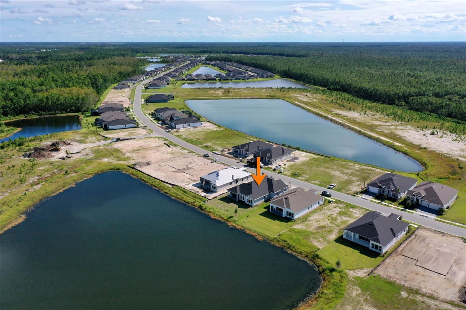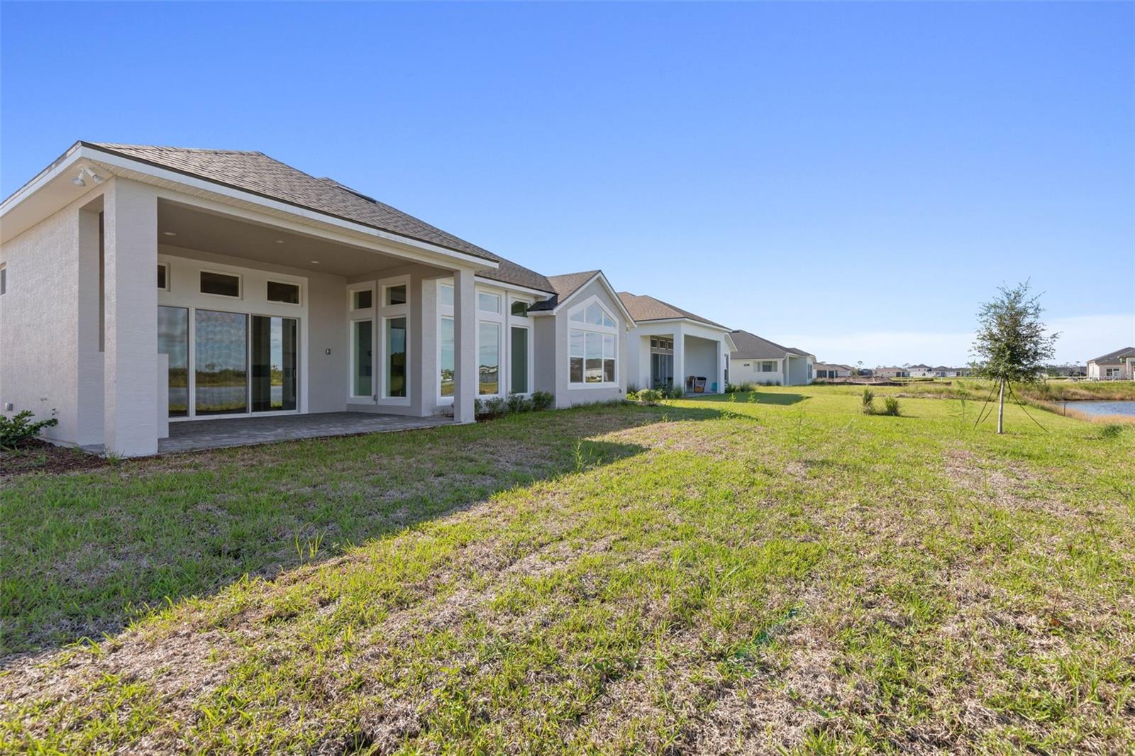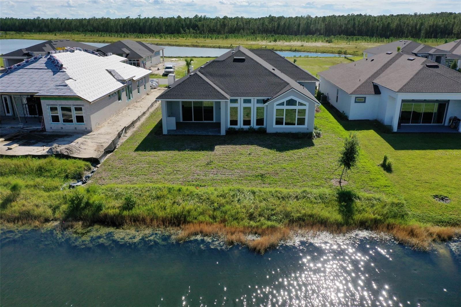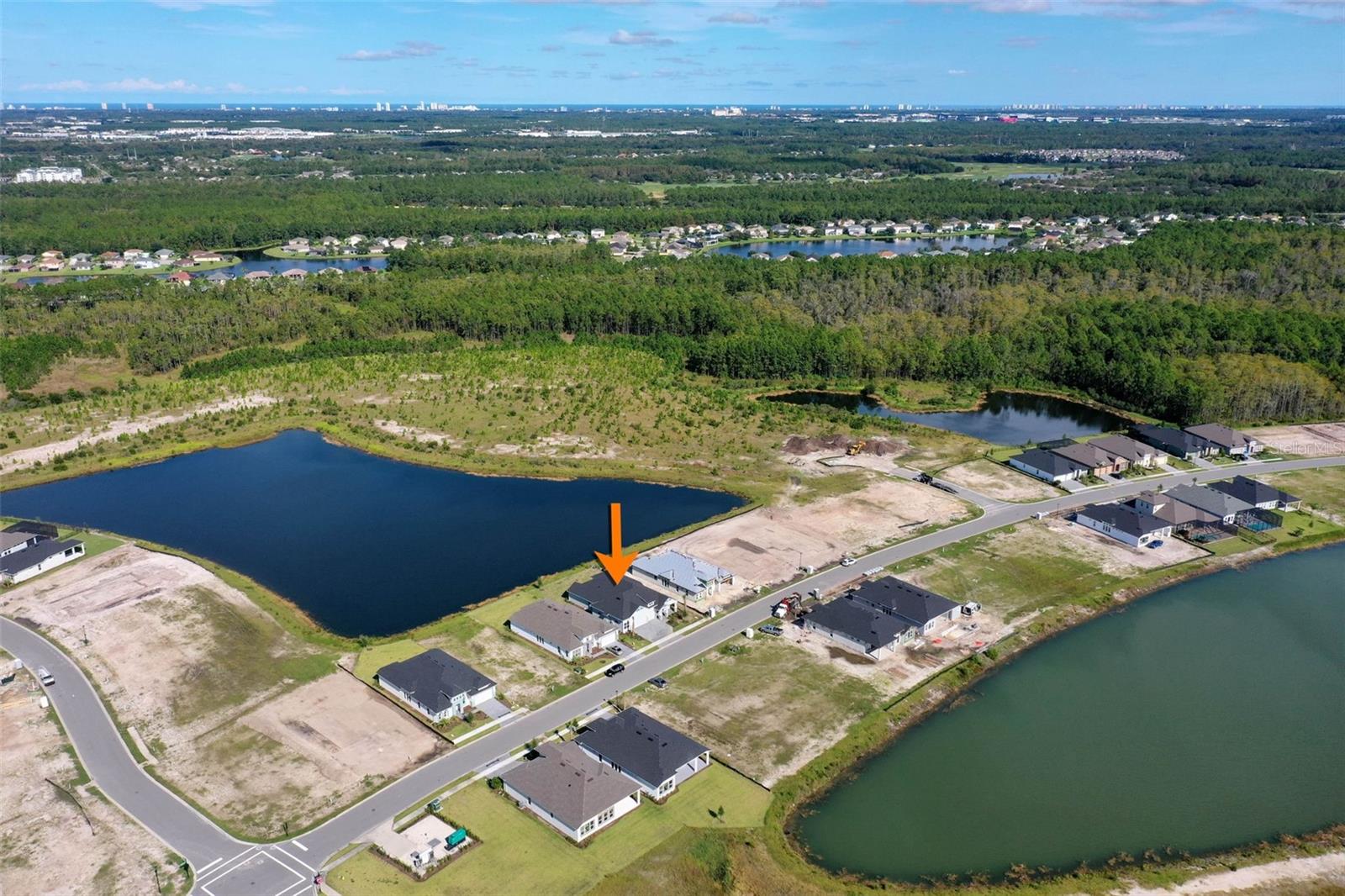 One-of-a-Kind, Brand-New ICI Home with Unmatched Features and a 4+ Car Garage in the Prestigious Mosaic Community! Discover luxury living at its finest in this beautifully crafted, newly built home in the highly sought-after Mosaic community on an oversized lot with gorgeous lake views. This custom ICI home stands out with exquisite finishes, a thoughtfully designed floor plan, and a rare 4+ car garage that boasts an impressive 12-foot ceiling height and oversized garage doors, offering ample space for vehicles, storage, or hobbies. As you approach, the paver entryway and inviting front porch welcome you home. Every detail has been carefully curated to offer elegance, convenience, and comfort. Main Features: * Spacious and Thoughtfully Designed Layout: Step into the entryway where the floor plan unfolds, leading you into a wide foyer. To the right, you'll find two guest bedrooms, each with ample natural light and closet space. These bedrooms share a beautifully appointed full bathroom, complete with upgraded quartz countertops and cabinetry. On the left, you'll find the second full bathroom and a laundry room enhanced with custom wall cabinets for extra storage and organization, conveniently located next to the interior garage entrance. * Open-Concept Living at its Best: Continue down the foyer, where the home opens up into a stunning living room, dining room, and kitchen space. Designed for entertaining, this area features soaring 12-foot ceilings and a full wall of three-panel glass sliding doors that provide seamless access to the paver-covered lanai. The living room is anchored by a sleek, 60-inch gas vent-free linear fireplace, creating a cozy yet modern atmosphere. Whether you're hosting guests or enjoying a quiet evening, the indoor-outdoor flow offers a perfect setting. * Chef's Dream Kitchen: The kitchen is truly the heart of the home, designed with both style and functionality in mind. It boasts quartz countertops and a large island with a beautiful Inverness Cobalt Matt finish, providing ample prep space and seating. One of the standout features of this home is the 4+ car garage, designed with functionality in mind. With a depth of 36 feet at the deepest point, this space is ideal for storing multiple vehicles, boats, or even creating a workshop. The 12-foot ceiling height allows for additional overhead storage, and the oversized garage doors (16x8 and 8x8) provide easy access. The wall-mounted garage door openers on both doors offer convenience and keep the space clutter-free. High-End Upgrades Throughout: * Flooring: Luxury vinyl with natural bevel honeycomb finish runs throughout the entire home, providing durability and style. * Technology & Convenience: The home features modern conveniences such as the Halo touch contemporary fingerprint keyless front door entry, extra electrical outlets placed throughout for easy access, and floodlights with motion sensors to enhance security. 300 amp service, a tankless hot water heater, and is prewired for security cameras. * Ceilings: 12-foot ceilings in the main living areas and lanai, plus vaulted ceilings in the master suite, and 8ft doors throughout add to the home's sense of spaciousness. With top-of-the-line finishes, an unbeatable layout, and a rare 4+ car garage, this is a dream home for those seeking luxury living in the Mosaic community. Don't miss out on this unique opportunity to own one of the most well-appointed homes in Daytona Beach's premier neighborhood!