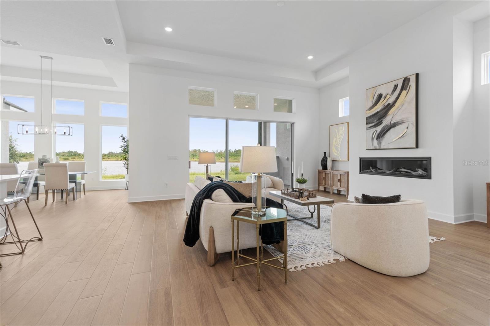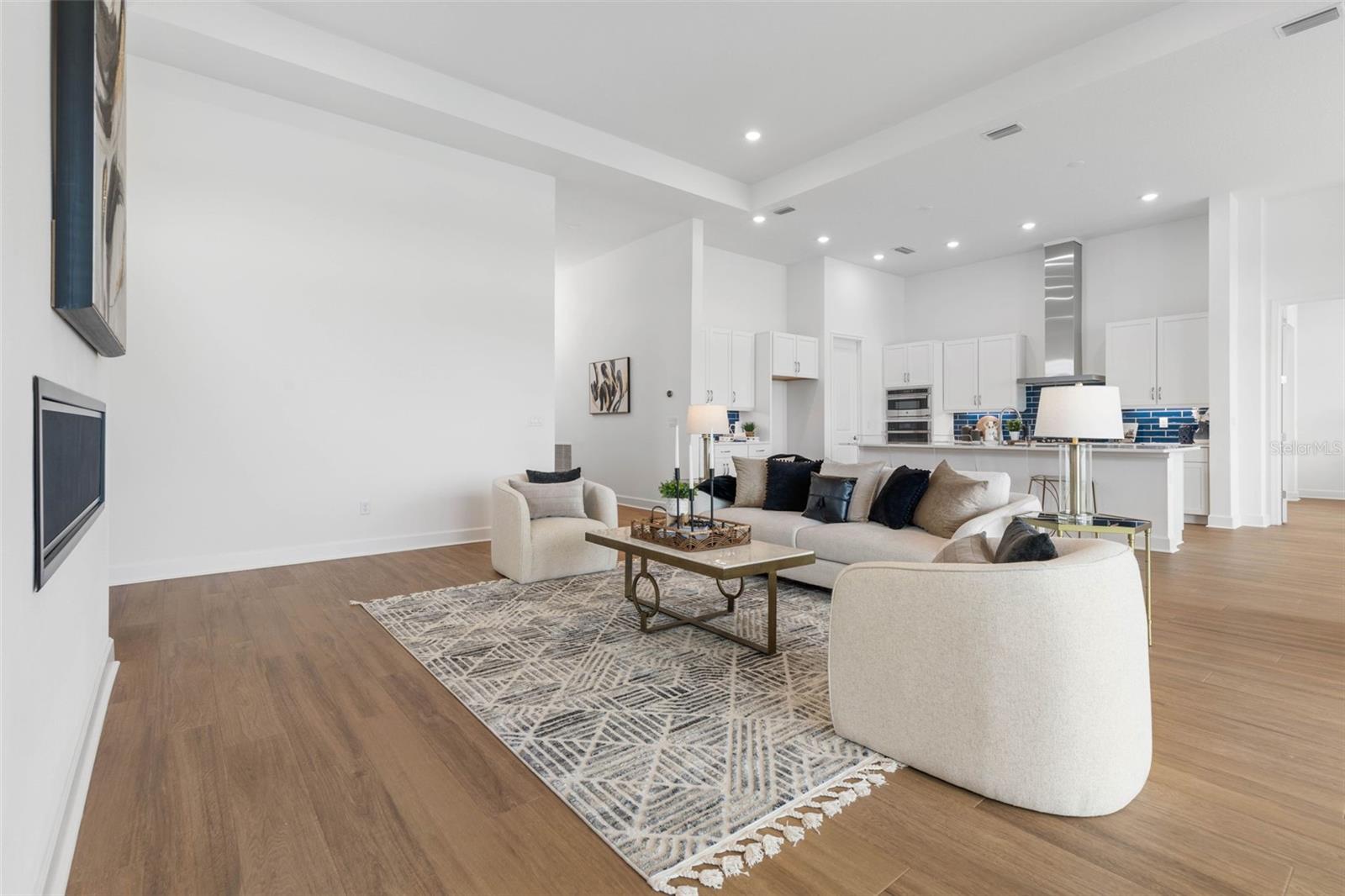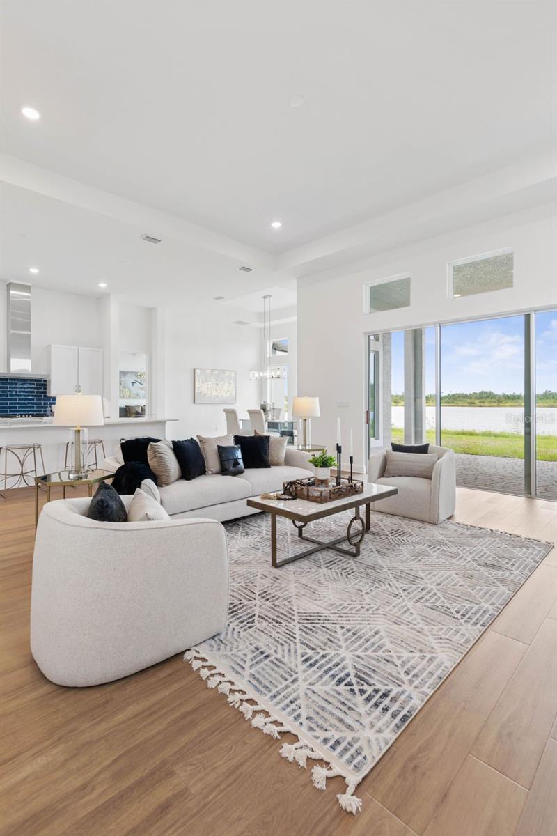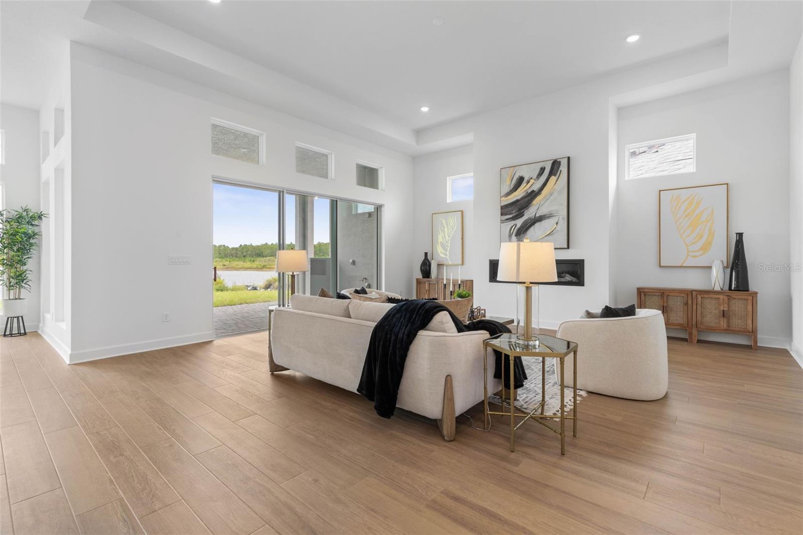 One-of-a-Kind, Brand-New ICI Home with Unmatched Features and a 4+ Car Garage in the Prestigious Mosaic Community! Discover luxury living at its finest in this beautifully crafted, newly built home in the highly sought-after Mosaic community on an oversized lot with gorgeous lake views. This custom ICI home stands out with exquisite finishes, a thoughtfully designed floor plan, and a rare 4+ car garage that boasts an impressive 12-foot ceiling height and oversized garage doors, offering ample space for vehicles, storage, or hobbies. As you approach, the paver entryway and inviting front porch welcome you home. Every detail has been carefully curated to offer elegance, convenience, and comfort. Main Features: * Spacious and Thoughtfully Designed Layout: Step into the entryway where the floor plan unfolds, leading you into a wide foyer. To the right, you'll find two guest bedrooms, each with ample natural light and closet space. These bedrooms share a beautifully appointed full bathroom, complete with upgraded quartz countertops and cabinetry. On the left, you'll find the second full bathroom and a laundry room enhanced with custom wall cabinets for extra storage and organization, conveniently located next to the interior garage entrance. * Open-Concept Living at its Best: Continue down the foyer, where the home opens up into a stunning living room, dining room, and kitchen space. Designed for entertaining, this area features soaring 12-foot ceilings and a full wall of three-panel glass sliding doors that provide seamless access to the paver-covered lanai. The living room is anchored by a sleek, 60-inch gas vent-free linear fireplace, creating a cozy yet modern atmosphere. Whether you're hosting guests or enjoying a quiet evening, the indoor-outdoor flow offers a perfect setting. * Chef's Dream Kitchen: The kitchen is truly the heart of the home, designed with both style and functionality in mind. It boasts quartz countertops and a large island with a beautiful Inverness Cobalt Matt finish, providing ample prep space and seating. One of the standout features of this home is the 4+ car garage, designed with functionality in mind. With a depth of 36 feet at the deepest point, this space is ideal for storing multiple vehicles, boats, or even creating a workshop. The 12-foot ceiling height allows for additional overhead storage, and the oversized garage doors (16x8 and 8x8) provide easy access. The wall-mounted garage door openers on both doors offer convenience and keep the space clutter-free. High-End Upgrades Throughout: * Flooring: Luxury vinyl with natural bevel honeycomb finish runs throughout the entire home, providing durability and style. * Technology & Convenience: The home features modern conveniences such as the Halo touch contemporary fingerprint keyless front door entry, extra electrical outlets placed throughout for easy access, and floodlights with motion sensors to enhance security. 300 amp service, a tankless hot water heater, and is prewired for security cameras. * Ceilings: 12-foot ceilings in the main living areas and lanai, plus vaulted ceilings in the master suite, and 8ft doors throughout add to the home's sense of spaciousness. With top-of-the-line finishes, an unbeatable layout, and a rare 4+ car garage, this is a dream home for those seeking luxury living in the Mosaic community. Don't miss out on this unique opportunity to own one of the most well-appointed homes in Daytona Beach's premier neighborhood!