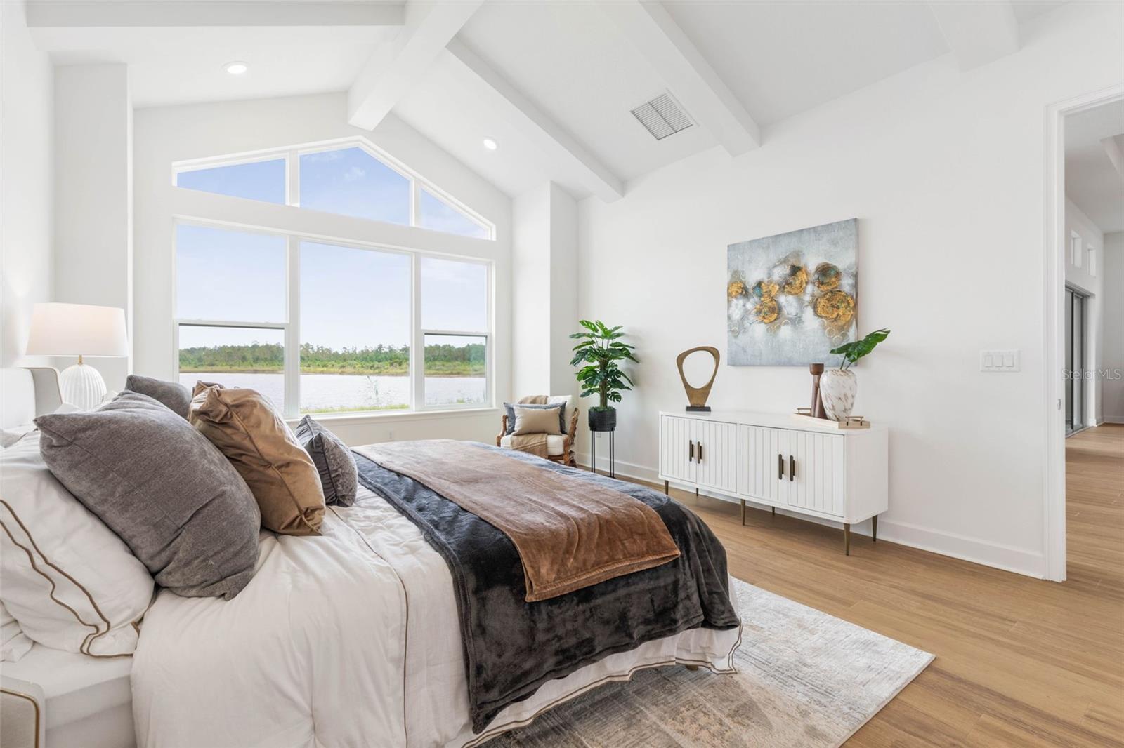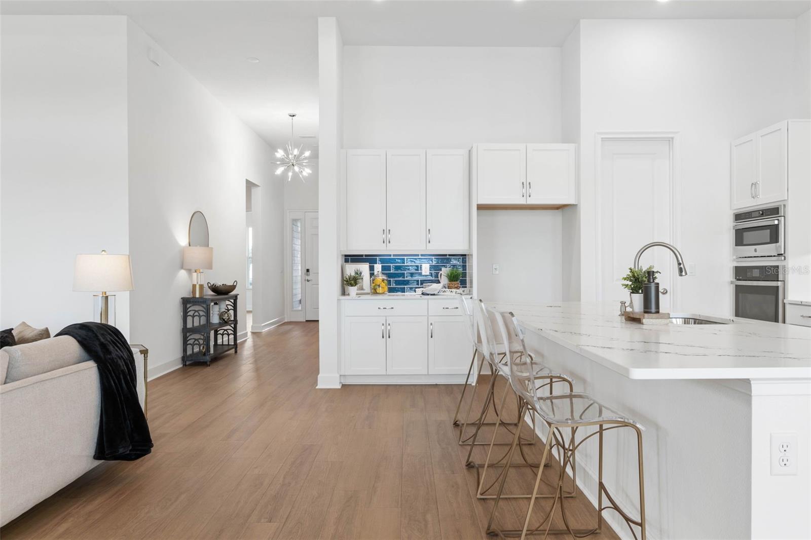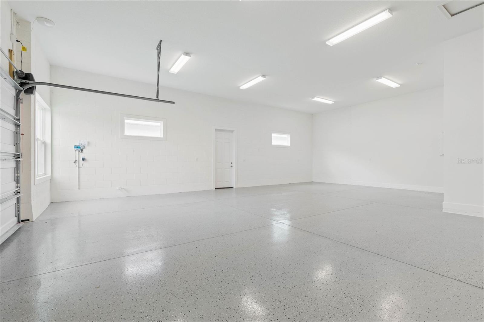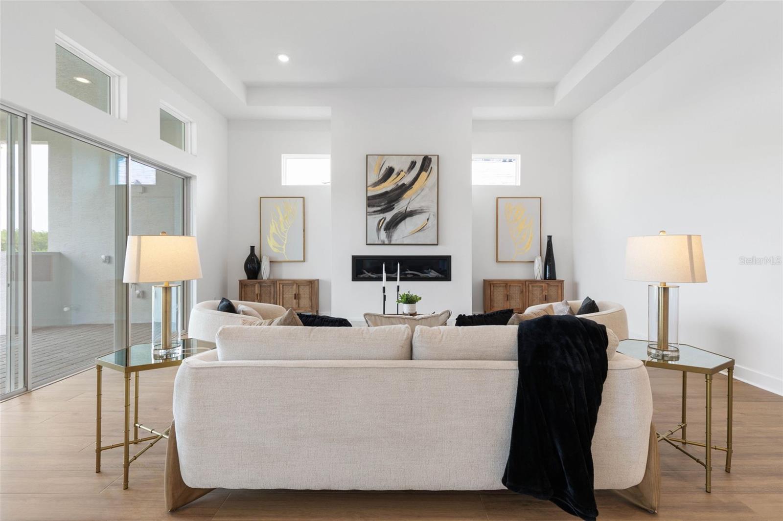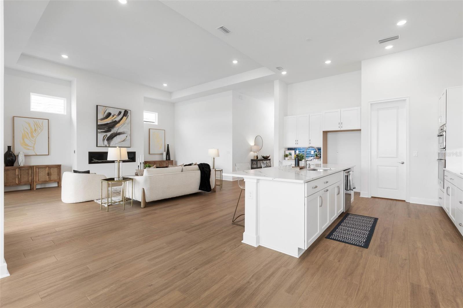 One-of-a-Kind, Brand-New ICI Home with Unmatched Features and a 4+ Car Garage in the Prestigious Mosaic Community! Discover luxury living at its finest in this beautifully crafted, newly built home in the highly sought-after Mosaic community on an oversized lot with gorgeous lake views. This custom ICI home stands out with exquisite finishes, a thoughtfully designed floor plan, and a rare 4+ car garage that boasts an impressive 12-foot ceiling height and oversized garage doors, offering ample space for vehicles, storage, or hobbies. As you approach, the paver entryway and inviting front porch welcome you home. Every detail has been carefully curated to offer elegance, convenience, and comfort. Main Features: * Spacious and Thoughtfully Designed Layout: Step into the entryway where the floor plan unfolds, leading you into a wide foyer. To the right, you'll find two guest bedrooms, each with ample natural light and closet space. These bedrooms share a beautifully appointed full bathroom, complete with upgraded quartz countertops and cabinetry. On the left, you'll find the second full bathroom and a laundry room enhanced with custom wall cabinets for extra storage and organization, conveniently located next to the interior garage entrance. * Open-Concept Living at its Best: Continue down the foyer, where the home opens up into a stunning living room, dining room, and kitchen space. Designed for entertaining, this area features soaring 12-foot ceilings and a full wall of three-panel glass sliding doors that provide seamless access to the paver-covered lanai. The living room is anchored by a sleek, 60-inch gas vent-free linear fireplace, creating a cozy yet modern atmosphere. Whether you're hosting guests or enjoying a quiet evening, the indoor-outdoor flow offers a perfect setting. * Chef's Dream Kitchen: The kitchen is truly the heart of the home, designed with both style and functionality in mind. It boasts quartz countertops and a large island with a beautiful Inverness Cobalt Matt finish, providing ample prep space and seating. One of the standout features of this home is the 4+ car garage, designed with functionality in mind. With a depth of 36 feet at the deepest point, this space is ideal for storing multiple vehicles, boats, or even creating a workshop. The 12-foot ceiling height allows for additional overhead storage, and the oversized garage doors (16x8 and 8x8) provide easy access. The wall-mounted garage door openers on both doors offer convenience and keep the space clutter-free. High-End Upgrades Throughout: * Flooring: Luxury vinyl with natural bevel honeycomb finish runs throughout the entire home, providing durability and style. * Technology & Convenience: The home features modern conveniences such as the Halo touch contemporary fingerprint keyless front door entry, extra electrical outlets placed throughout for easy access, and floodlights with motion sensors to enhance security. 300 amp service, a tankless hot water heater, and is prewired for security cameras. * Ceilings: 12-foot ceilings in the main living areas and lanai, plus vaulted ceilings in the master suite, and 8ft doors throughout add to the home's sense of spaciousness. With top-of-the-line finishes, an unbeatable layout, and a rare 4+ car garage, this is a dream home for those seeking luxury living in the Mosaic community. Don't miss out on this unique opportunity to own one of the most well-appointed homes in Daytona Beach's premier neighborhood!