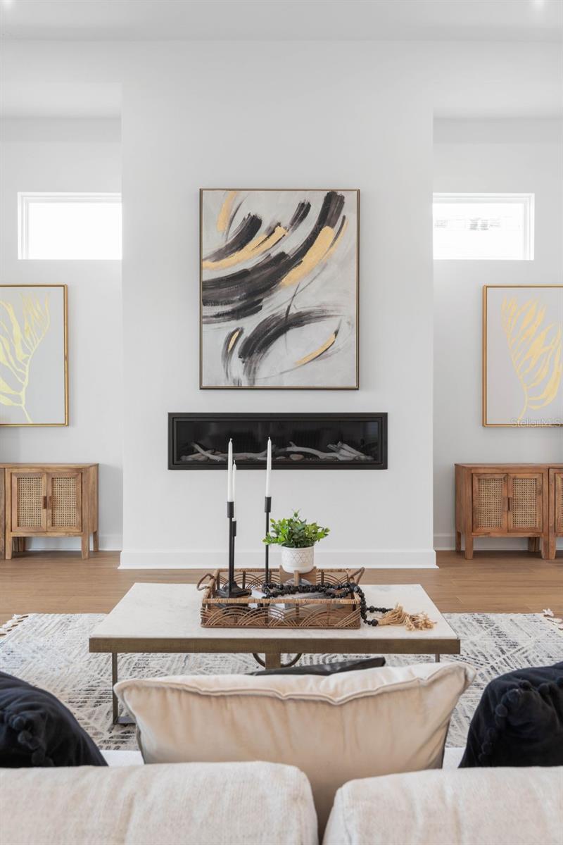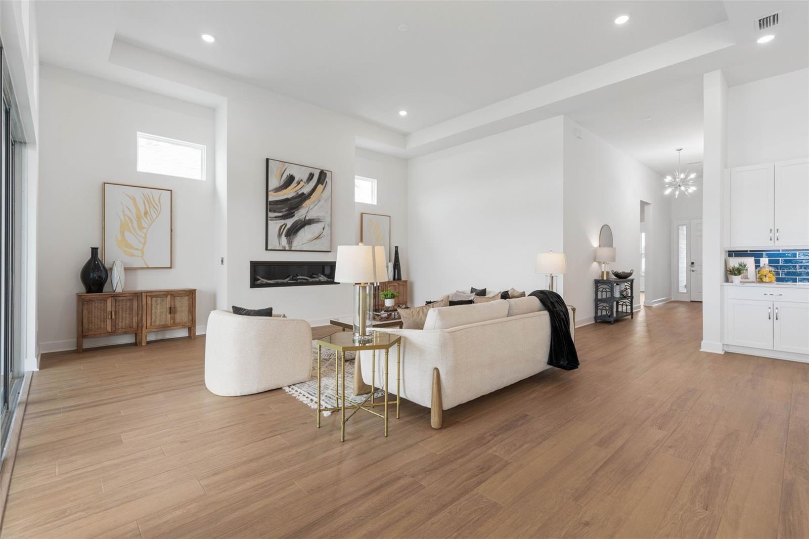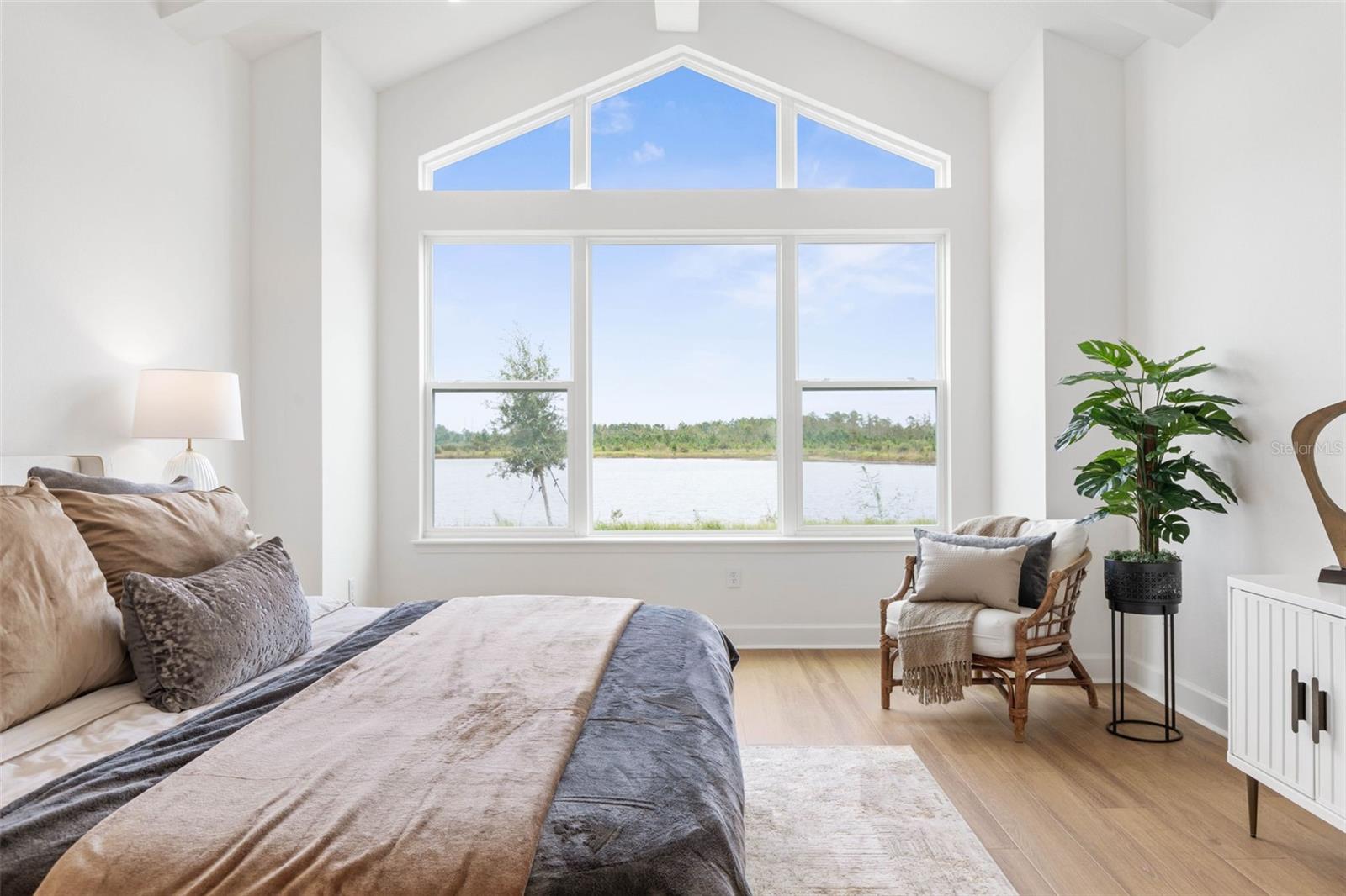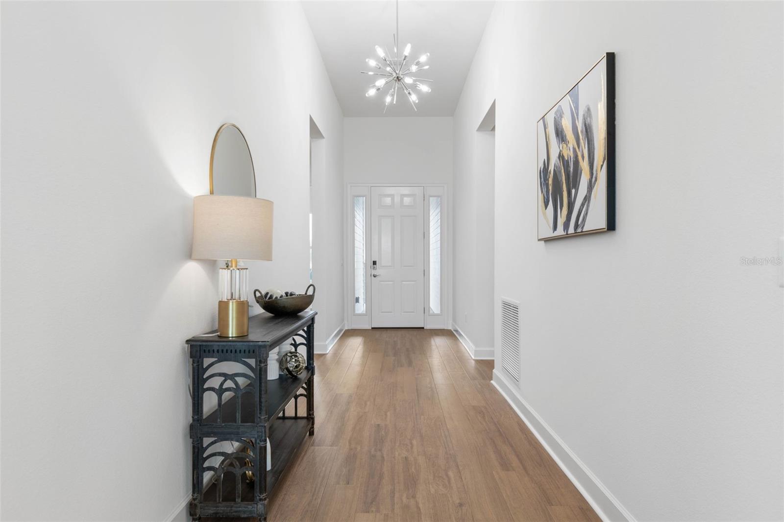 One-of-a-Kind, Brand-New ICI Home with Unmatched Features and a 4+ Car Garage in the Prestigious Mosaic Community! Discover luxury living at its finest in this beautifully crafted, newly built home in the highly sought-after Mosaic community on an oversized lot with gorgeous lake views. This custom ICI home stands out with exquisite finishes, a thoughtfully designed floor plan, and a rare 4+ car garage that boasts an impressive 12-foot ceiling height and oversized garage doors, offering ample space for vehicles, storage, or hobbies. As you approach, the paver entryway and inviting front porch welcome you home. Every detail has been carefully curated to offer elegance, convenience, and comfort. Main Features: * Spacious and Thoughtfully Designed Layout: Step into the entryway where the floor plan unfolds, leading you into a wide foyer. To the right, you'll find two guest bedrooms, each with ample natural light and closet space. These bedrooms share a beautifully appointed full bathroom, complete with upgraded quartz countertops and cabinetry. On the left, you'll find the second full bathroom and a laundry room enhanced with custom wall cabinets for extra storage and organization, conveniently located next to the interior garage entrance. * Open-Concept Living at its Best: Continue down the foyer, where the home opens up into a stunning living room, dining room, and kitchen space. Designed for entertaining, this area features soaring 12-foot ceilings and a full wall of three-panel glass sliding doors that provide seamless access to the paver-covered lanai. The living room is anchored by a sleek, 60-inch gas vent-free linear fireplace, creating a cozy yet modern atmosphere. Whether you're hosting guests or enjoying a quiet evening, the indoor-outdoor flow offers a perfect setting. * Chef's Dream Kitchen: The kitchen is truly the heart of the home, designed with both style and functionality in mind. It boasts quartz countertops and a large island with a beautiful Inverness Cobalt Matt finish, providing ample prep space and seating. One of the standout features of this home is the 4+ car garage, designed with functionality in mind. With a depth of 36 feet at the deepest point, this space is ideal for storing multiple vehicles, boats, or even creating a workshop. The 12-foot ceiling height allows for additional overhead storage, and the oversized garage doors (16x8 and 8x8) provide easy access. The wall-mounted garage door openers on both doors offer convenience and keep the space clutter-free. High-End Upgrades Throughout: * Flooring: Luxury vinyl with natural bevel honeycomb finish runs throughout the entire home, providing durability and style. * Technology & Convenience: The home features modern conveniences such as the Halo touch contemporary fingerprint keyless front door entry, extra electrical outlets placed throughout for easy access, and floodlights with motion sensors to enhance security. 300 amp service, a tankless hot water heater, and is prewired for security cameras. * Ceilings: 12-foot ceilings in the main living areas and lanai, plus vaulted ceilings in the master suite, and 8ft doors throughout add to the home's sense of spaciousness. With top-of-the-line finishes, an unbeatable layout, and a rare 4+ car garage, this is a dream home for those seeking luxury living in the Mosaic community. Don't miss out on this unique opportunity to own one of the most well-appointed homes in Daytona Beach's premier neighborhood!