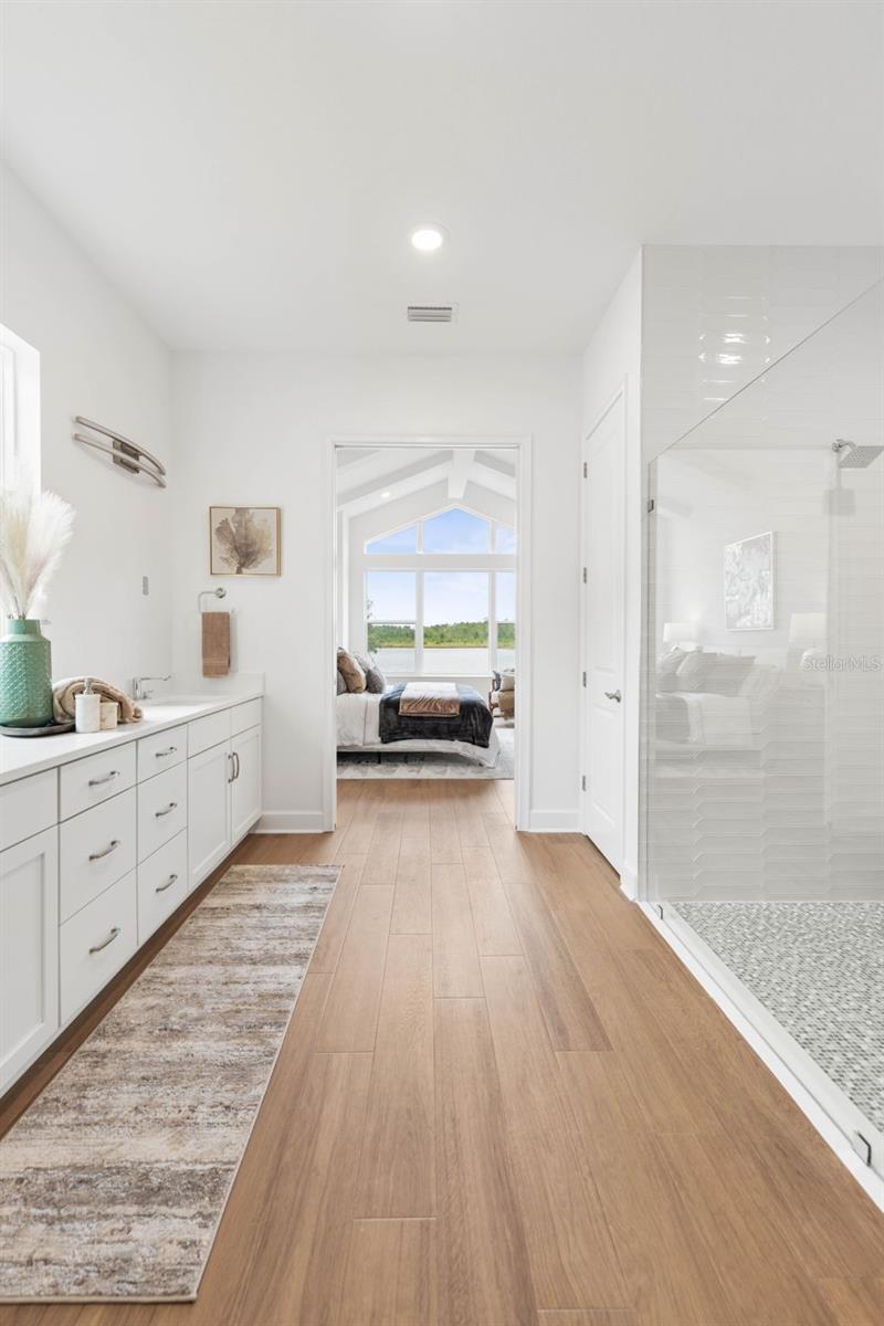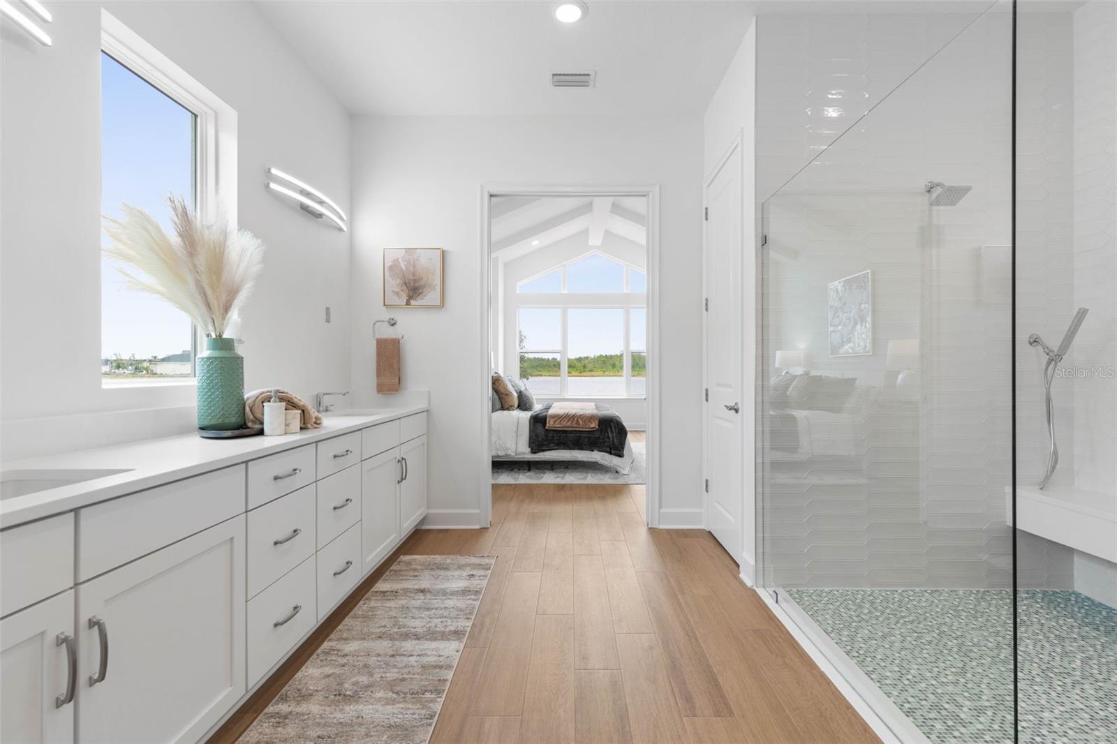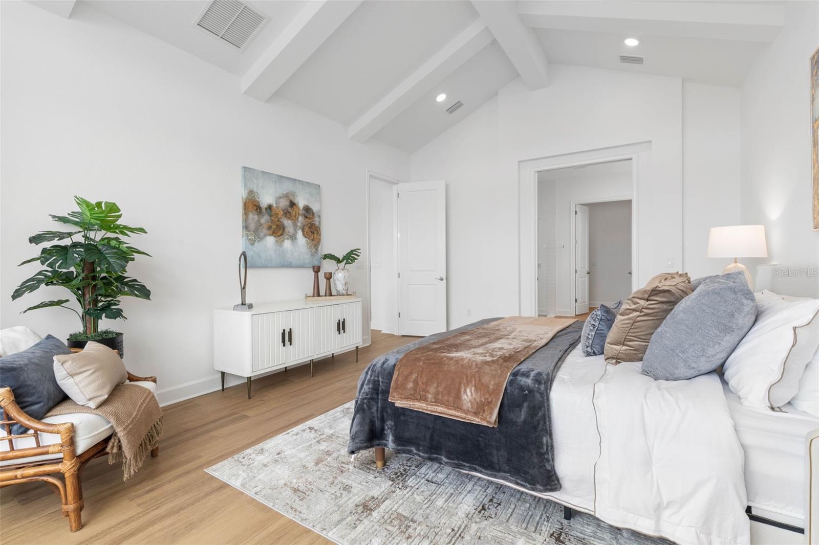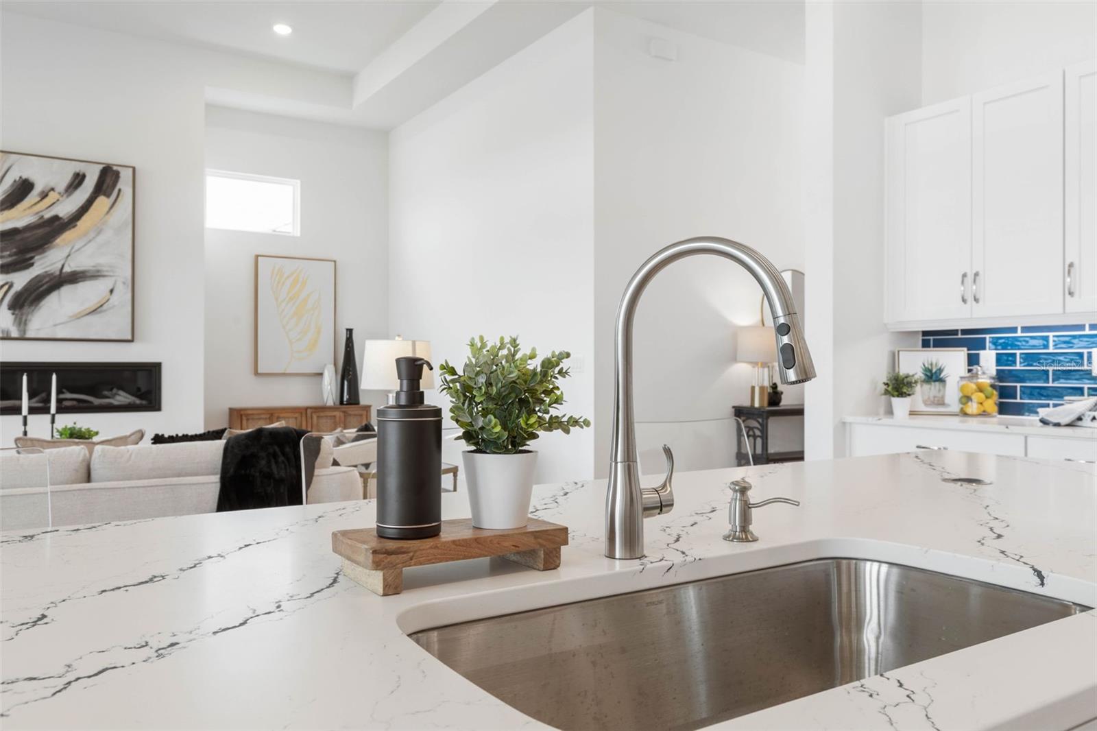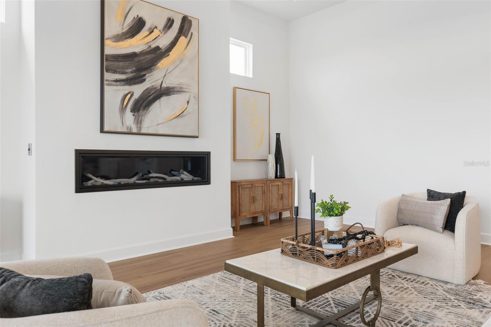 One-of-a-Kind, Brand-New ICI Home with Unmatched Features and a 4+ Car Garage in the Prestigious Mosaic Community! Discover luxury living at its finest in this beautifully crafted, newly built home in the highly sought-after Mosaic community on an oversized lot with gorgeous lake views. This custom ICI home stands out with exquisite finishes, a thoughtfully designed floor plan, and a rare 4+ car garage that boasts an impressive 12-foot ceiling height and oversized garage doors, offering ample space for vehicles, storage, or hobbies. As you approach, the paver entryway and inviting front porch welcome you home. Every detail has been carefully curated to offer elegance, convenience, and comfort. Main Features: * Spacious and Thoughtfully Designed Layout: Step into the entryway where the floor plan unfolds, leading you into a wide foyer. To the right, you'll find two guest bedrooms, each with ample natural light and closet space. These bedrooms share a beautifully appointed full bathroom, complete with upgraded quartz countertops and cabinetry. On the left, you'll find the second full bathroom and a laundry room enhanced with custom wall cabinets for extra storage and organization, conveniently located next to the interior garage entrance. * Open-Concept Living at its Best: Continue down the foyer, where the home opens up into a stunning living room, dining room, and kitchen space. Designed for entertaining, this area features soaring 12-foot ceilings and a full wall of three-panel glass sliding doors that provide seamless access to the paver-covered lanai. The living room is anchored by a sleek, 60-inch gas vent-free linear fireplace, creating a cozy yet modern atmosphere. Whether you're hosting guests or enjoying a quiet evening, the indoor-outdoor flow offers a perfect setting. * Chef's Dream Kitchen: The kitchen is truly the heart of the home, designed with both style and functionality in mind. It boasts quartz countertops and a large island with a beautiful Inverness Cobalt Matt finish, providing ample prep space and seating. One of the standout features of this home is the 4+ car garage, designed with functionality in mind. With a depth of 36 feet at the deepest point, this space is ideal for storing multiple vehicles, boats, or even creating a workshop. The 12-foot ceiling height allows for additional overhead storage, and the oversized garage doors (16x8 and 8x8) provide easy access. The wall-mounted garage door openers on both doors offer convenience and keep the space clutter-free. High-End Upgrades Throughout: * Flooring: Luxury vinyl with natural bevel honeycomb finish runs throughout the entire home, providing durability and style. * Technology & Convenience: The home features modern conveniences such as the Halo touch contemporary fingerprint keyless front door entry, extra electrical outlets placed throughout for easy access, and floodlights with motion sensors to enhance security. 300 amp service, a tankless hot water heater, and is prewired for security cameras. * Ceilings: 12-foot ceilings in the main living areas and lanai, plus vaulted ceilings in the master suite, and 8ft doors throughout add to the home's sense of spaciousness. With top-of-the-line finishes, an unbeatable layout, and a rare 4+ car garage, this is a dream home for those seeking luxury living in the Mosaic community. Don't miss out on this unique opportunity to own one of the most well-appointed homes in Daytona Beach's premier neighborhood!