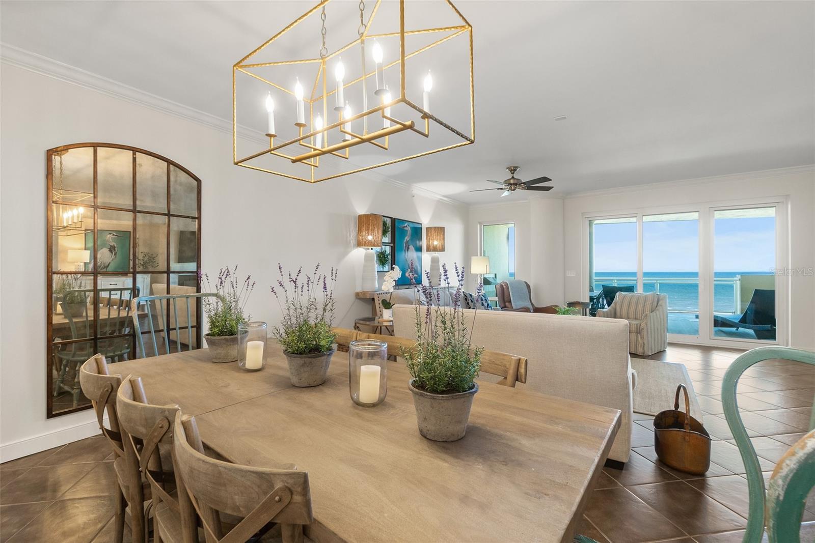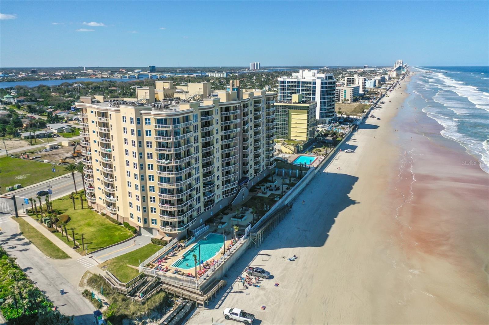 DISCOVER THE THRILLING ALLURE OF COASTAL LIVING WITH THIS ICONIC, *HGTV-WORTHY* OCEANFRONT PROPERTY! IMMERSE YOURSELF IN A STUNNING DESIGN THAT PERFECTLY COMBINES THE INVITING WARMTH OF A *COASTAL FARMHOUSE* WITH THE VIBRANT ENERGY OF DAYTONA BEACH SHORES. *THIS RESIDENCE GRANTS YOU THE OPPORTUNITY TO PURCHASE A BUSINESS WITH WEEKLY RENTALS ALREADY IN PLACE. ($66K NET) OR ENJOY IT AS AN EXCLUSIVE OASIS. ** OFFERING A FULLY FURNISHED INTERIOR, THE HIGHLY COVETED LAGUNA FLOOR PLAN BOASTS 3 BEDROOMS AND 3.5 BATHROOMS WITH A SPACIOUS 2,848 SQUARE FEET OF LIVING AREA. SHOWCASING ONE OF THE LARGEST OCEANFRONT BALCONIES ON THE BEACH. PLUS, A RIVERFRONT BALCONY TO ENJOY THE SUNSETS. YOUR SEMI-PRIVATE ELEVATOR BRINGS YOU TO YOUR PERSONAL DESTINATION, WHICH ENSURES EXCLUSIVITY AND PRIVACY. STEP INTO THE GRAND ENTRANCE COMPLIMENTED BY A PRESIDENTIAL DOUBLE DOOR FOYER WITH ROTUNDA, CURVED WALLS, AND DESIGNER NICHE OUTFITTED WITH SHIP-LAP FEATURE WALL. DINNER PARTY READY, THE SOFT COLOR PALATE, AND TOUCHES OF NATURAL WOOD TONES ALLOW THE OCEAN VIEWS TO TAKE CENTER STAGE FROM THE LIVING ROOM/DINING ROOM. THE LARGE TRESTLE FARMHOUSE TABLE MELDS PERFECTLY WITH THE FLANKED WINDSOR CHAIRS. WHILE THE GLISTENING LIGHT OF THE CANDELABRA IN A RECTANGULAR OPEN FLAME CHANDELIER INCORPORATES BEACHFRONT SIMPLICITY ACCENTED AGAINST A GLAM MIRROR. THE SPACIOUS LIVING ROOM IS BEAUTIFULLY APPOINTED WITH A FIREPLACE ADORNED WITH A QUARTZ SURROUND AND A CONTEMPORARY INSERT WITH FIRE GLASS DIAMONDS. GET COZY ON THE COUCH AND TAKE IN THE INVIGORATING OCEAN VIEWS AS THE WALL OF GLASS REFLECTS ONTO THE COASTAL WORLD OF PALM TREES AND OCEAN WAVES WHERE THE TROPICAL ISLAND TAKES YOU AWAY TO PARADISE! THE KITCHEN IS NICELY APPOINTED WITH FINE EUROPEAN CABINETRY ACCENTED WITH CALACATTA VALENTIN QUARTZ COUNTERS WITH SUBTLE VEINING AND A CRISP BACKGROUND. THE SHINY SUBWAY TILE BACKSPLASH PLAYS NICELY AGAINST THE DARK CABINETS. STAINLESS PULLS, TOP-OF-THE-LINE FISHER & PAYKELL DISHWASHER DRAWERS, STAINLESS STEEL APPLIANCES, AND A WINE FRIDGE MAKE THIS CHEF-INSPIRED KITCHEN A DREAM TO ENTERTAIN IN. FOR ADDED CONVENIENCE, THE KITCHEN CORRIDOR OFFERS A SIDE ENTRY OR EXIT WITH ACCESS TO A SECOND ELEVATOR. (1 of 3 elevators within range). THE PRIMARY BEDROOM IS AN IDEAL RETREAT WITH CAPTIVATING OCEAN VIEWS AT EVERY TURN AND AN UPSCALE APPEAL WITH HIGH CEILINGS, CROWN MOULDING, DOUBLE DOOR ENTRY, AND OCEAN VIEWS ON FULL DISPLAY. RUSTIC INSPIRED FLOORING SET AGAINST THE MONOCHROMATIC FURNISHINGS MAKE THIS A LUSH OASIS. THE PRIMARY BATH FEATURES A LARGE SUMPTUOUS SOAKING TUB, DOUBLE VANITY, DUAL SHOWER HEAD, AND SPA-INSPIRED FINISHES. TWO ADDITIONAL BEDROOMS WITH ENSUITE ON THE WEST WING WITH BALCONY PROVIDE INTRACOASTAL VIEWS, *MAKING THIS FRONT TO BACK FLOOR PLAN THE MOST DESIRABLE IN THE BUILDING!* PRIVATE COVERED BALCONY WITH KENYON GRILL MAKES A WONDERFUL SUMMER KITCHEN. THIS PERSONAL SANCTUARY INCORPORATES PICTURESQUE VIEWS, BALMY BREEZES, AND SYMPHONIES OF LAPPING OCEAN WAVES. LAUNDRY ROOM ON THE WEST WING WITH SAMSUNG FRONT LOAD WASHER AND DRYER WITH PEDESTALS, SINK, AND EXTRA CABINETRY. THE AMENITIES ARE TOP-NOTCH AT OCEAN VISTAS! HEATED OCEANFRONT POOL, 400-FOOT BEACHFRONT SUNDECK W HOT TUB, FIRE PIT, LUSH GROUNDS, AND FOUNTAIN. 5-STAR CLUB ROOM WITH BILLIARD TABLE, FIREPLACE, KITCHEN, ELEVATED SUNDECK ADJACENT TO CLUBROOM, STATE-OF-THE-ART FITNESS CENTER, AND A TOP-NOTCH LIFESTYLE! All information deemed to be accurate but should be verified.