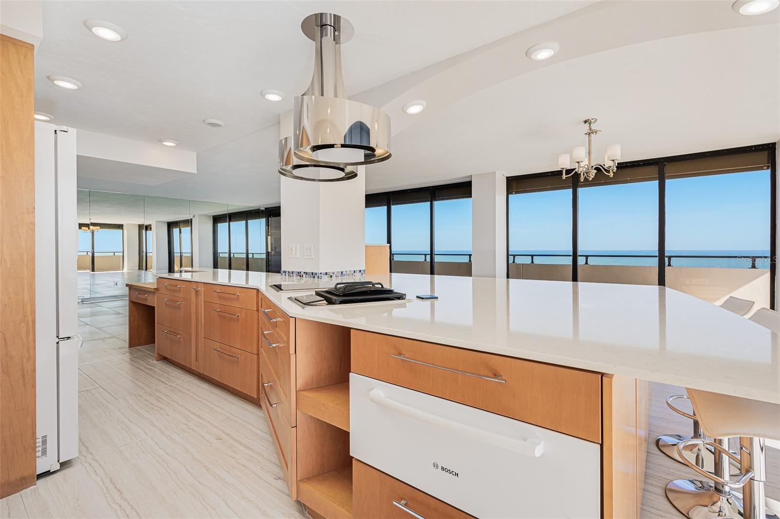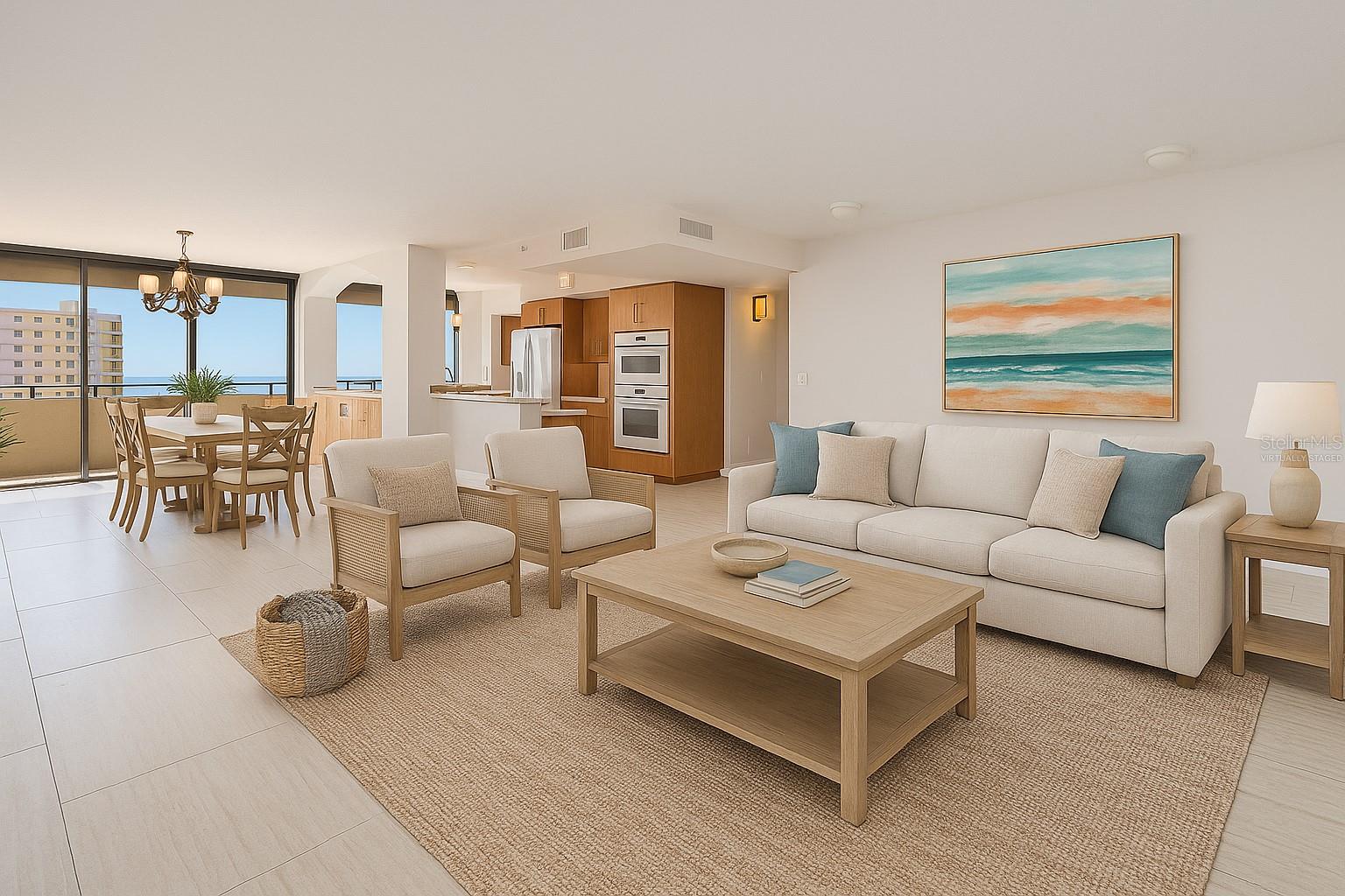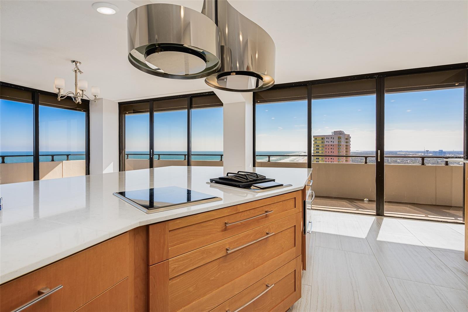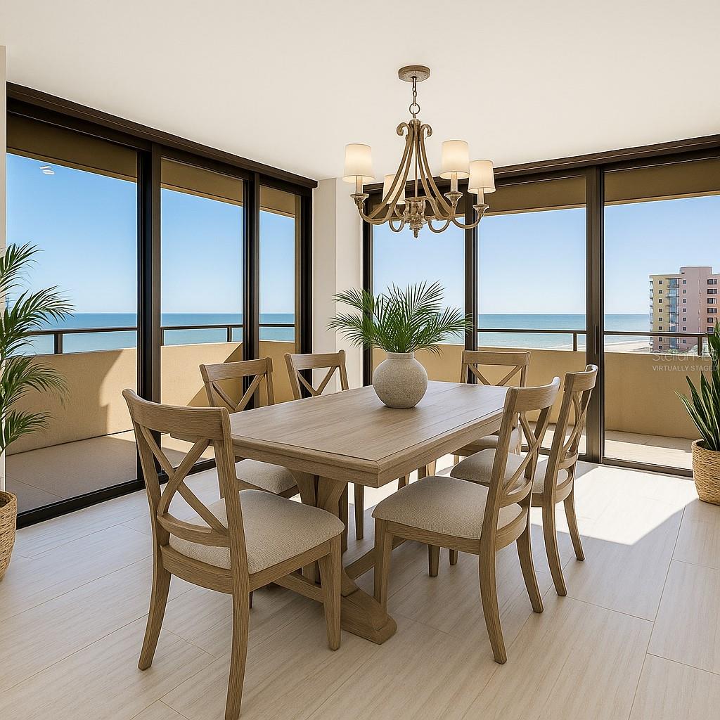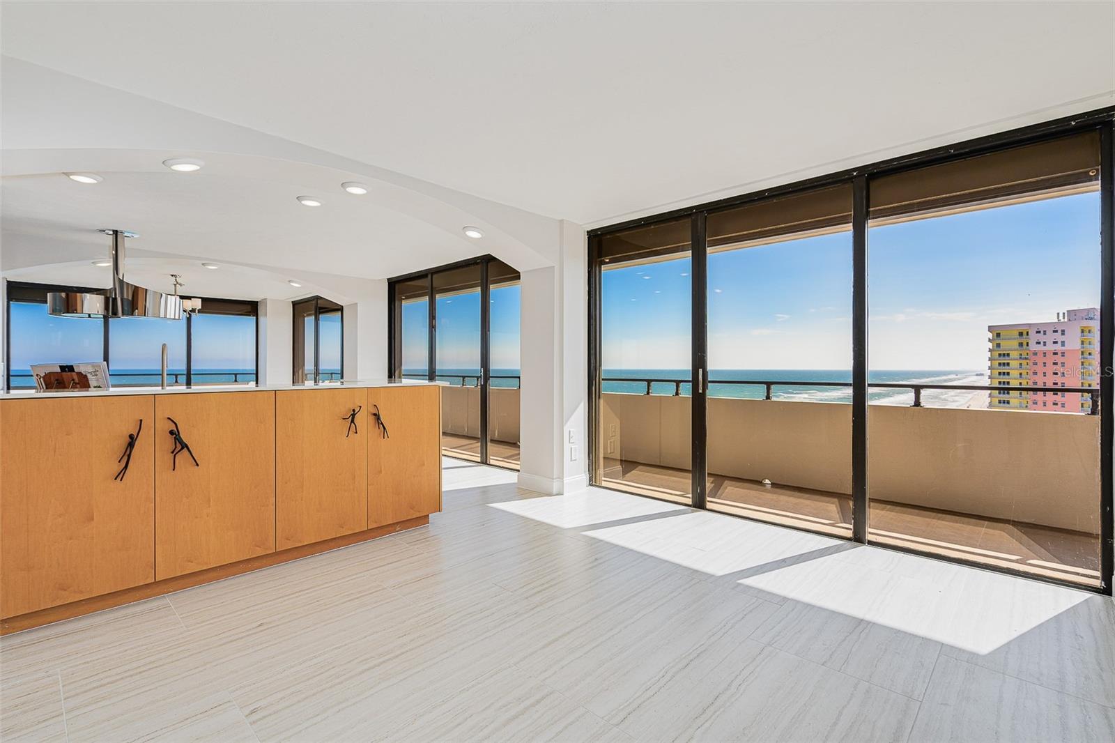 PRICE REDUCED & READY FOR SOMEONE TO CALL THIS STUNNING UNIT HOME. Recently renovated, this home in the sky with breathtaking ocean and river views that redefine luxury living. The Aliki Forum Condominium is renowned for its exclusivity, offering unparalleled privacy with only two units per floor. Upon arriving on the 15th floor, you'll experience a freshly updated private lobby and newly painted double doors that open to reveal a meticulously designed 2-bedroom, 2.5-bathroom beach oasis, complete with a den that can easily be converted into a third bedroom. Positioned on the coveted southeastern side, the wrap-around 180-degree balcony provides panoramic views of the Atlantic Ocean and the Intracoastal, offering the perfect vantage point to enjoy both sunrise and sunset vistas. The heart of this home features a designer kitchen with ample counter space, seamlessly blending into the open living area—ideal for entertaining while watching dolphins play in the surf. Updated luxury 2 x 4 ft. tile flooring, new baseboards, and fresh paint flow throughout the entire condominium, creating a modern, cohesive design. The master suite offers stunning ocean and river views, along with a spacious bathroom equipped with dual sinks and ample closet space. The second bedroom, with its serene ocean views, serves as a tranquil retreat. Throughout the unit, abundant natural light highlights the sophisticated updates, including new flooring, ensuring an elevated living experience. The in-unit laundry room has been upgraded with a new sink, granite countertops, cabinetry, and an LG washer and dryer. Hurricane shutters installed in 2018 add an extra layer of security and peace of mind. An optional second underground parking spot is available for an additional fee. The Aliki Forum is one of the few condominium buildings along the coast to successfully pass its 2024 milestone review and structural integrity report, assuring quality and safety. Amenities include a refreshed luxury lobby, a sparkling pool with an outdoor shower and BBQ area, and a fully equipped gym. The building's reputation for privacy is enhanced by on-site management, secure owner parking, and a sense of exclusivity. Conveniently located near Bellair Plaza's shops and restaurants, Publix, and a UPS store, this residence is perfectly situated for modern living. Don't miss the opportunity to make this exclusive condo your own. Contact the listing agent today to schedule a private tour and experience refined coastal living at 2200 N Atlantic Avenue #1502. One or more images have been virtually staged. Additional Highlights: VA-approved building HOA includes cable, Wi-Fi, trash, building insurance, and pest control Pet-friendly community On-site maintenance and manager