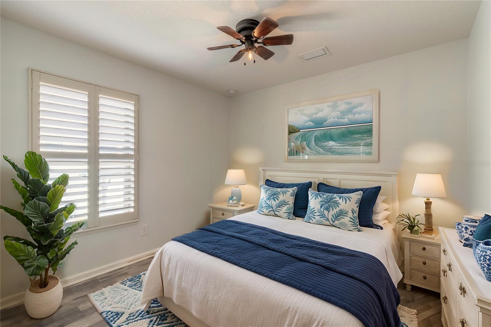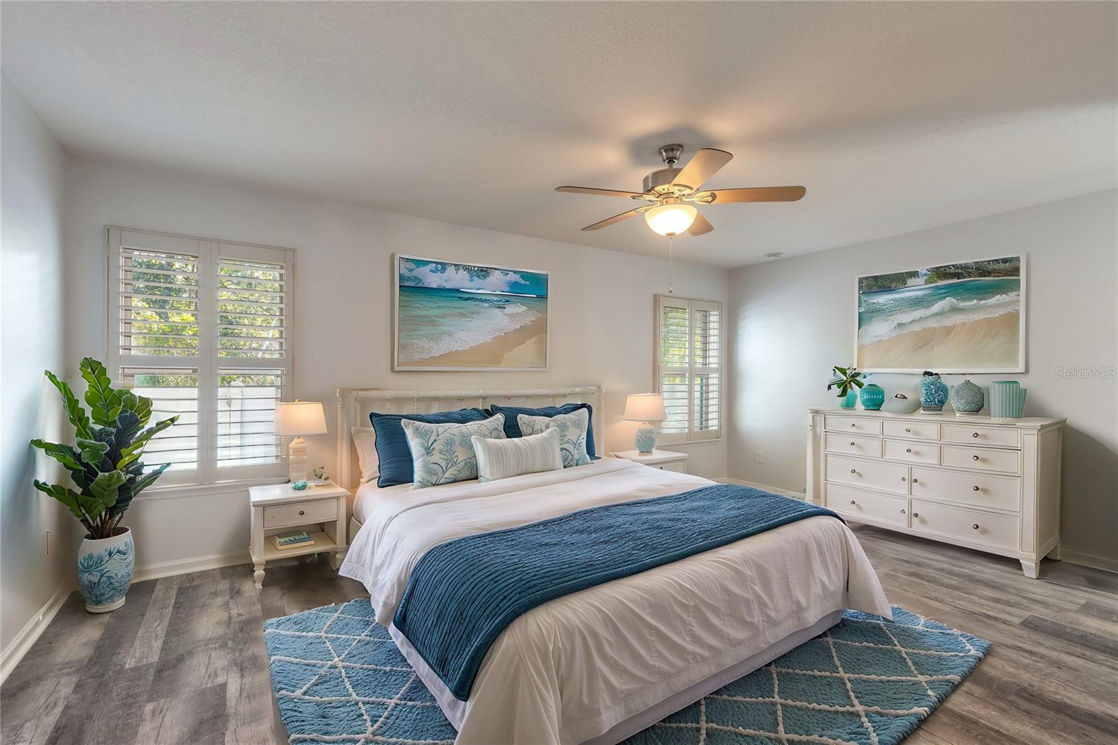One or more photo(s) has been virtually staged. Welcome home to Tuscany Chase nestled in a serene small community just minutes from the LPGA shopping and restaurant hub. This 3-bedroom 2-bath residence offers the perfect blend of comfort and style. The open floor plan that seamlessly connects the main living areas creates an inviting atmosphere for both relaxation and entertainment. The large kitchen is a chef's delight featuring beautiful granite countertops, elegant 42'' dark wood cabinetry, SS appliances, a convenient double oven, along with plenty of storage and a spacious pantry. Retreat to the private primary en-suite, your own personal sanctuary complete with a generous walk-in closet, a stylish double sink quartz vanity, soaking tub, and a walk-in shower. Additional highlights of this lovely home include a NEW AC, fully fenced backyard perfect for outdoor gatherings, plantation shutters for added privacy, gutters, a freshly painted interior, and easy-care tile and laminate flooring throughout—no carpeting in sight! Enjoy sunny days by the community pool and embrace the lifestyle you've always wanted. Don't miss out on this exceptional opportunity! One or more photos have been virtually staged. All sizes are approx. All information deemed accurate but cannot be guaranteed. Call for your private showing today!