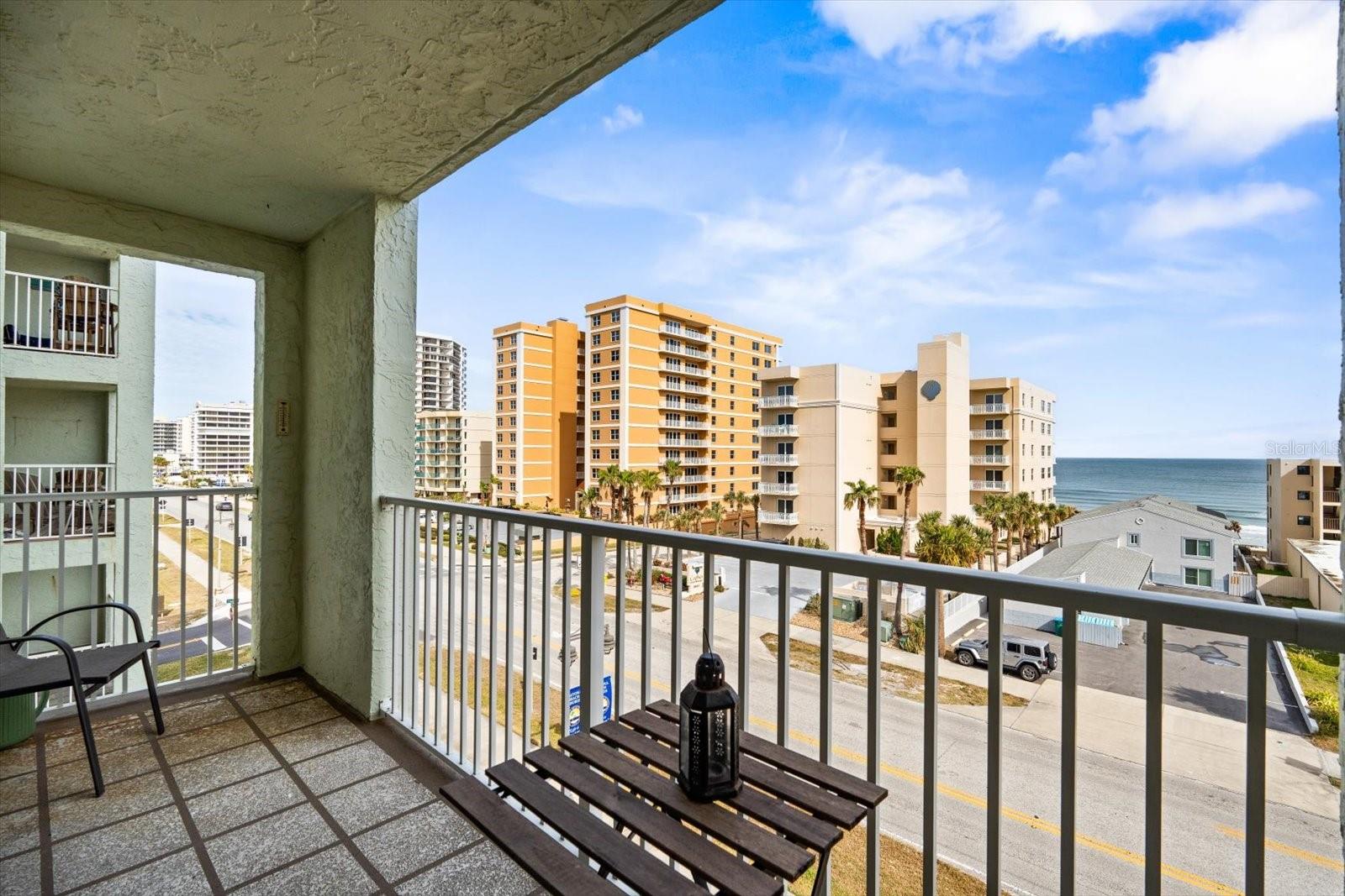 Charming Condo with Stunning River and Ocean Views in Daytona Beach Shores! Wake up to ocean sunrises and unwind with river sunsets from this beautifully updated 2-bedroom, 2-bath condo at Ocean Terrace. Located on the 5th floor, enjoy panoramic views from your private balcony, primary suite, and living area. The secondary bedroom, with a convenient Murphy bed, is perfect for guests or a home office. Inside, you'll find stylish tile and plank flooring, a sleek kitchen with stainless steel appliances, and a brand-new AC (2022). With direct access to Daytona's ''no-drive'' beach, relaxation is just steps away. Ocean Terrace amenities include a pool, tennis and pickleball courts, and a clubhouse. Condo fees cover cable, Wi-Fi, pest control, trash, and exterior maintenance. Short-term rental potential (1-week minimum) adds extra income opportunity, plus on-site management for convenience. Whether for a beach getaway or smart investment, this condo offers it all.