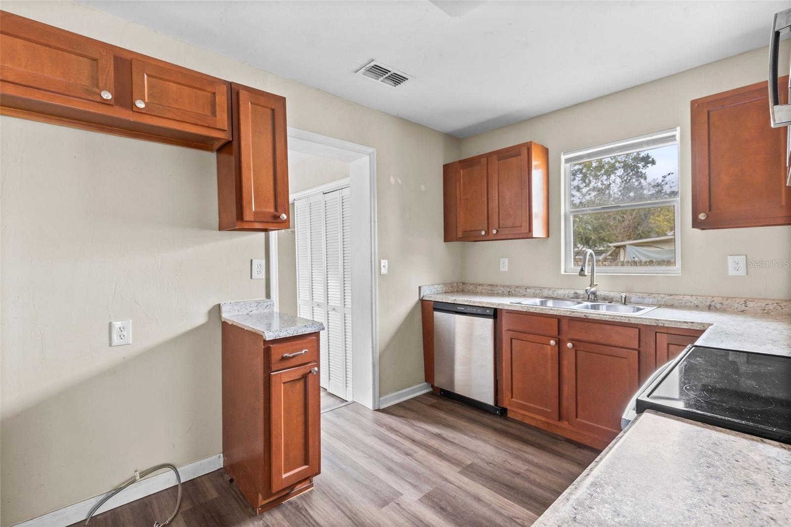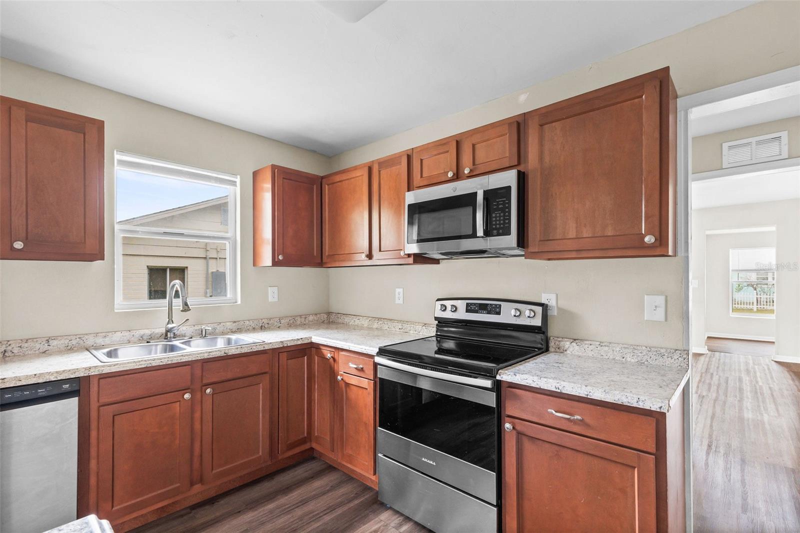 Great first time home buyer home or investment property! This concrete block, 2 BR, 1 BTH home is cute as a button! It features a 2017 roof, 2018 water heater and 2017 HVAC. It has updated vinyl flooring throughout and newer interior and exterior doors. The kitchen offers maple shaker cabinetry and stainless appliances. It was renovated in 2017. The bath was also renovated in 2017 with a new tub, tile surround, vanity, and toilet! Also in 2017 were new windows and new electrical upgrade to 200 amp service. Situated on a nice corner lot, across the street from a lovely pond, this home is move in ready. FHA and VA are ok! All information taken from the tax record, and while deemed reliable, cannot be guaranteed.