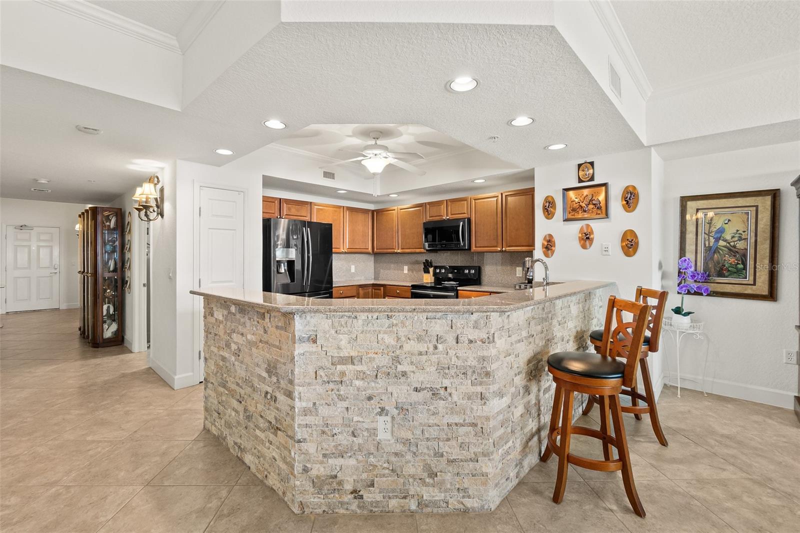 ISLAND CROWNE REPRESENTS THE NEWEST CONDOMINIUM LIVING IN DAYTONA BEACH WITH THE PINNACLE OF LUXURY LIVING, OFFERING AN UNMATCHED BLEND OF PRIVACY, ELEGANCE AND BREATHTAKING VIEWS! THIS WARM CONTEMPORARY CONDOMINIUM HOME CONSISTS OF A CHEF'S DREAM KITCHEN WITH DARK STAINLESS APPLIANCES, IMPORTED GRANITE COUNTERS WITH A FULL GRANITE BACKSPLASH AND A STACKED STONE WALL SURROUNDING THE BREAKFAST BAR. THE EXPANSIVE GREAT ROOM INCLUDES A LIVING AND DINING AREAS WITH A WET BAR, ALL FEATURING OCEAN VIEWS, ENHANCED WITH PLANTATION SHUTTERS, CROWN MOLDING, DESIGNER LIGHTING, OPENING ONTO A REMARKABLE OCEANFRONT BALCONY FOR SEAMLESS INDOOR/OUTDOOR LIVING. THE LUXURIOUS PRIMARY SUITE OFFERS DUAL WALK-IN CLOSETS AND A SPA STYLE BATHROOM. 2 ADDITIONAL BEDROOM SUITES FEATURE PRIVATE BATHS AND EXCEPTIONAL CLOSETS. AMENITIES INCLUDE INDOOR & OUTDOOR POOLS FOR YEAR ROUND SWIMMING. THE INDOOR HEATED POOL IS ADJACENT TO THE FITNESS CENTER AND SAUNAS. THIS IS AN ARCHITECTURAL GEM! Square footage received from tax rolls. All information intended to be accurate but cannot be guaranteed.