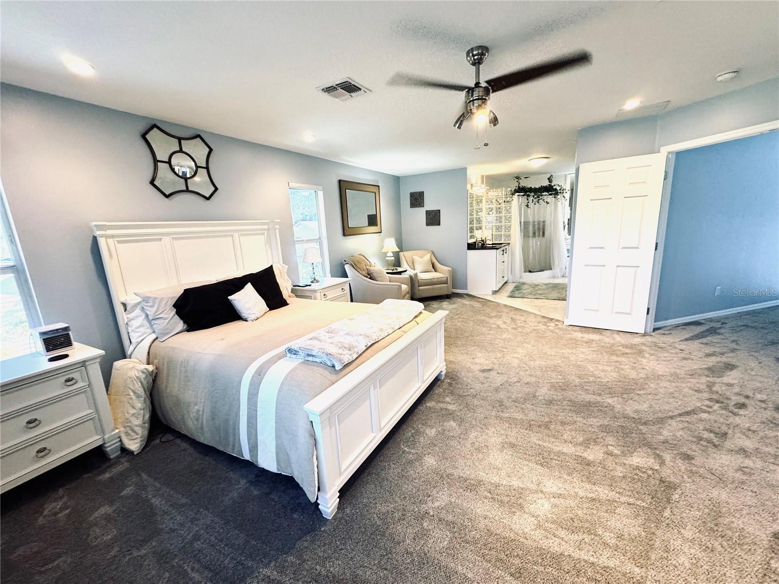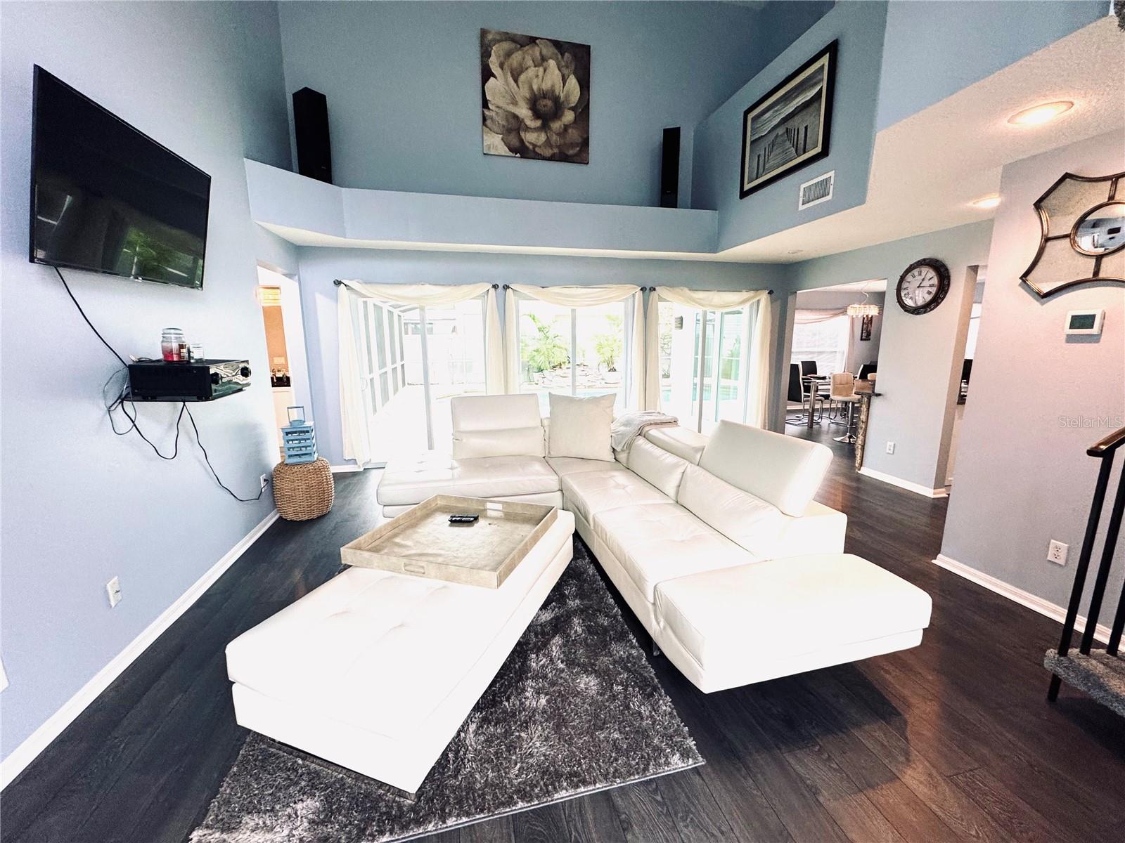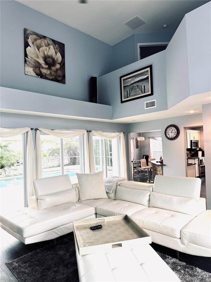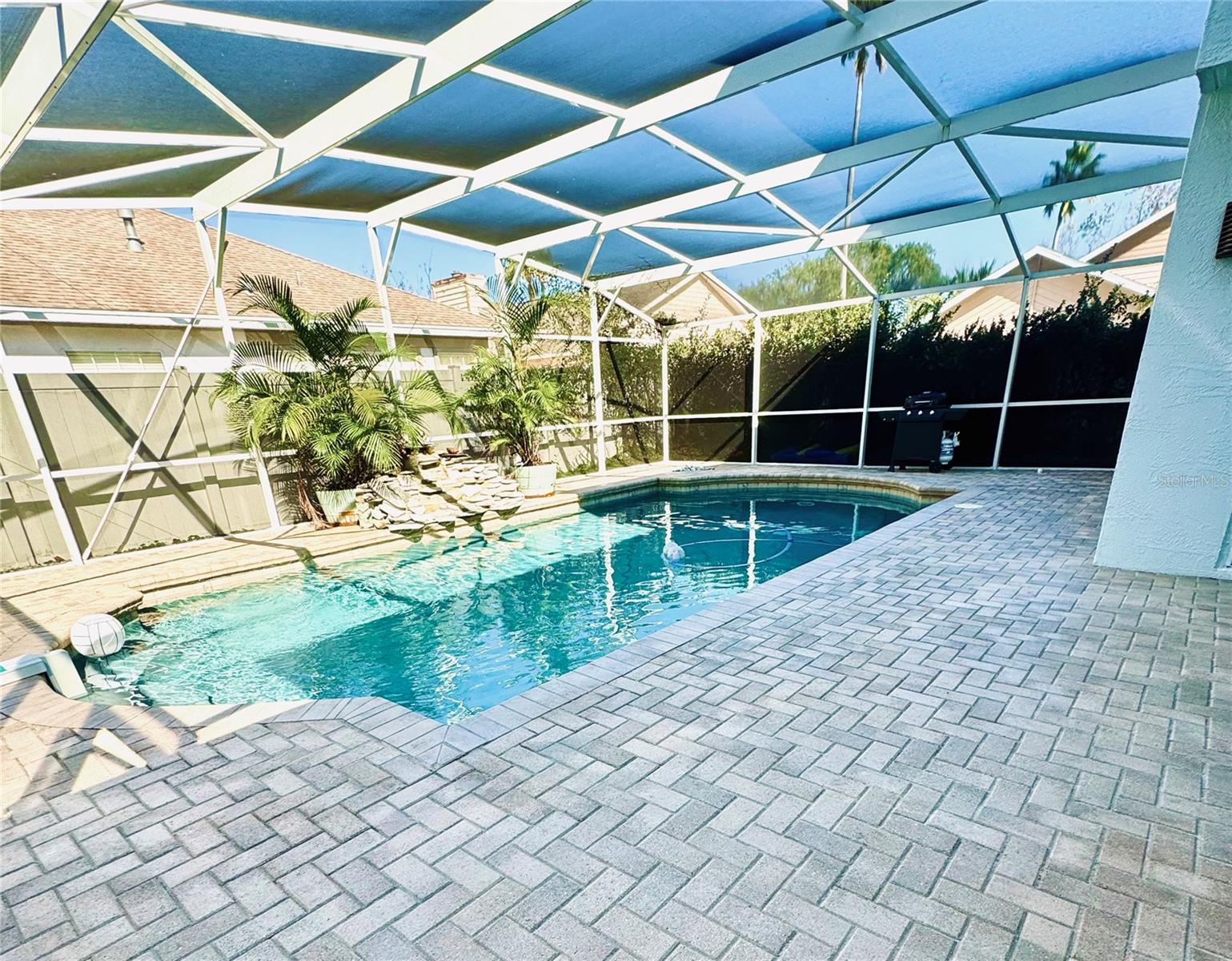 Welcome to this stunning custom built pool home in the exclusive gated Pelican Bay community This beautiful 3-bed, 2-bath home offers the perfect blend of style, comfort, and convenience. The spacious master suite, located upstairs, is filled with natural light and features an elegant spiral staircase leading up to your private retreat. The bright and open living space boasts gorgeous wood flooring and is complemented by three sliding doors that create a seamless transition to your outdoor oasis. Step outside to enjoy the sparkling saltwater pool, surrounded by a screened-in patio area with a serene waterfall feature, perfect for relaxing or entertaining guests. Inside, the home is elevated by soaring 17-foot cathedral ceilings, adding to the sense of openness and luxury. Located in a prime position within the community, this home is just minutes from the beach, shopping, and dining, and offers easy access to major highways. Enjoy the perks of living in a golf course community while being close to everything you need. Don't miss out on this one-of-a-kind custom-built home!