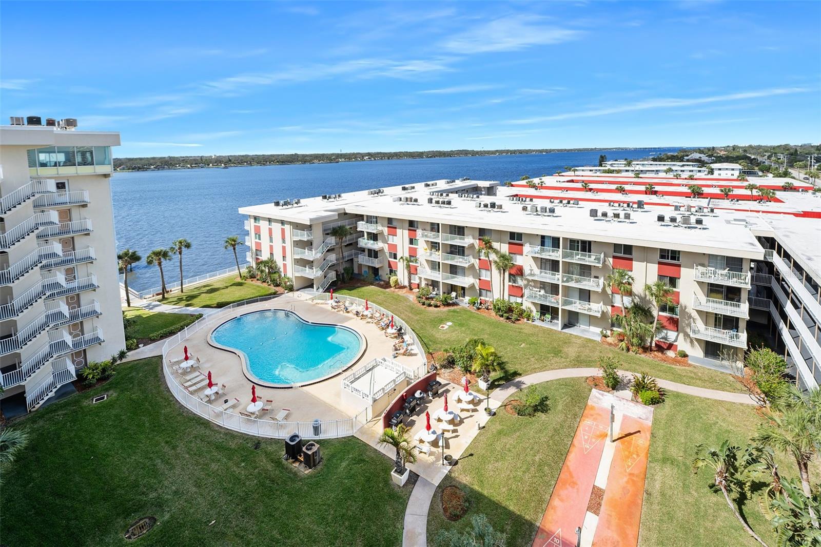 Great views and an abundance of natural lighting throughout this top floor unit. This 2 bedroom, 2 bath home is cozy, yet spacious with good sized bedrooms. The kitchen features a pass-through window to the living room to enhance social interaction. The bright, vibrant paint colors throughout create an inviting and cheerful atmosphere. Step outside onto the balcony to enjoy breathtaking views of the Intracoastal, the pool, the city, and the ocean in a distance. Whether it's sunrise or sunset, this serene spot will be your new favorite place to unwind. Furnishings are optional, giving you the flexibility to move right in or personalize the space as you see fit. Located in a desirable waterfront complex, this home is the ideal combination of comfort, style, and location. The building offers fishing docks, 3 pools, on-site laundry, a social room, barbecue grills, shuffleboard and more. Water, cable, internet, sewer, and trash are included in your dues