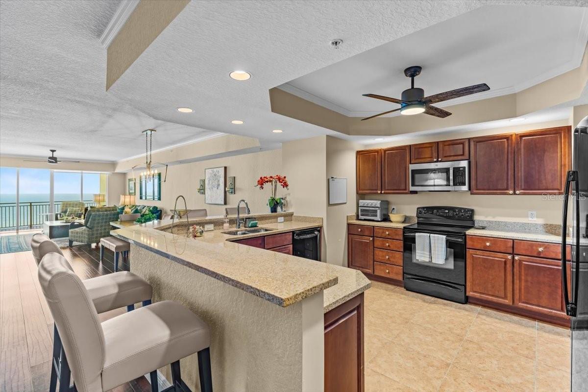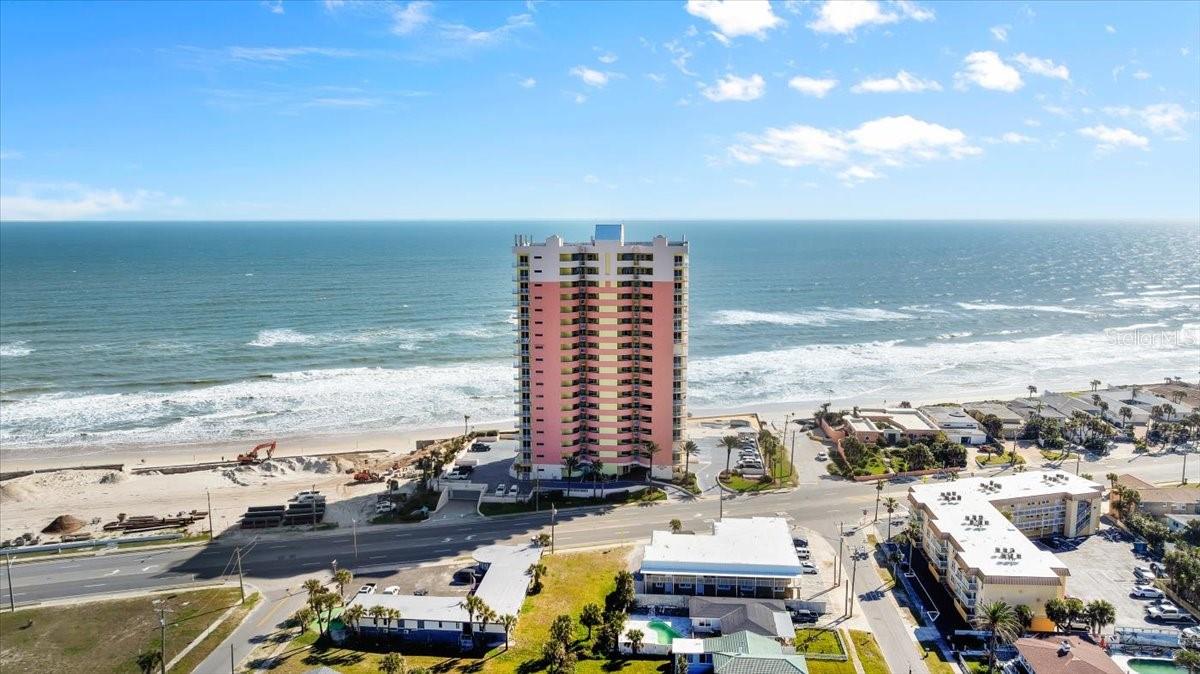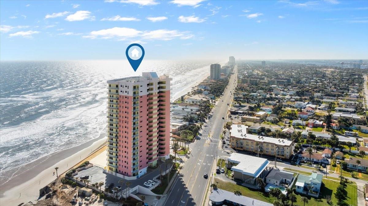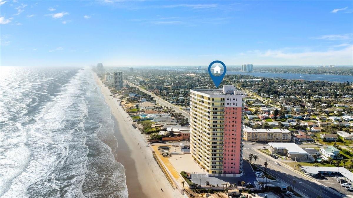 The Island Crowne is an iconic and beautifully unique condominium, providing impeccable views and beachfront ambiance on the shores of the Atlantic Ocean in beautiful Daytona Beach. From your front door overlooking the Halifax River and its amazing sunsets, step into this direct oceanfront unit, featuring stunning views from the 16th floor and offering excellent finishes and appointments for the best in luxury living. From your condo, you can watch incredible sunrises, rocket launches, fireworks, and many more displays of nature from above the streets of Daytona Beach and the beach below. From the private beach walkway, you can enjoy all the beach has to offer and the relaxation that comes with it. The condo's impressive entryway and 18' expansive living room contain a sliding glass door that allows outside beauty to come in. This condo features an expansive oceanfront balcony, large enough to accommodate chaise lounges, a sitting area, and a dining table, if desired, for all your entertaining needs. This home offers a generous 2,508 square feet of coastal living and quality design, including coffered ceilings, plank tile flooring, crown molding, a wet bar for entertaining, and large, expansive rooms offering comfort through the open floor plan. The unit features a 2022 AC and hot water heater, so the new owner will not have to address those items anytime soon. The large kitchen with granite counters overlooks the living and dining areas for ease of entertainment and family leisure time. The split bedroom floor plan offers maximum privacy, and the indoor laundry area provides incredible convenience. The primary bedroom has plenty of space for a King bed with dramatic ocean views, 2 large walk-in closets, and an ensuite bath with a jetted tub, walk-in shower, and double vanities. The two additional bedrooms are ensuite with private, adjoining bathrooms for comfort and convenience and also feature their own large closets. Both bedrooms have a beautiful view of the Halifax River. The home has also been thoughtfully outfitted with plantation shutters, new ceiling fans, and light fixtures. The owners at the Island Crowne experience maintenance-free living with beautiful, well-maintained amenities expected in a well-run condominium. Conveniences include indoor and outdoor heated swimming pools and spas, a recently renovated pool deck area, and an incredibly well-built and fortified seawall. Owners may use the oceanfront Crowne Room, which offers a full kitchen, for family gatherings, social events, or private functions, and they can also enjoy the use of a full gym and saunas. The Island Crowne also offers an oceanfront grill area and private beach access. This condo offers many storage options, including a pantry, several linen closets, hallway storage rooms, and a dedicated storage locker for storing your beach items or other household items. This condo is being sold fully furnished; furnishings and decor from such discriminating purveyors as Pottery Barn, Crate and Barrel, and Restoration Hardware will be conveyed upon sale.
