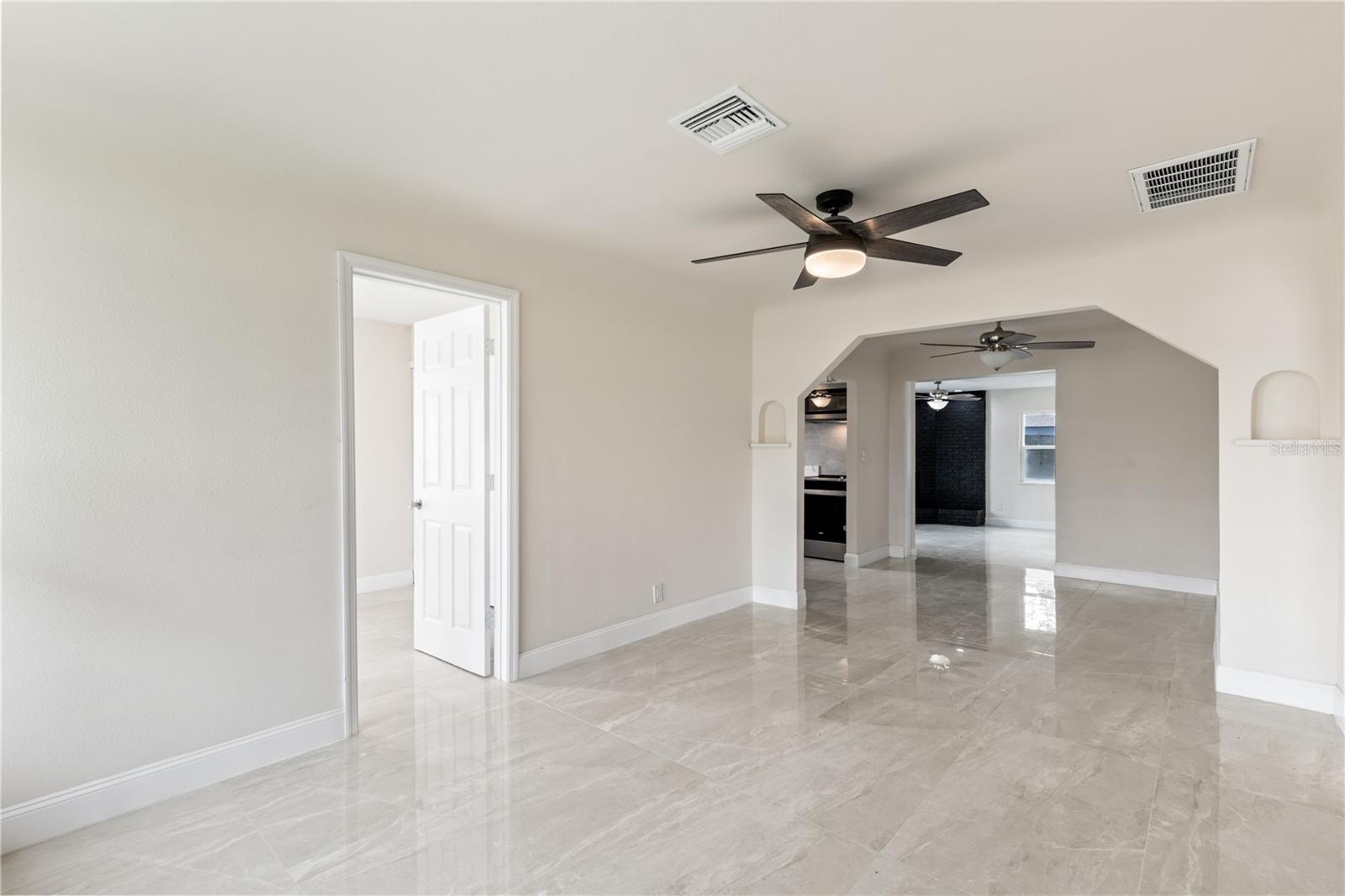Take a look at this FULLY RENOVATED 4 BEDROOMS, 2 BATH, W/ DETACHED 2 CAR GARAGE/WORKSHOP W/ ELECTRIC & WATER starter home located near the river! ELECTRIC AND WATER ALREADY HOOKED UP IN THE BACK GARAGE, ADD ANOTHER ROOM AND A MINI SPLIT! This home has brand NEW WINDOWS (2025), NEW AC UNIT(2025), NEW AIR DUCTS(2025), NEW HOT WATER HEATER(2025), NEW white shaker cabinets, NEW stainless-steel appliances, NEW Modern fixtures, Fresh interior paint, fresh exterior paint and NEW remote control ceiling fans! The beautiful 24 x48 Satori tile throughout not only brings beauty and joy but also keeps the air cool and reduces electricity bills. Elight and protect you from dampness and dirt, as they are completely tiled! Your opportunities are endless here! This inviting property is perfect for first-time homebuyers. As you step inside, you'll be greeted by a spacious, split bedroom floor plan and light-filled living area, ideal for both relaxation and entertaining. The open floor plan seamlessly connects the living room to the kitchen, creating a warm and welcoming atmosphere. The kitchen is equipped with modern appliances and ample counter space, making meal preparation a breeze. The 2-car garage can be used as a workshop or add an office or additional space for visitors and so much more. Each of the four bedrooms offers comfortable living spaces, with the master bedroom featuring an en-suite bathroom for added convenience and privacy including a huge walk-in closet . Build an office or an in-law suite and make more room for the family! Outside, the backyard provides a lovely space for outdoor gatherings, gardening, or simply enjoying the Florida sunshine, whether you're hosting a barbecue or simply unwinding after a long day. The property also includes a spacious carport and parking for a boat or an RV. Don't miss the opportunity to make this beautifully renovated home your own schedule a showing today and experience the perfect blend of modern living and coastal charm in Holly Hill! All information taken from the tax record, and while deemed reliable, cannot be guaranteed.