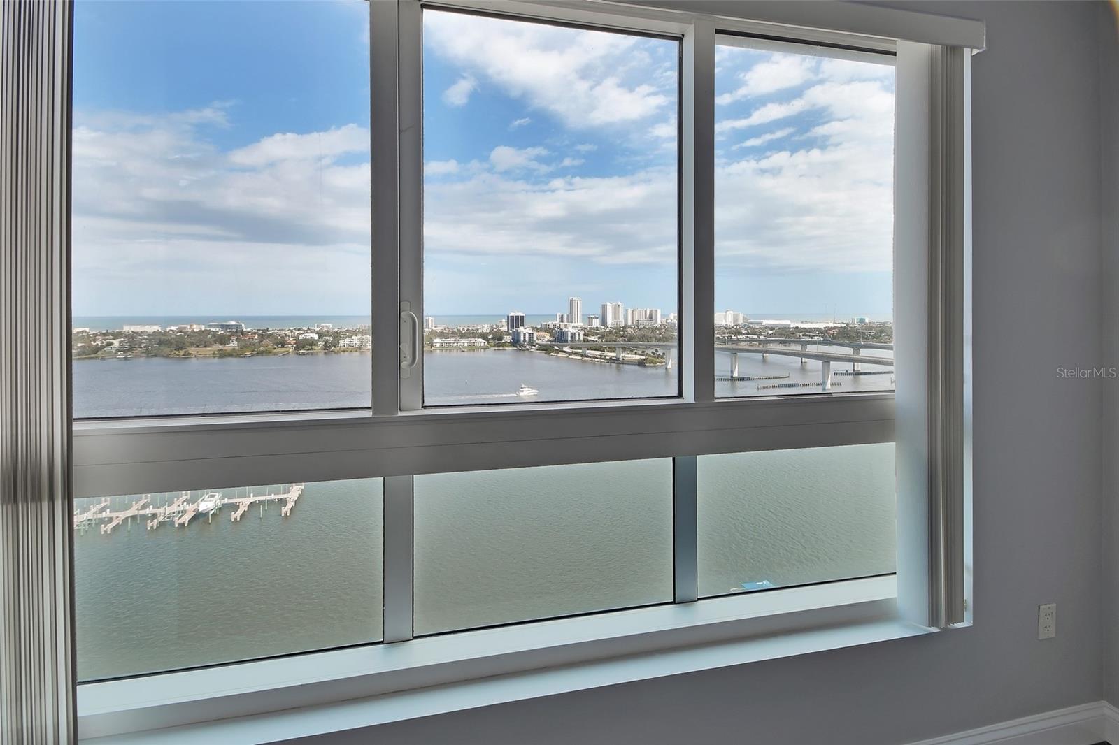 Wait til you see this rarely offered 18th floor condo with 3 bedrooms and 3 bathrooms!A beautiful corner unit with a massive amount of natural light coming through the 9 ft. sliders and windows with the biggest views of the Halifax River & the Atlantic Ocean for your enjoyment. Italian cabinets and stainless appliances are in the kitchen with striking black granite counters for cooking with a view! Open concept living, dining and kitchen opens up to a large balcony overlooking the river and ocean, just made for dolphin sightings, evening cocktails & morning coffee watching the boat traffic! Large master bedroom with large walk in closet and luxurious bathroom with his and her sinks, jetted tub and extra large shower, all surrounded with beautiful travertine tile. Outstanding amenities include guard gate, concierge, 2 riverfront pools, large gym overlooking the pool and river, sauna, private theater, ballroom, game and card rooms, library and yoga room, The elegant lifestyle awaits!