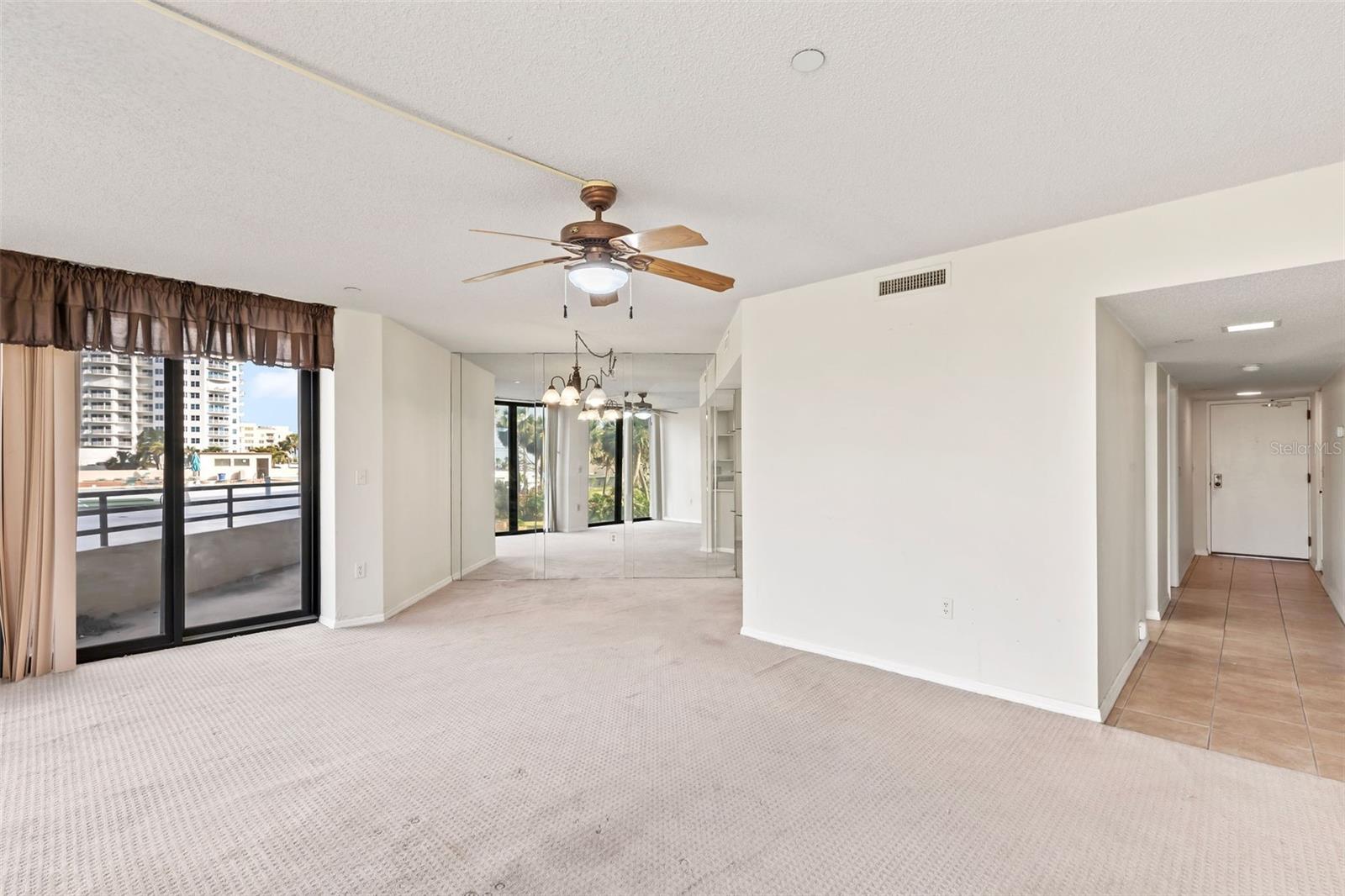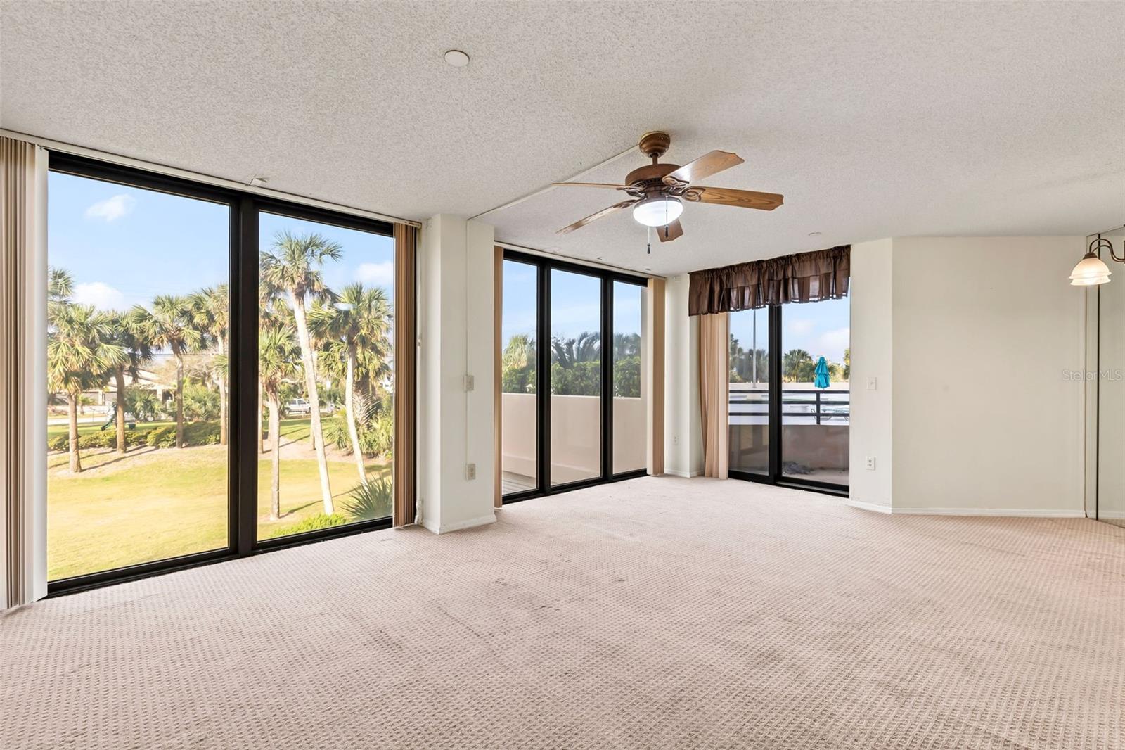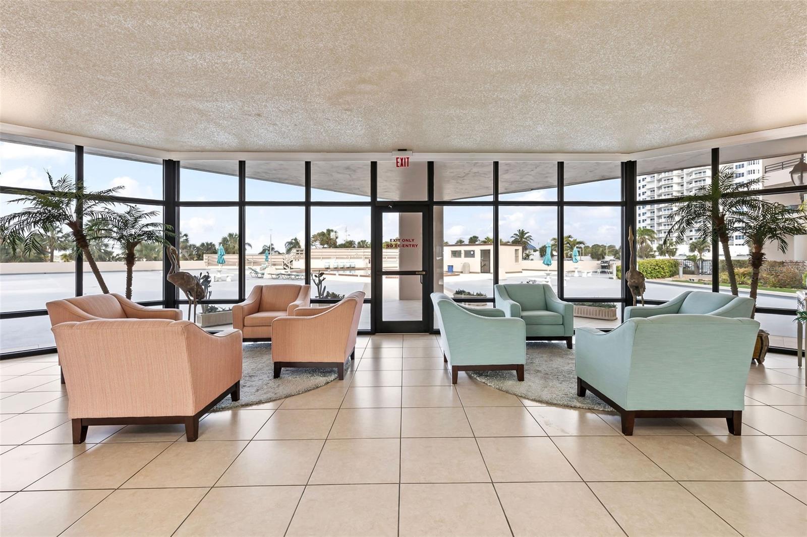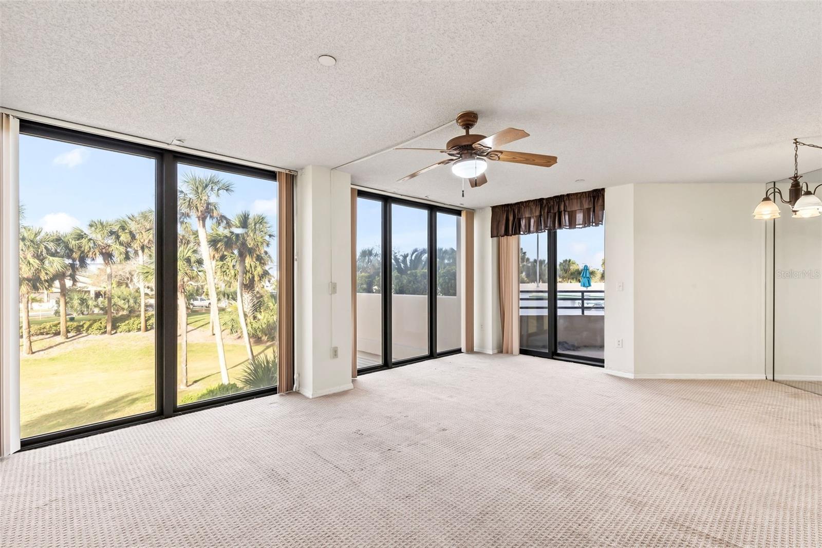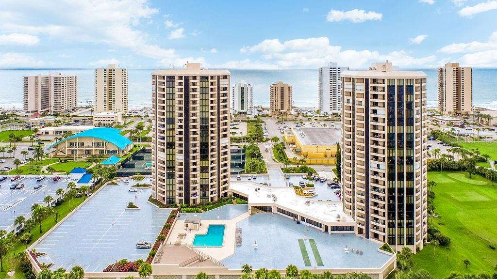 Welcome to this amazing 2-bedroom, 2-bath split floor plan condo located in the serene setting of Daytona Beach Shores. This unit is the largest 2 bedroom floor plan in the building with balconies off each bedrooms. This beautifully appointed residence offers an exceptional lifestyle with breathtaking views of the golf course and the intercoastal from your floor to ceiling windows. This unit is conveniently located on the lobby floor close to the elevator to access the under ground garage. As you enter the condo, you are greeted by an open and airy living space that seamlessly blends comfort and style. The spacious living room features large windows that gives the area natural light, allowing you to enjoy the picturesque scenery from the comfort of your home. The spacious kitchen is equipped with black appliances and ample counter space making it ideal for both casual dining and entertaining guests. The two well-sized bedrooms offer a peaceful retreat, with the master suite boasting its own ensuite bathroom and 2 closets, one huge walk in closet with built in. Step outside onto the private balcony, where you can unwind while taking in the stunning views of the golf course and peek of boo views of the intercoastal. This outdoor space is perfect for enjoying morning coffee or evening sunsets. Additional features of this condo include ample storage, and access to community amenities such as a large heated pool, fitness center, under ground parking, beautiful grounds, library, saunas and the 15 HOLE Golf course. Don't miss the opportunity to own this exquisite condo in Daytona Beach Shores, where luxury meets nature, and every day feels like a vacation!
