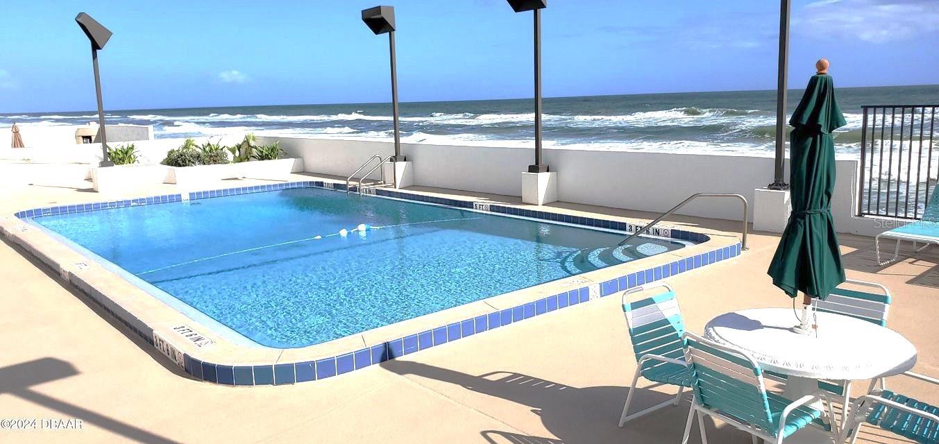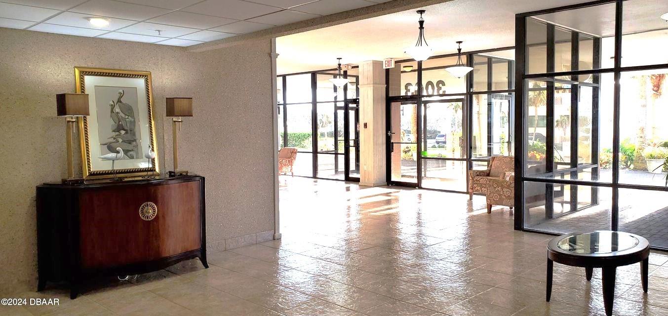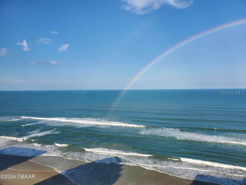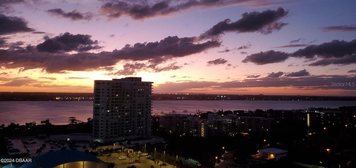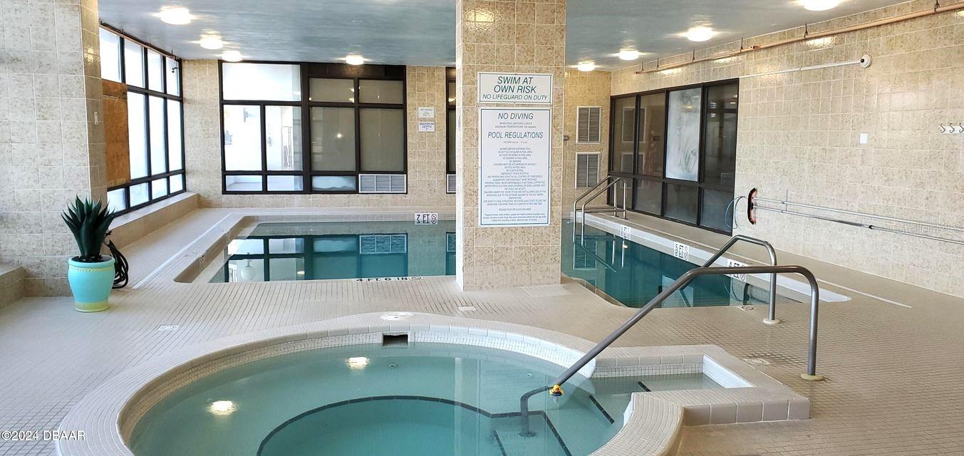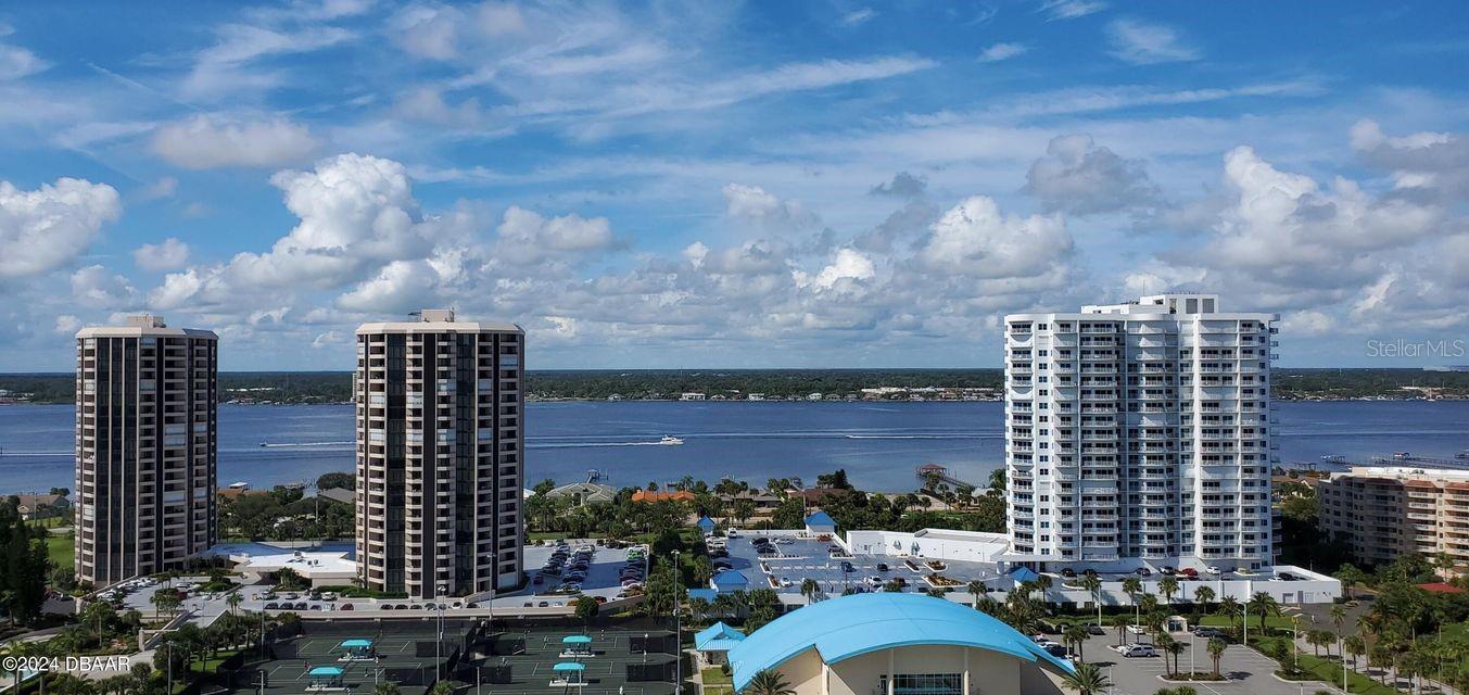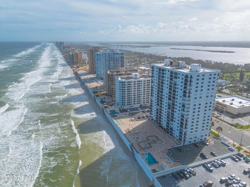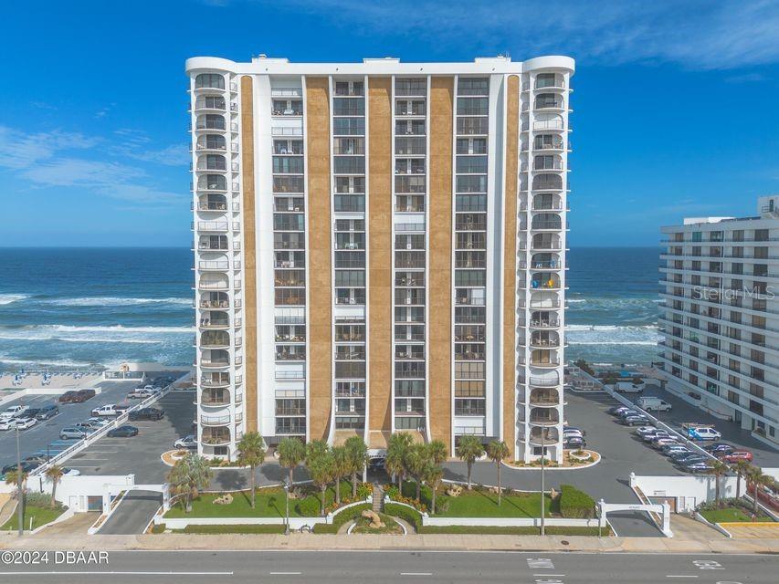 BEACHFRONT - Oceans Four - Daytona Beach Shores - Luxury, Amenities & Water Views!! Enjoy 19 th Floor panoramic Atlantic Ocean AND Halifax River. views from interior rooms and 2 large covered porches. Enjoy watching manatees and dolphins play in the surf. As well as beaching, walk to community center, golf, tennis, pickleball, Publix & Walgreens. This unusual condo building has it ALL. Indoor heated pool, spa, 2 saunas, gym, library, pool table, social room with kitchen, outdoor pool, BBQ area, shuffleboard & direct stairs down to beach. Secure under-building assigned parking space & storage closet. A 2 nd parking spot under building is currently available to rent. Meticulously kept unit has matching tile floors throughout (no carpet), newer appliances including a full-size washer & dryer, disposal & faucets, A/C and brand new water heater. Rooms feature crown molding, tall baseboards & updated doors. All rooms are extra-large. Solid surface countertops, wood cabinets with built-in pantry, roll-out shelving under cooktop. Master Bedroom has 2 very large walk-in closets and a linen closet, Guest Bedroom has 1 large walk-in closet and hallway has a storage closet. New lights, mirrors & fan. This unit has electric roll-down metal hurricane shutters as well as heavy duty hurricane windows & sliders - for double storm coverage. Semi-private elevator lobby for this 19 th floor unit - only one other unit shares. Exterior of building is in process of being painted, caulked & waterproofed. Lobby is in process of being updated. Condo Fees includes internet & cable, building insurance, reserves & typical association expenses - Condo staff includes an on-site manager and 3 full-time maintenance personal. Seller would like to negotiate a leaseback for a short time.