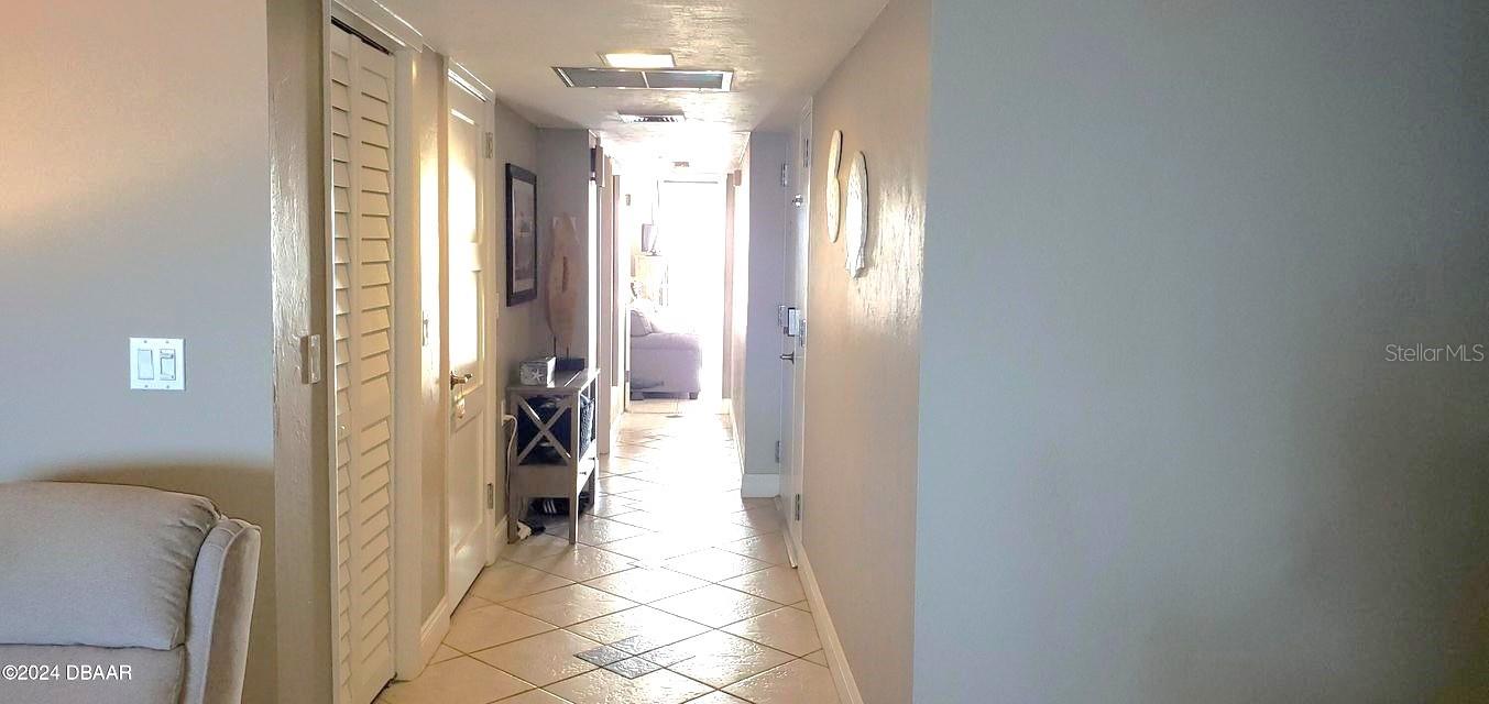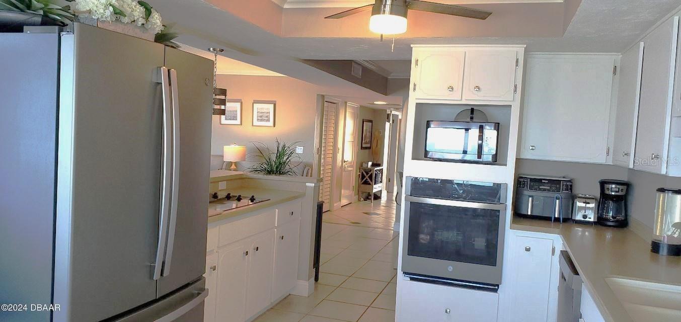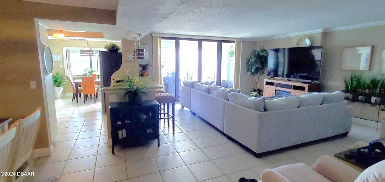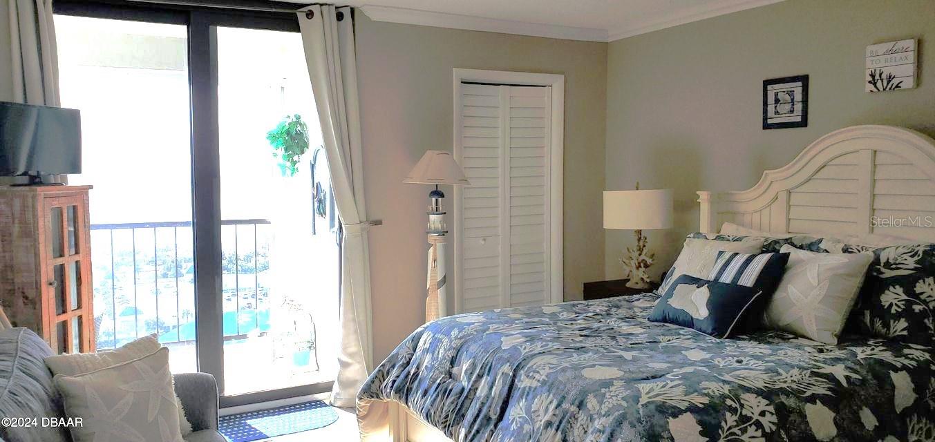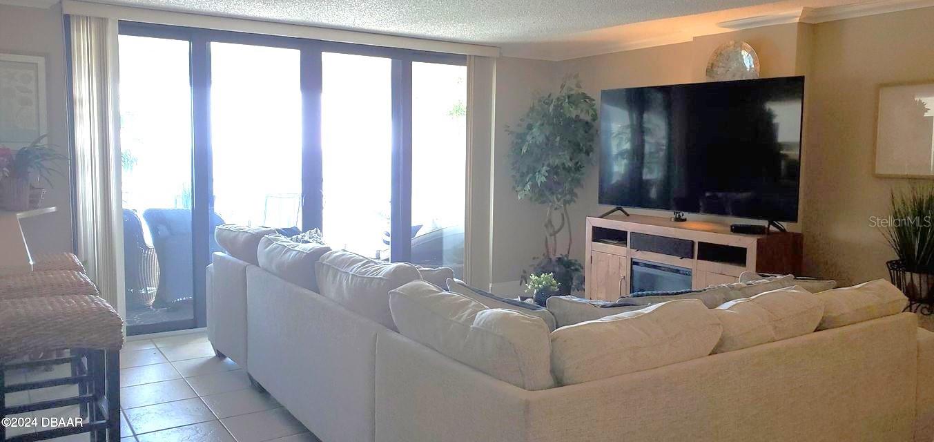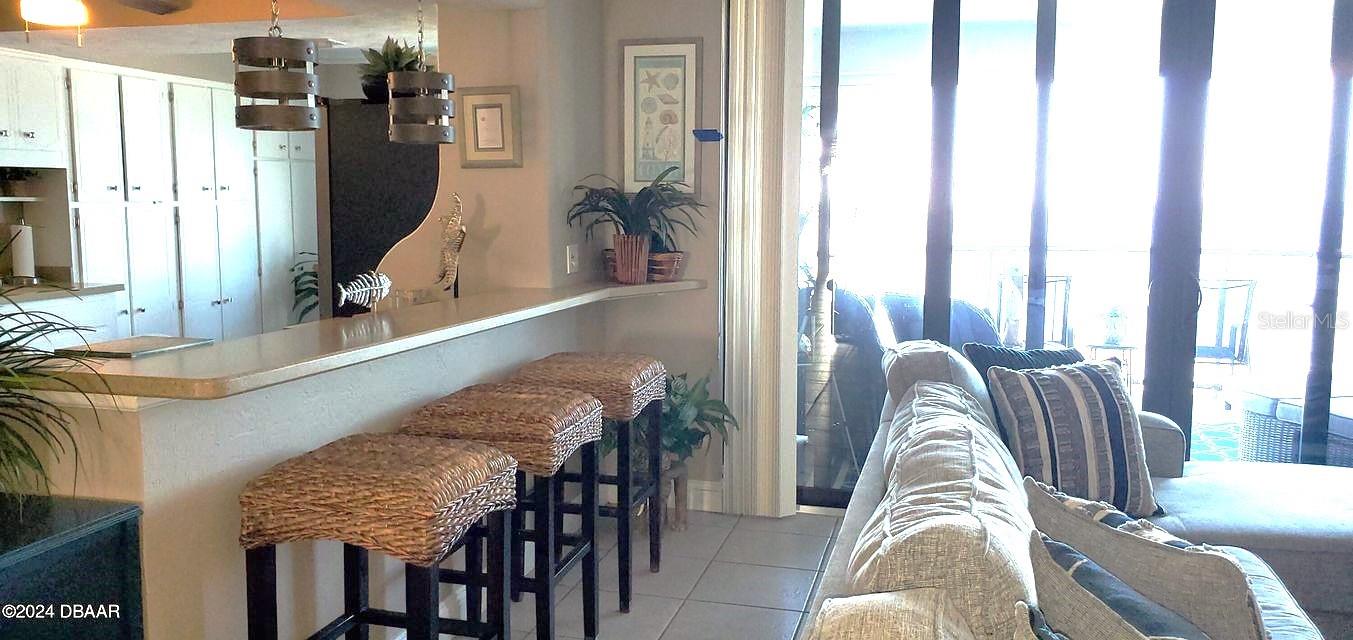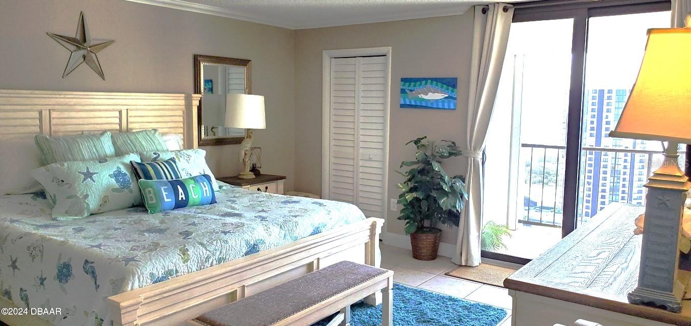 BEACHFRONT - Oceans Four - Daytona Beach Shores - Luxury, Amenities & Water Views!! Enjoy 19 th Floor panoramic Atlantic Ocean AND Halifax River. views from interior rooms and 2 large covered porches. Enjoy watching manatees and dolphins play in the surf. As well as beaching, walk to community center, golf, tennis, pickleball, Publix & Walgreens. This unusual condo building has it ALL. Indoor heated pool, spa, 2 saunas, gym, library, pool table, social room with kitchen, outdoor pool, BBQ area, shuffleboard & direct stairs down to beach. Secure under-building assigned parking space & storage closet. A 2 nd parking spot under building is currently available to rent. Meticulously kept unit has matching tile floors throughout (no carpet), newer appliances including a full-size washer & dryer, disposal & faucets, A/C and brand new water heater. Rooms feature crown molding, tall baseboards & updated doors. All rooms are extra-large. Solid surface countertops, wood cabinets with built-in pantry, roll-out shelving under cooktop. Master Bedroom has 2 very large walk-in closets and a linen closet, Guest Bedroom has 1 large walk-in closet and hallway has a storage closet. New lights, mirrors & fan. This unit has electric roll-down metal hurricane shutters as well as heavy duty hurricane windows & sliders - for double storm coverage. Semi-private elevator lobby for this 19 th floor unit - only one other unit shares. Exterior of building is in process of being painted, caulked & waterproofed. Lobby is in process of being updated. Condo Fees includes internet & cable, building insurance, reserves & typical association expenses - Condo staff includes an on-site manager and 3 full-time maintenance personal. Seller would like to negotiate a leaseback for a short time.