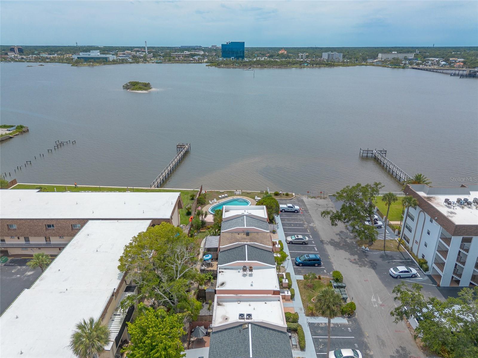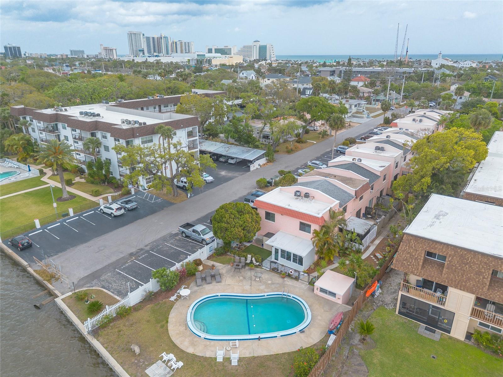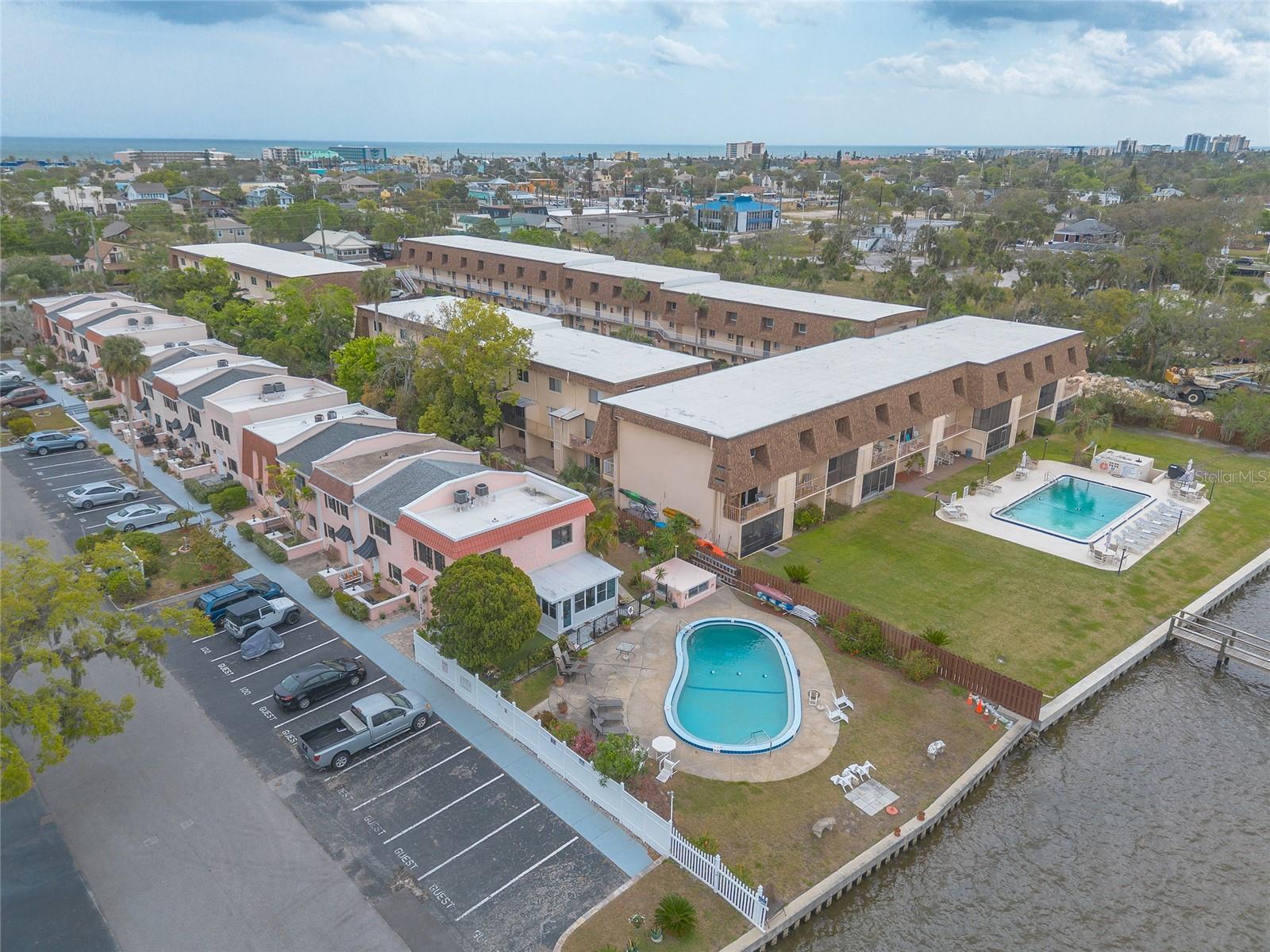 A Unique Fine! Charming Beachside Townhouse on the Intra-coastal Waterway! Discover the perfect blend of coastal living and European charm in this updated end-unit townhouse! Nestled in a quaint 15-unit complex, this two-story home is ideally located on a quiet dead-end street, steps from the Halifax River and just a short stroll to the beach. When you step inside you will find a thoughtfully remodeled interior featuring an updated kitchen with a breakfast bar, a dining area, and an inviting living room that opens to a private fenced patio—perfect for relaxing or entertaining. There is also a convenient half bath, and a laundry closet on the main floor. Upstairs, you’ll find two generously sized bedrooms and a stylishly updated main bathroom. As you soak up the Florida sunshine at the sparkling pool you can enjoy breath taking panoramic views of the Halifax River while watching boats glide by and dolphins play. Plus, with easy access to Beach Street, the Boardwalk, Main Street, and the Peabody Auditorium, you’ll be right in the heart of Daytona’s vibrant scene. Don’t miss this rare opportunity to own a slice of paradise! This home has never flooded and the HOA fee is super reasonable! Schedule your private tour today! There are no warranties expressed or implied. All measurements are approximate. Square footage received from tax rolls. All information recorded in the MLS intended to be accurate but cannot be guaranteed. Buyers should check complex and city zoning for rental restrictions.