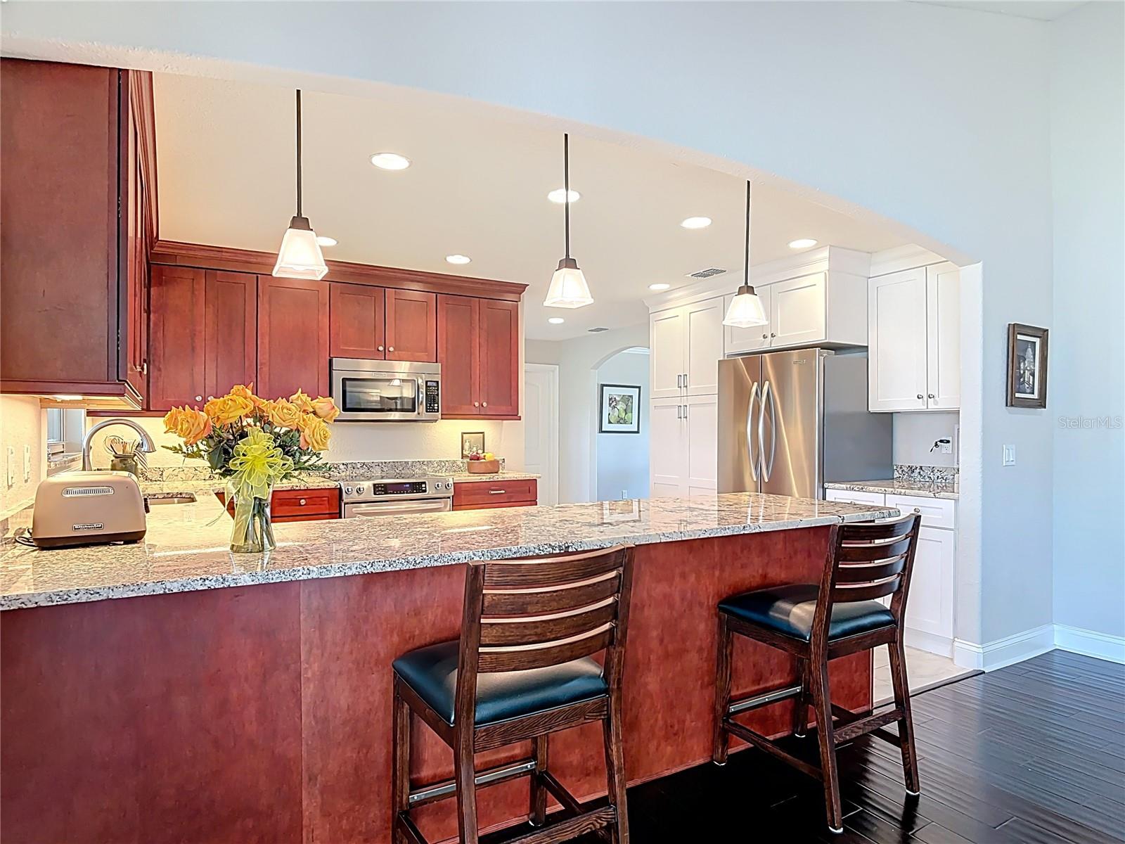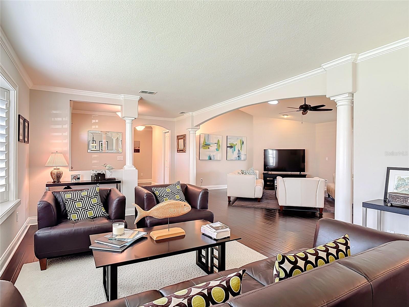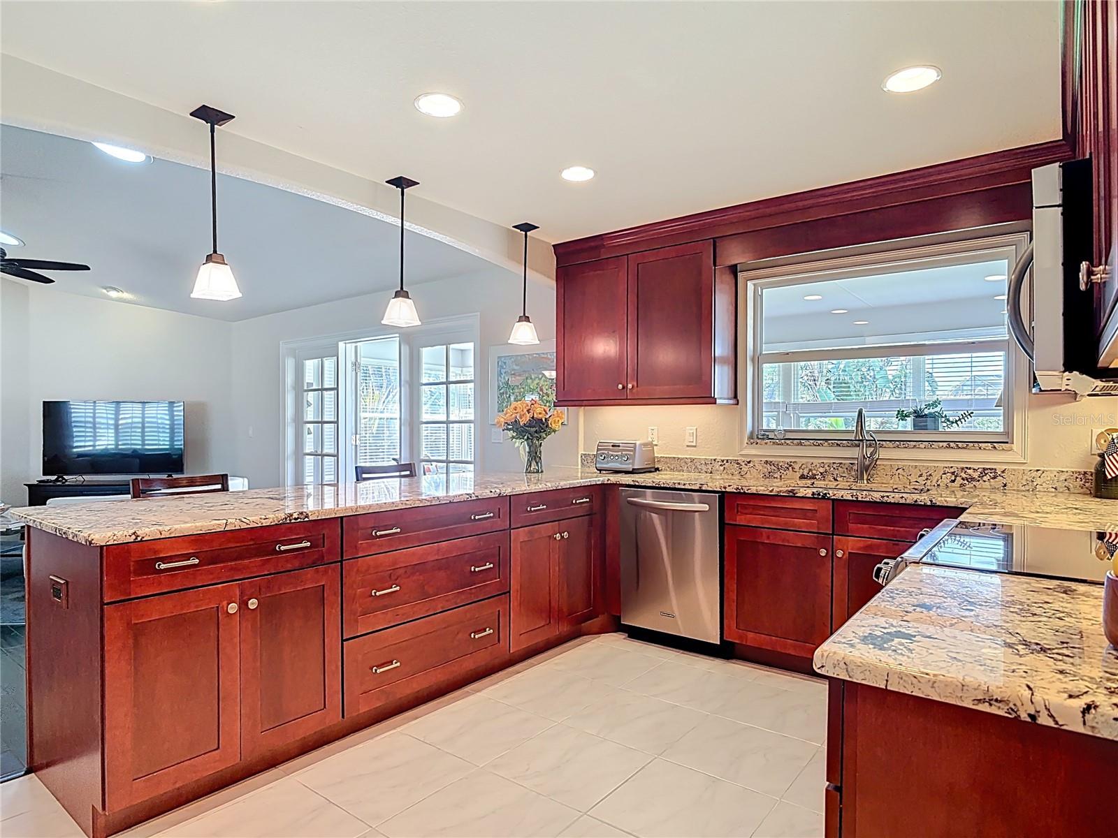 ''BEAUTIFUL, renovated home in Pelican Bay's Gated Community." Sun-filled, spacious, move -in ready! One floor living: engineered hardwood floors. Custom plantation shutters. Open floor plan. Private office with water views! Gourmet kitchen with Granite counter tops and plenty of cabinets, overlooks family room with water views! Possible to have 2 Master suites, with guest bathroom, that has entry for guests w/ pocket door from guest bedroom, granite counters lots of cabinets & large- tiled shower, guest bedroom has walk-in closet. Master bedroom with striking views of the water, walk-in closet, en-suite bathroom, Granite counters, and plenty of storage. To entertain even more, Air & Heated 25x10 Sunroom with water views, watch the wildlife in this serene setting. Oversized 2 car garage, with electric screen. EXTRA 20x13 paver patio for the grill. Roof 2018, Air & Heat 2017 under warranty till 2027. Water heater 2024, Large stackable washer and dryer-2021. NEWER WINDOWS through-out with exception of Sunroom. Close to Shopping, Embry-Riddle, Beaches and International Speedway. Seller would like to work with prospective buyers on closing date. $900 yearly only 1 HOA fee that covers the 24 guarded gate and common grounds. This home is quality living in Florida!