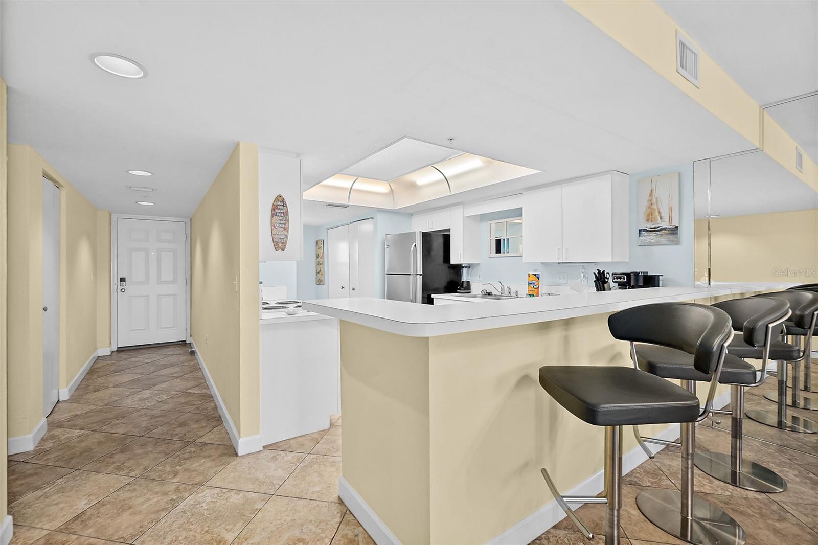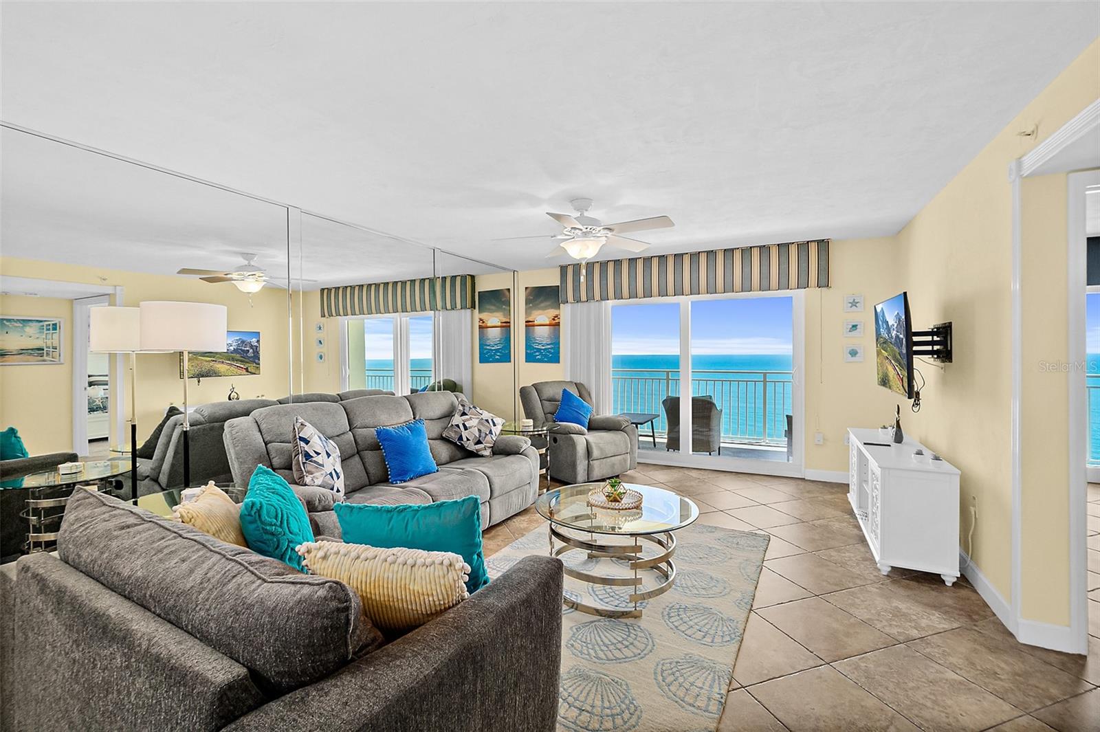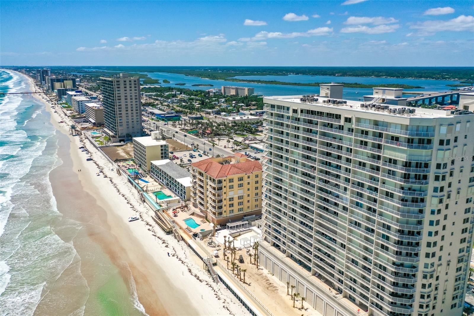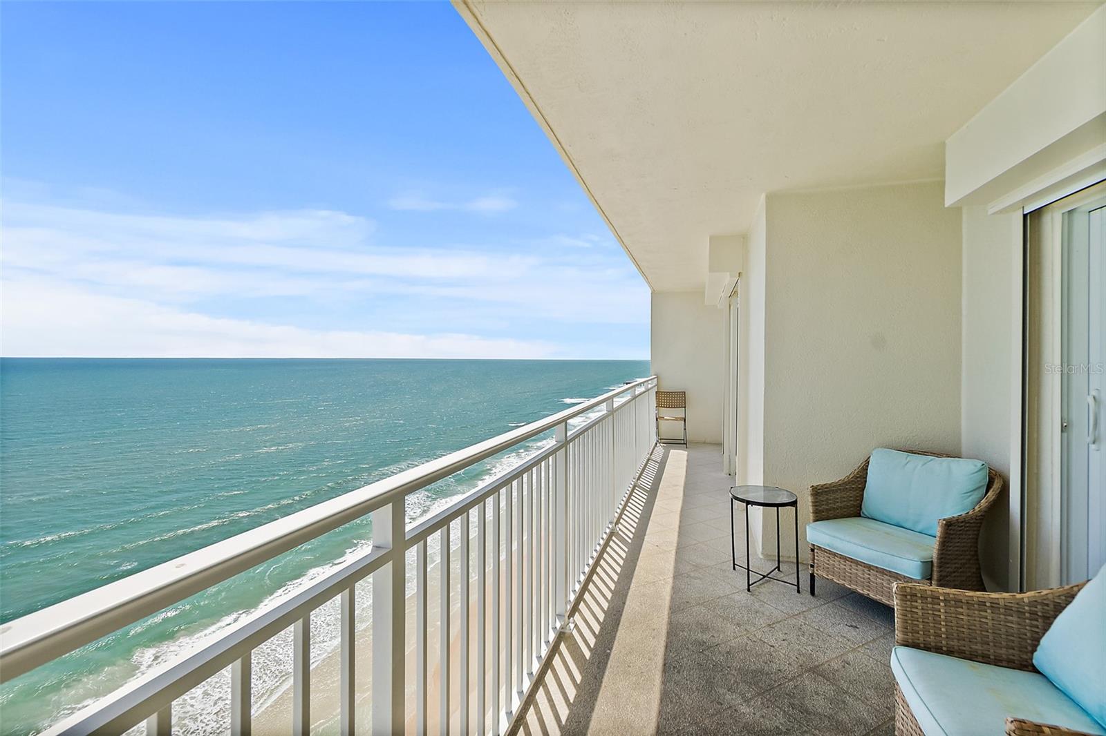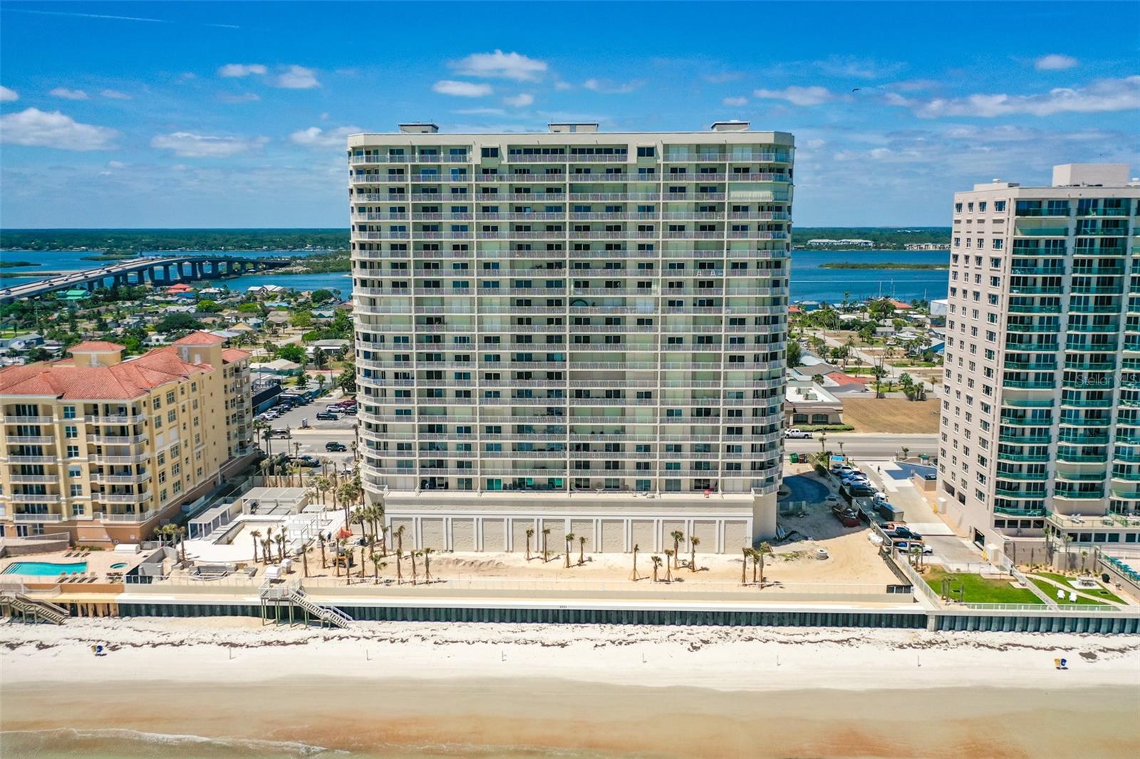 Your carefree beach lifestyle awaits at this DIRECT OCEANFRONT unit with breathtaking high rise ocean and river views from the 22nd floor! This spacious 2 bedroom 2 bath unit features a fantastic open concept layout with large living and dining areas offering incredible ocean views and access to a large private oceanfront balcony. The unit includes a well equipped kitchen offering ample cabinet and counter space. The large oceanfront master suite boasts sliding door access to the balcony, a private ensuite bathroom with linen closet, and large walk-in closet with vanity. There's also a spacious guest bedroom, an updated full guest bath, and in-unit laundry. Loved by year-round residents, snowbirds, and vacation rental investors alike, the Grand Coquina condo community boasts unbeatable resort style amenities like sparkling indoor & outdoor pools, hot tub, fitness centers, private garage parking for owners, and a Penthouse Club room equipped with dance floor, bar, TV, and kitchen. Pet and investor friendly HOA policies here allow for up to 2 pets under 30 lbs and 2 week minimum rentals. It's time to make your beach dreams a reality! Schedule your showing today.