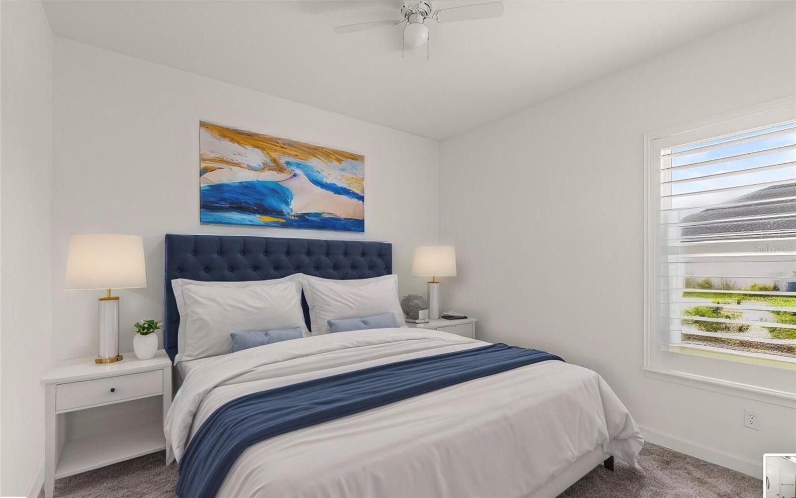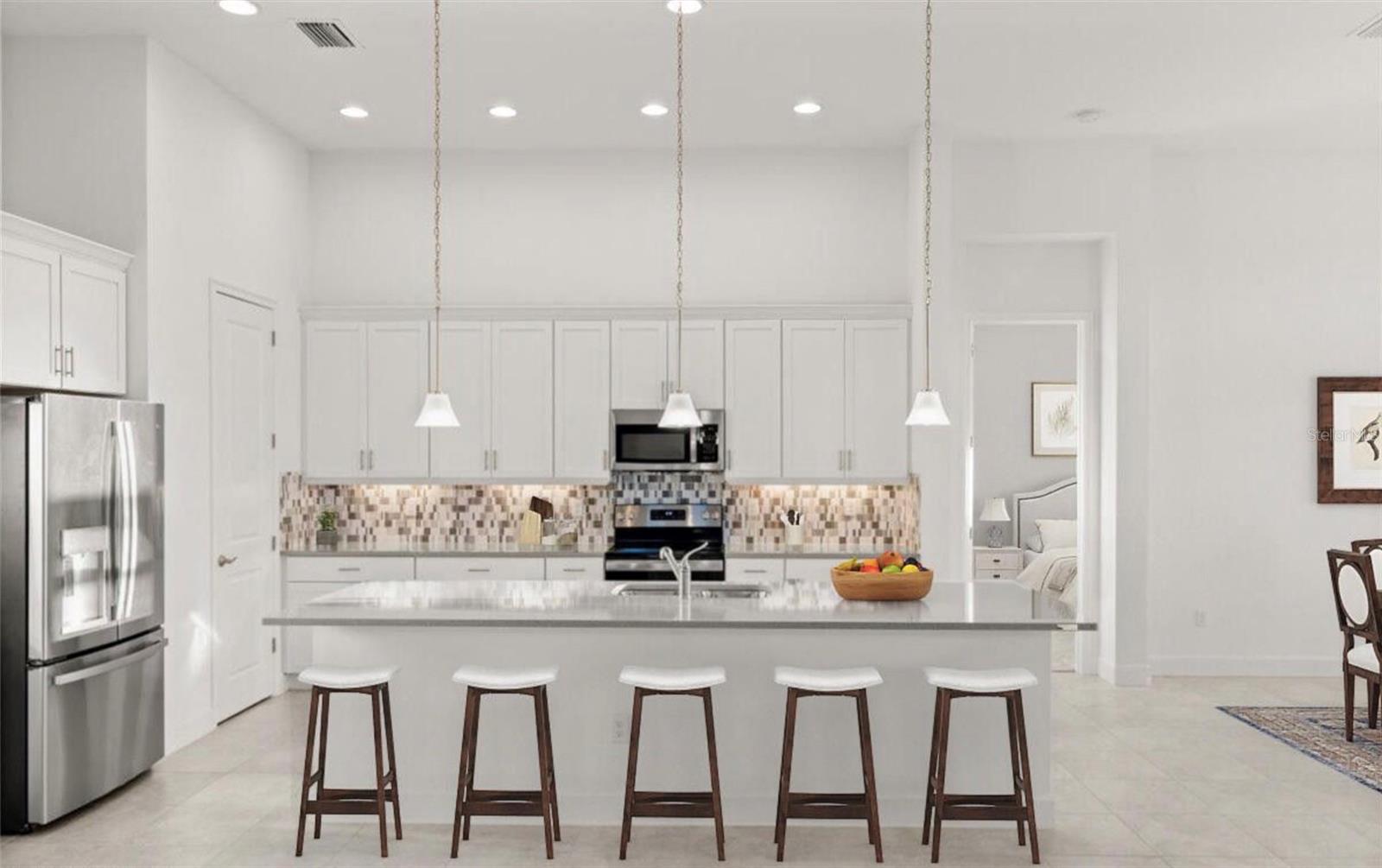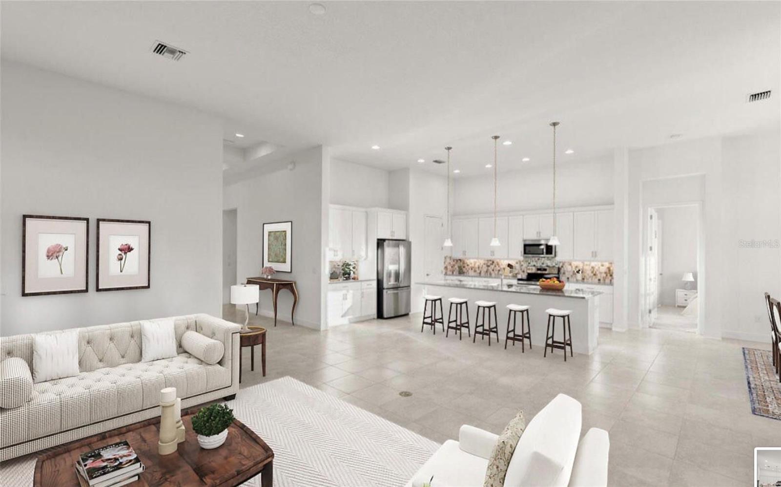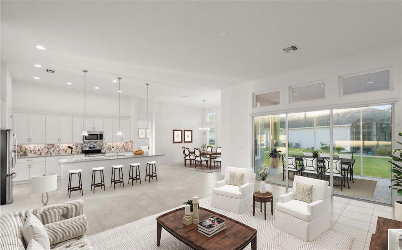 his spacious, MOVE-IN READY home offers nearly 2,600 square feet of living space, featuring 4 bedrooms, 3 bathrooms, and a 3-car garage. Nestled in the highly sought-after community of Mosaic, west of I-95 in Daytona Beach, this home provides both style and functionality in an ideal location. The open layout, with 12-foot ceilings in the main spaces, seamlessly connects the living room, kitchen, and dining area, creating the perfect space for family time. The kitchen features a large island, quartz countertops, 42'' cabinets, soft-close drawers, and plenty of workspace for all your needs. Sliding glass doors lead out to the covered lanai, which includes a summer kitchen rough-in for a sink, grill, and refrigerator, ready for you to customize to your style. Electric blinds enhance comfort in the living room, and plantation shutters throughout provide both style and privacy. Tile flooring runs throughout the main living spaces, and tray ceilings at the foyer to add a touch of sophistication. Three bedrooms and two bathrooms are located at the front of the home, including one bedroom with an ensuite bathroom for added privacy. The master suite is privately set at the rear and features a large walk-in closet, dual vanities, and an over-sized walk-in shower. This energy-efficient home includes a hybrid hot water heater, Low-E double-pane windows, and Energy Star appliances, all protected by a 2-10 warranty, epitomizing modern comfort and reliability. Residents of Mosaic enjoy access to numerous amenities, including two resort-style pools, a state-of-the-art fitness center, a band shell, a gas fire pit, and a full-time lifestyle coordinator, making this community fun for all. Welcome home! Please note that some photos have been virtually staged to illustrate the home's potential. Square footage received from tax rolls. All information recorded in the MLS intended to be accurate but cannot be guaranteed.