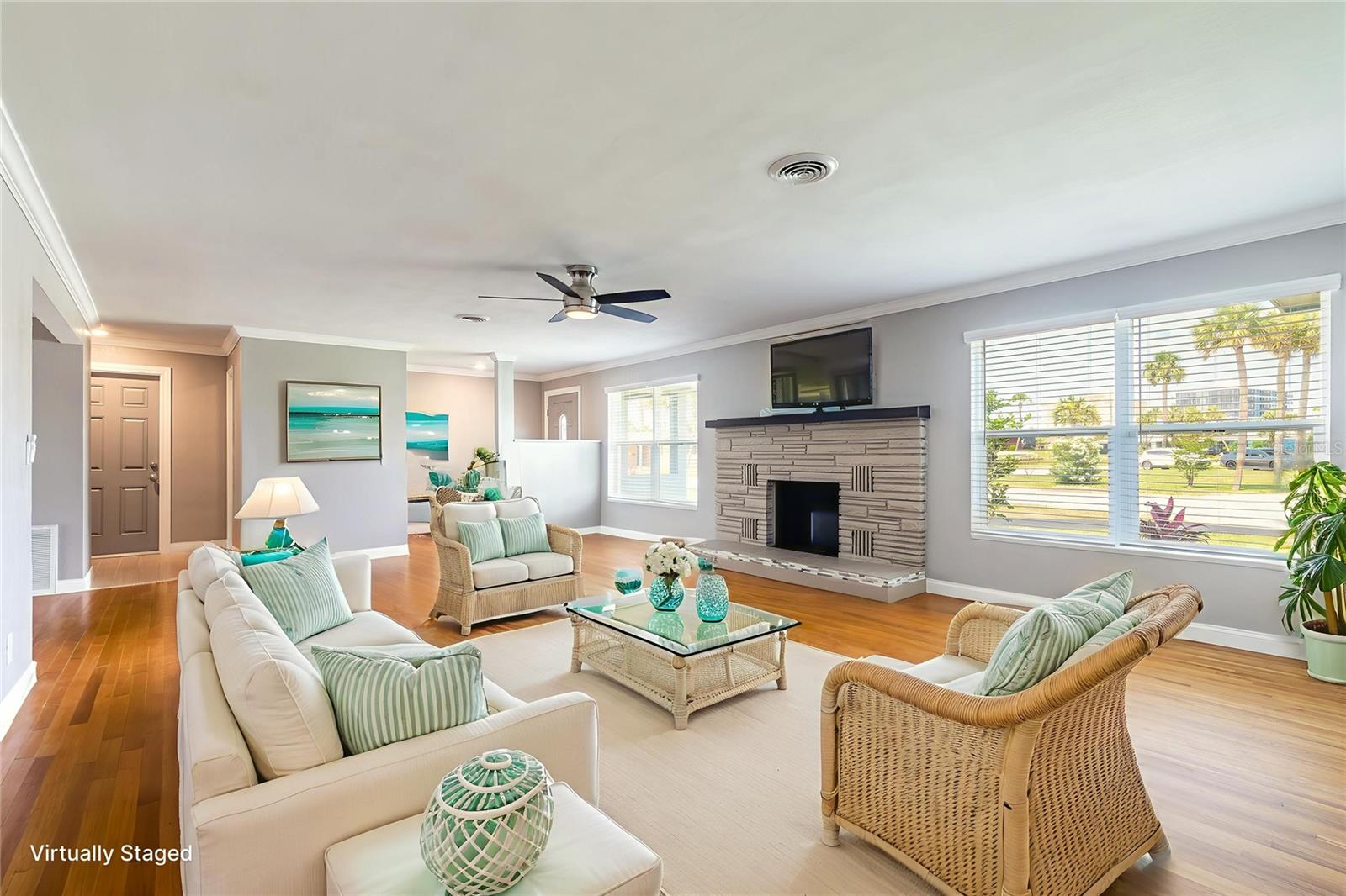 One or more photo(s) has been virtually staged. Discover the perfect blend of style, coastal charm and great living space in this turnkey sprawling beachside ranch located just two blocks from the beautiful shoreline. Set on a .33-acre fenced corner lot, this expansive 4-bedroom, 2.5-bath home offers 2,450 sq ft of well-designed living space along with a yard that has room to add a pool. As soon you enter the home you will be impressed by the spotless gleaming real oak hardwood floors that run throughout the entire home, highlighting its warmth and timeless appeal. The large living room features a well-appointed fireplace that adds to the home’s charm. This room flows seamlessly into the dining room which is openly connected to the beautifully remodeled kitchen which has extensive cabinetry, granite countertops and stainless appliances. These rooms then connect with the Florida room which overlooks the backyard. Owning a beachside home with an oversized primary suite like this one is like a dream come true. This suite has a big bedroom boasting plenty of natural light, three large closets and a pristine private bath. The other bedrooms are also very generously sized, and the updated guest bath continues the home’s polished, move-in-ready feel. Additional features include a super clean, deep oversized two-car garage with plenty of storage, numerous utility upgrades, fresh paint inside and out, a well-kept classic tile roof, and professional landscaping that gives the home a beautiful curb appeal. With its pristine condition, unbeatable beachside location, large lot, impressive square footage, and sprawling rooms, this home surely is a rare find. You really must see it to appreciate all it has to offer! - Come See for Yourself – You are sure to be impressed. Schedule your showing today. There are no warranties expressed or implied. All measurements are approximate. Square footage received from tax rolls. All information recorded in the MLS intended to be accurate but cannot be guaranteed. Buyers should check city zoning for rental restrictions.