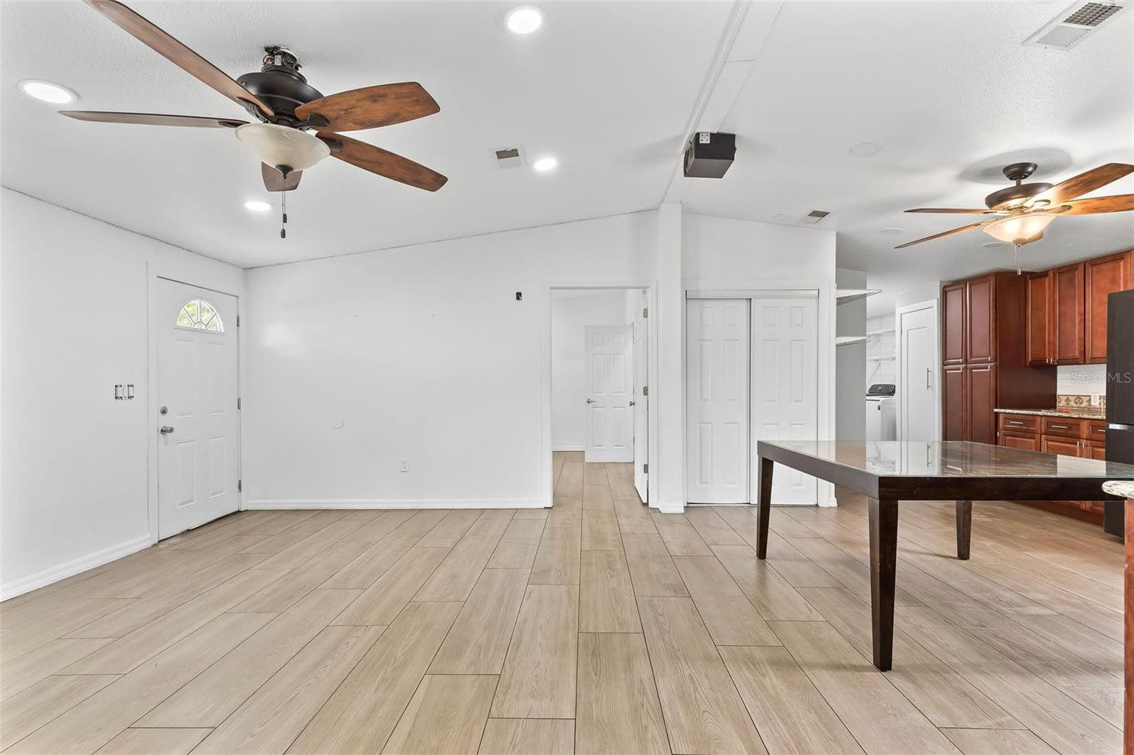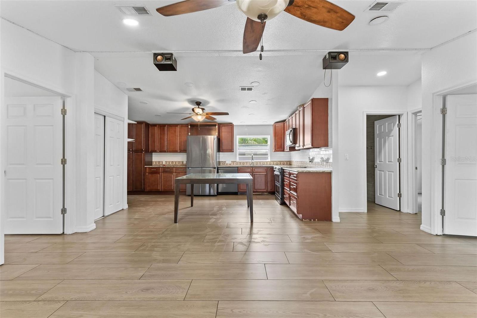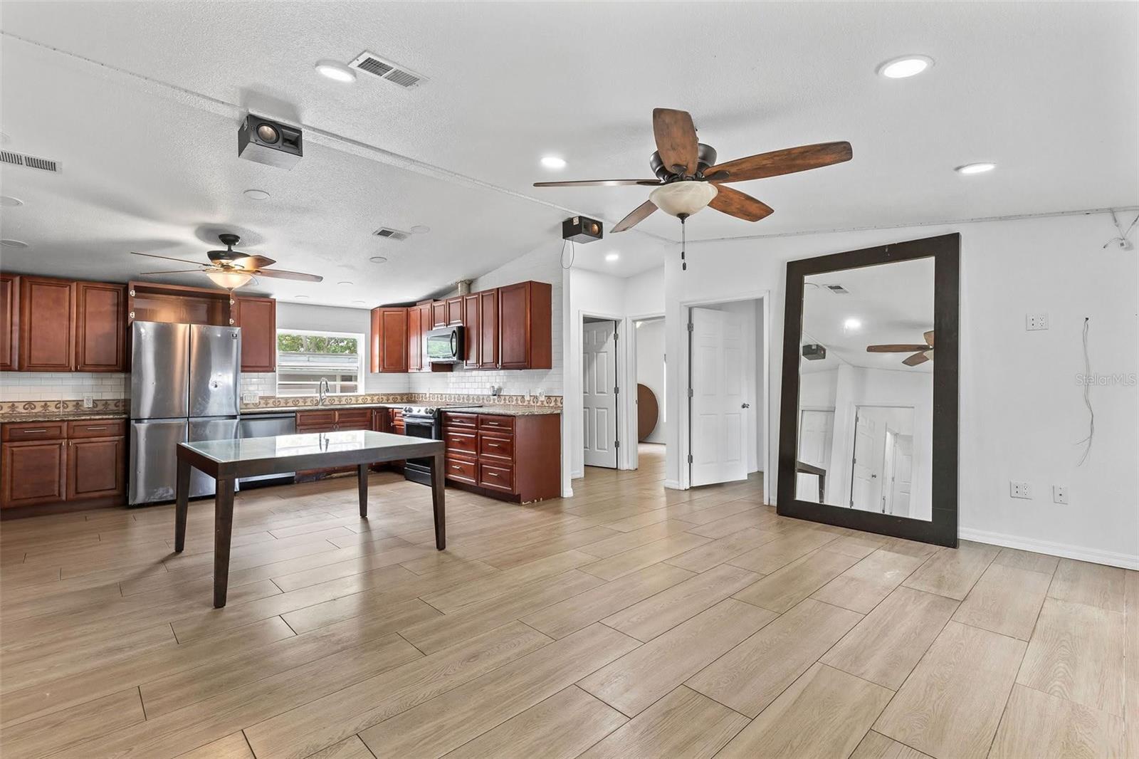 TERRIFIC VALUE! This spacious 3-bedroom, 2-bath home, built in 2002, offers an abundance of features and upgrades, making it an exceptional find. With no lot rent and no HOA, it provides freedom and affordability rarely found in today’s market. The home boasts an updated kitchen with rich cherry wood cabinetry, granite countertops, and modern appliances, as well as beautifully remodeled bathrooms. A split bedroom floor plan offers privacy and functionality, while wall-to-wall tile flooring adds a clean, cohesive look throughout. One of the most unique features is the attached 30x39 climate-controlled building, constructed in 2021 with high-quality 6-inch aluminum structurally insulated panels. This space—offering approximately 1,080 sq ft of air-conditioned comfort—is ideal for an online business, man cave, office, studio apartment, or additional living area. Outside, there’s plenty of parking and ample room for entertaining, a playground, or storing off-road vehicles. Located in the friendly Green Acres Circle community, this home is just minutes from shopping, dining, universities, healthcare facilities, and the beautiful beaches of Daytona and Ponce Inlet. Don't miss out on this rare opportunity!