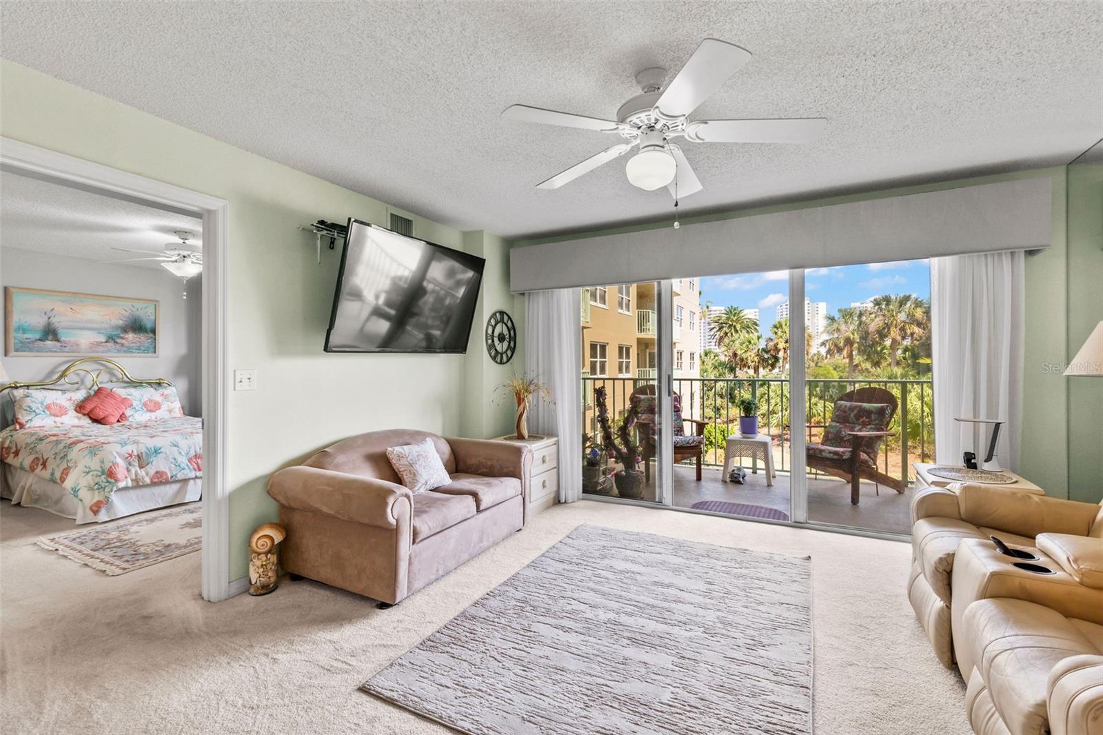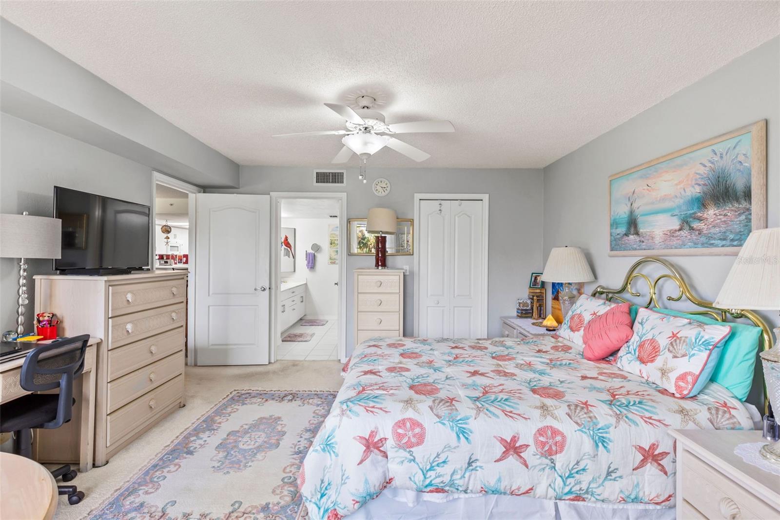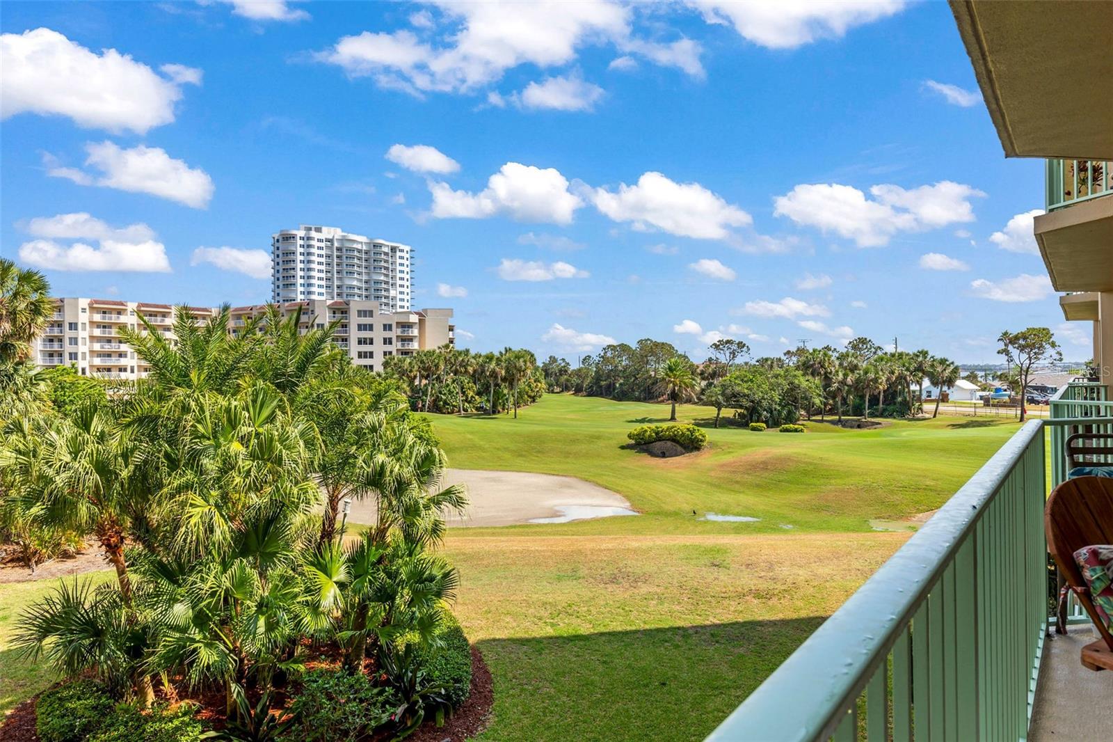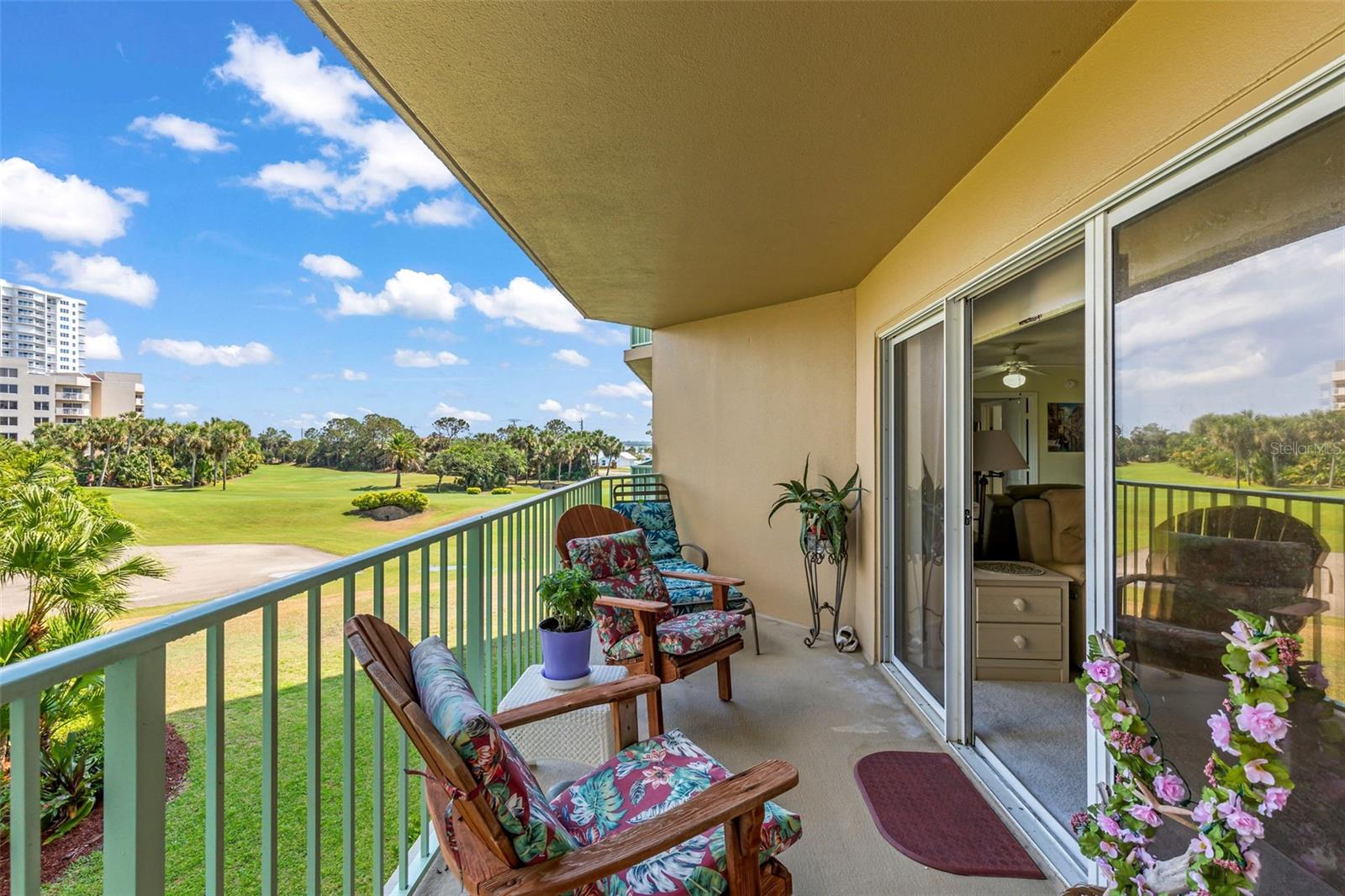 Welcome to your serene getaway in Daytona Beach Shores! This charming 2-bedroom, 2-bath condo offers a perfect blend of comfort and coastal living tucked in the corner of the building. As you step inside, you are greeted by an open-concept living space filled with natural light, thanks to large sliding glass doors that showcase glimpses of the tranquil river views and of the golf course. The spacious living room invites relaxation with its cozy furnishings making it an ideal spot for unwinding after a day at the beach. The adjacent dining area seamlessly connects to the fully equipped kitchen, featuring ample counter space, and a breakfast bar for casual meals. Also, you have a 11 x 09 den or office area great for guest or an additional office area and inside laundry. Retreat to the master bedroom, which boasts an en-suite bath for added privacy and convenience and double sinks, walk in shower and a full size tub! Plenty of room in your walk in closet for all your shoes and all your clothing! The second bedroom is equally inviting, perfect for guests or family, and is conveniently located near the second bath. Step out onto the private balcony to enjoy your morning coffee or watch the sunset over the river, creating a peaceful ambiance that defines this coastal retreat. Additional amenities include access to community features such as the indoor pool and the outdoor pool, hot tub, sauna, fitness center, mail room, library and more! This unit has one assigned parking spot and a guest parking spot right next to it. Also, this unit has 2 storage areas for all your beach accessories. Located just a short distance from the beach, this condo is the perfect place to experience the best of Daytona Beach Shores, with its beautiful coastline, vibrant local culture, and recreational activities. Don't miss your chance to own this slice of paradise! All information deemed accurate but cannot be guaranteed.
