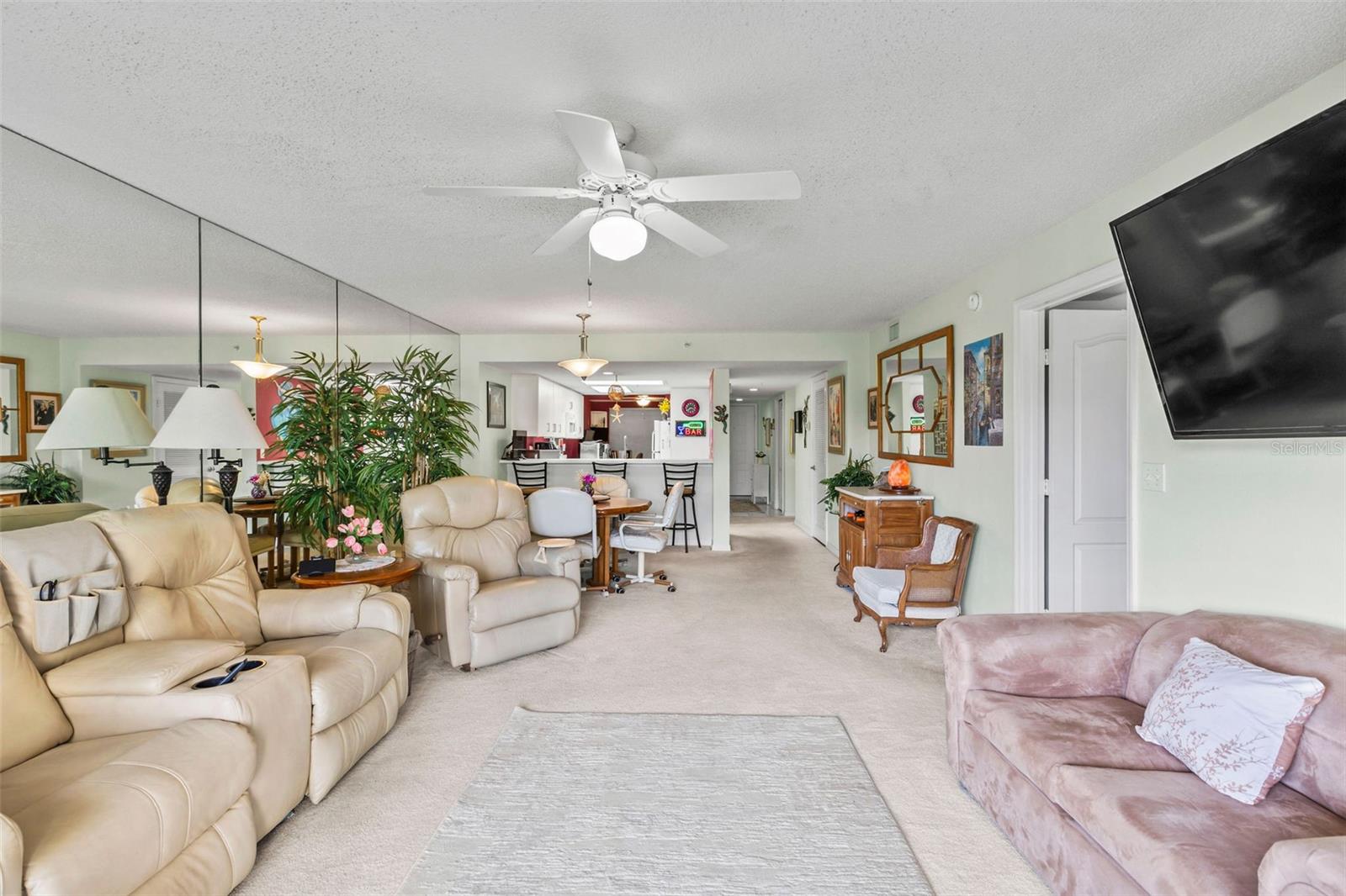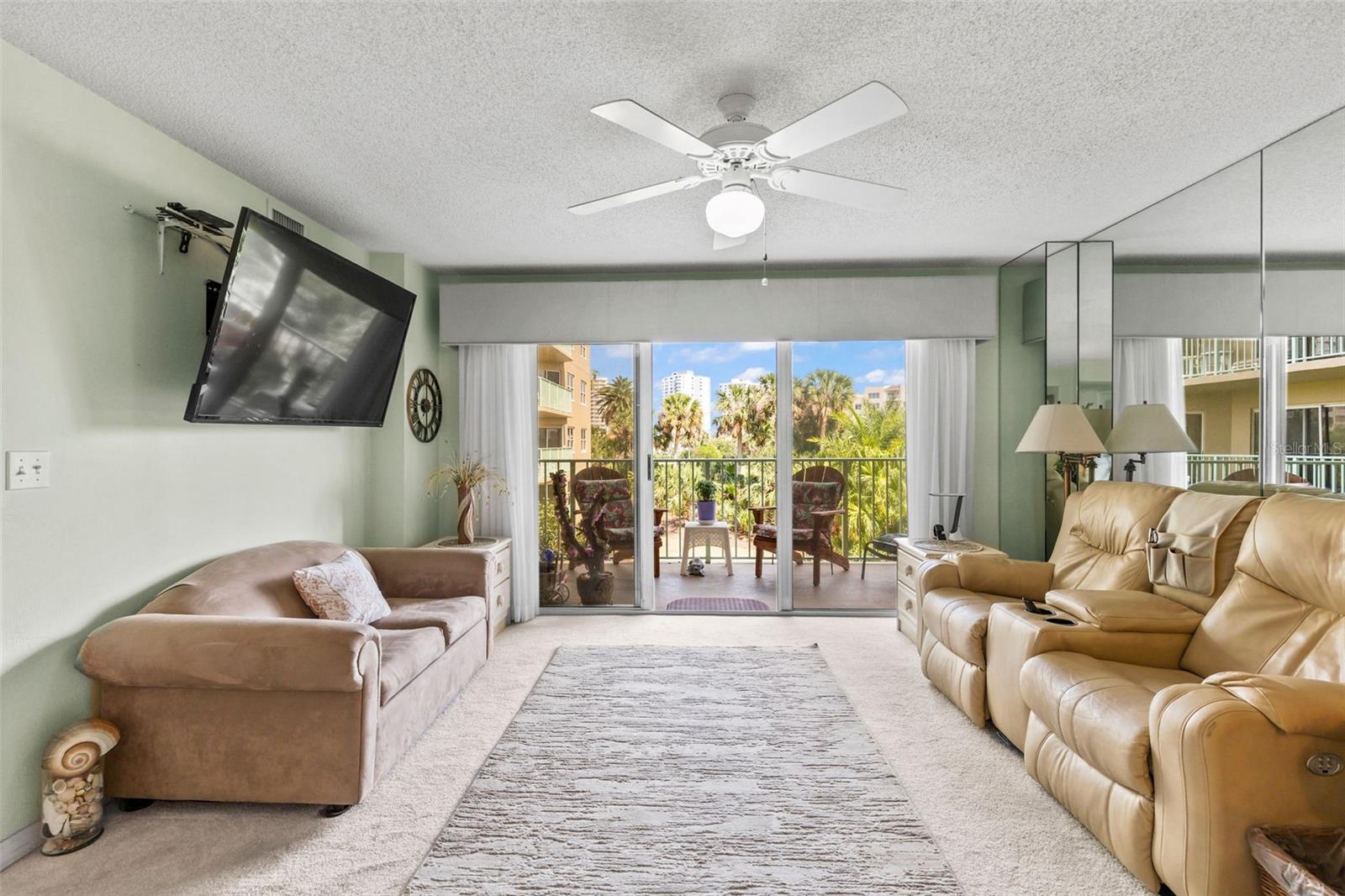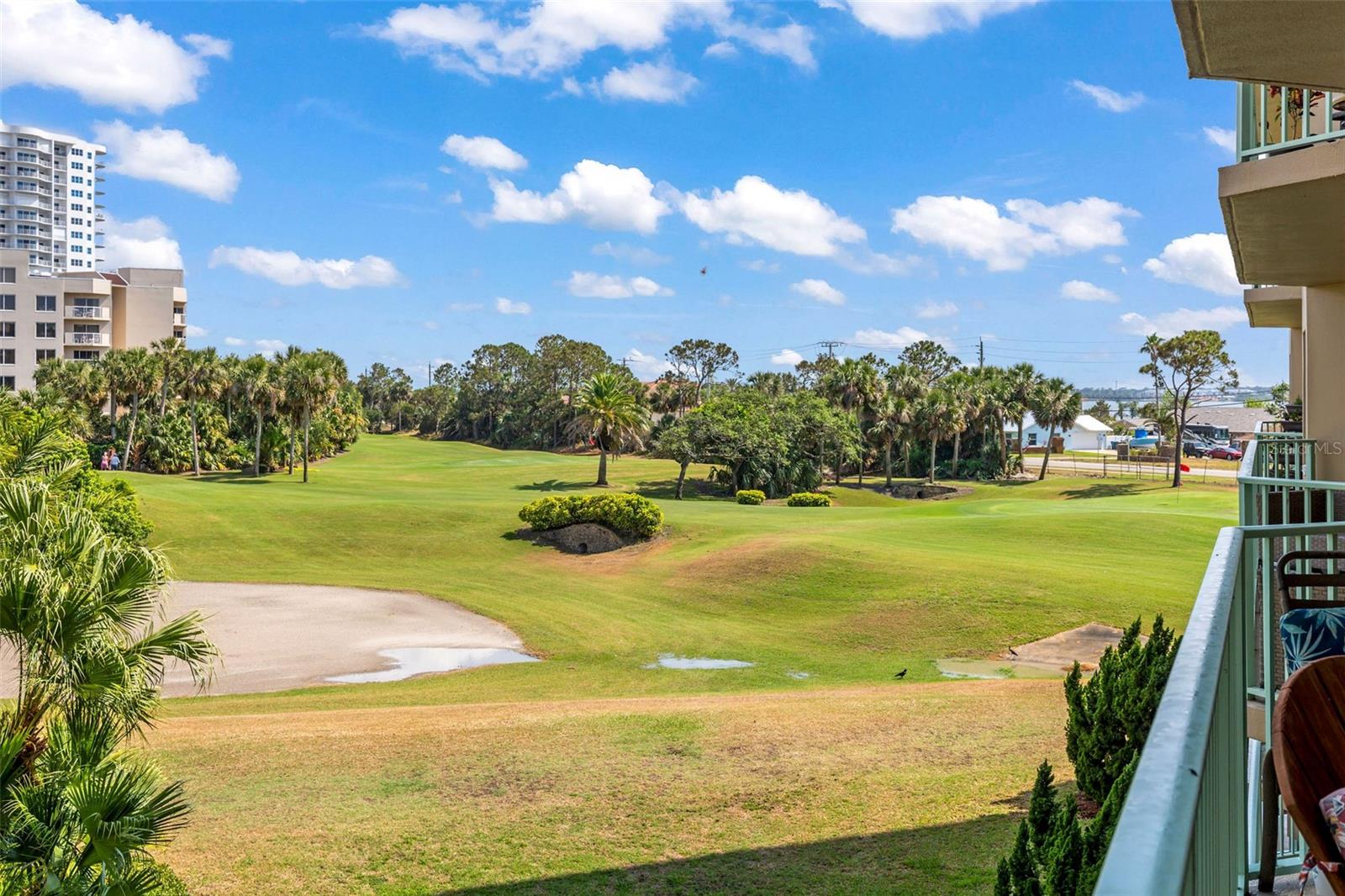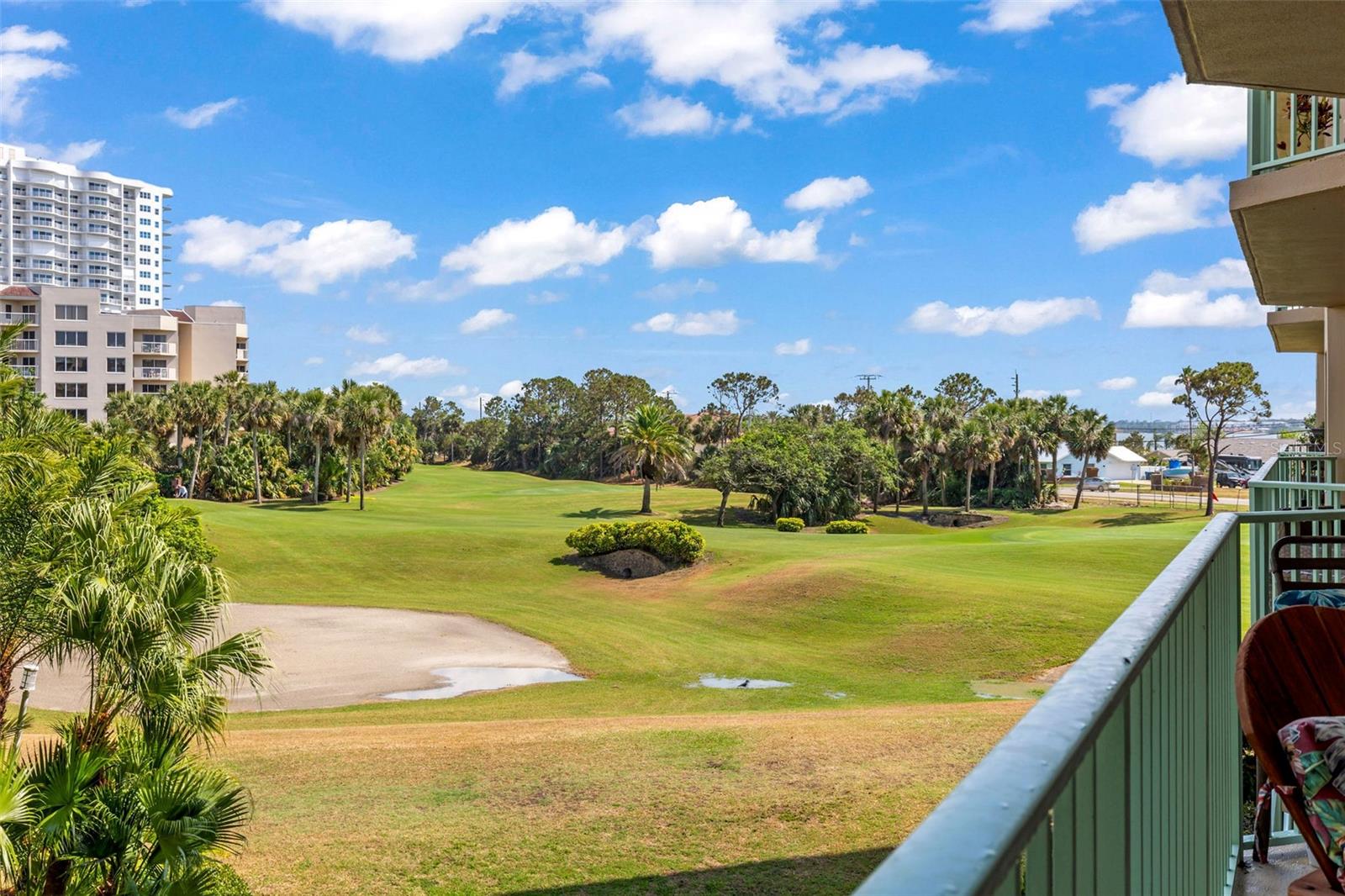 Welcome to your serene getaway in Daytona Beach Shores! This charming 2-bedroom, 2-bath condo offers a perfect blend of comfort and coastal living tucked in the corner of the building. As you step inside, you are greeted by an open-concept living space filled with natural light, thanks to large sliding glass doors that showcase glimpses of the tranquil river views and of the golf course. The spacious living room invites relaxation with its cozy furnishings making it an ideal spot for unwinding after a day at the beach. The adjacent dining area seamlessly connects to the fully equipped kitchen, featuring ample counter space, and a breakfast bar for casual meals. Also, you have a 11 x 09 den or office area great for guest or an additional office area and inside laundry. Retreat to the master bedroom, which boasts an en-suite bath for added privacy and convenience and double sinks, walk in shower and a full size tub! Plenty of room in your walk in closet for all your shoes and all your clothing! The second bedroom is equally inviting, perfect for guests or family, and is conveniently located near the second bath. Step out onto the private balcony to enjoy your morning coffee or watch the sunset over the river, creating a peaceful ambiance that defines this coastal retreat. Additional amenities include access to community features such as the indoor pool and the outdoor pool, hot tub, sauna, fitness center, mail room, library and more! This unit has one assigned parking spot and a guest parking spot right next to it. Also, this unit has 2 storage areas for all your beach accessories. Located just a short distance from the beach, this condo is the perfect place to experience the best of Daytona Beach Shores, with its beautiful coastline, vibrant local culture, and recreational activities. Don't miss your chance to own this slice of paradise! All information deemed accurate but cannot be guaranteed.