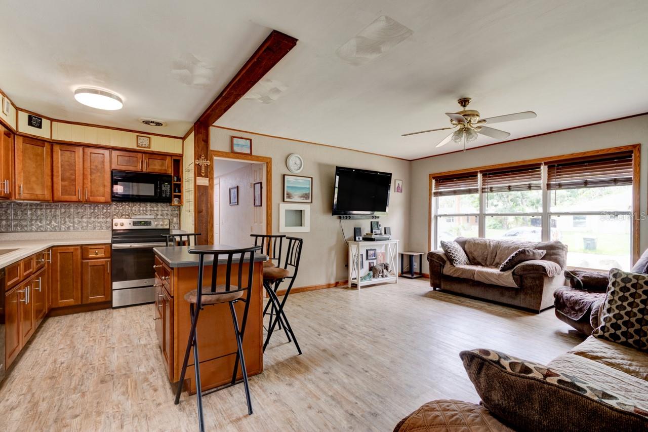 Welcome to your new home in the heart of Daytona Beach—NO HOA and no hurricane or flood damage! This beautifully remodeled 3-bedroom, 2-bath home is perfectly situated near all of Daytona’s top attractions, including the beaches, International Speedway, shopping, schools, and hospitals. Step inside to a spacious open-concept living area and kitchen, ideal for entertaining. The kitchen features an island for extra prep space, along with a generous walk-in pantry and a separate indoor laundry room for added convenience. Just off the kitchen, you’ll find an enclosed bonus room that leads out to your fully fenced backyard perfect for relaxing or entertaining. The stunning master suite boasts a luxurious clawfoot tub, a separate walk-in shower, and direct access to your own private covered patio with plenty of space for outdoor seating. Need extra space? The backyard includes a massive 15x41 detached workshop ideal for working from home, pursuing hobbies, or additional storage plus even more covered storage alongside it. This home truly has it all modern updates, prime location, and plenty of space both inside and out!