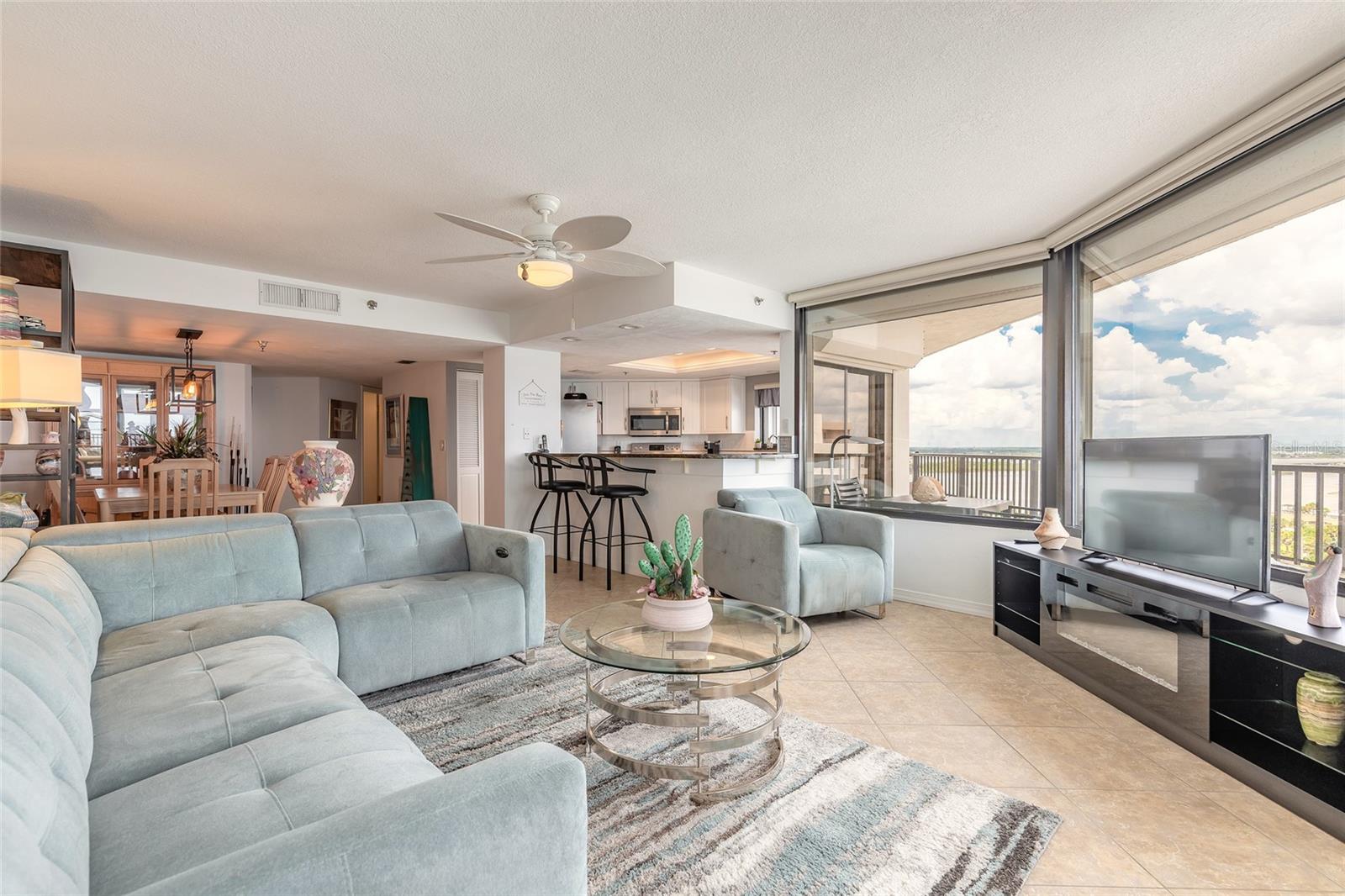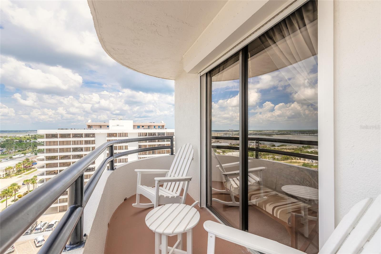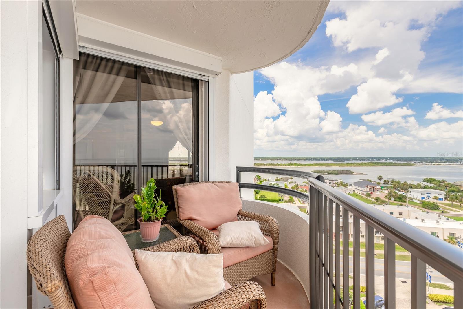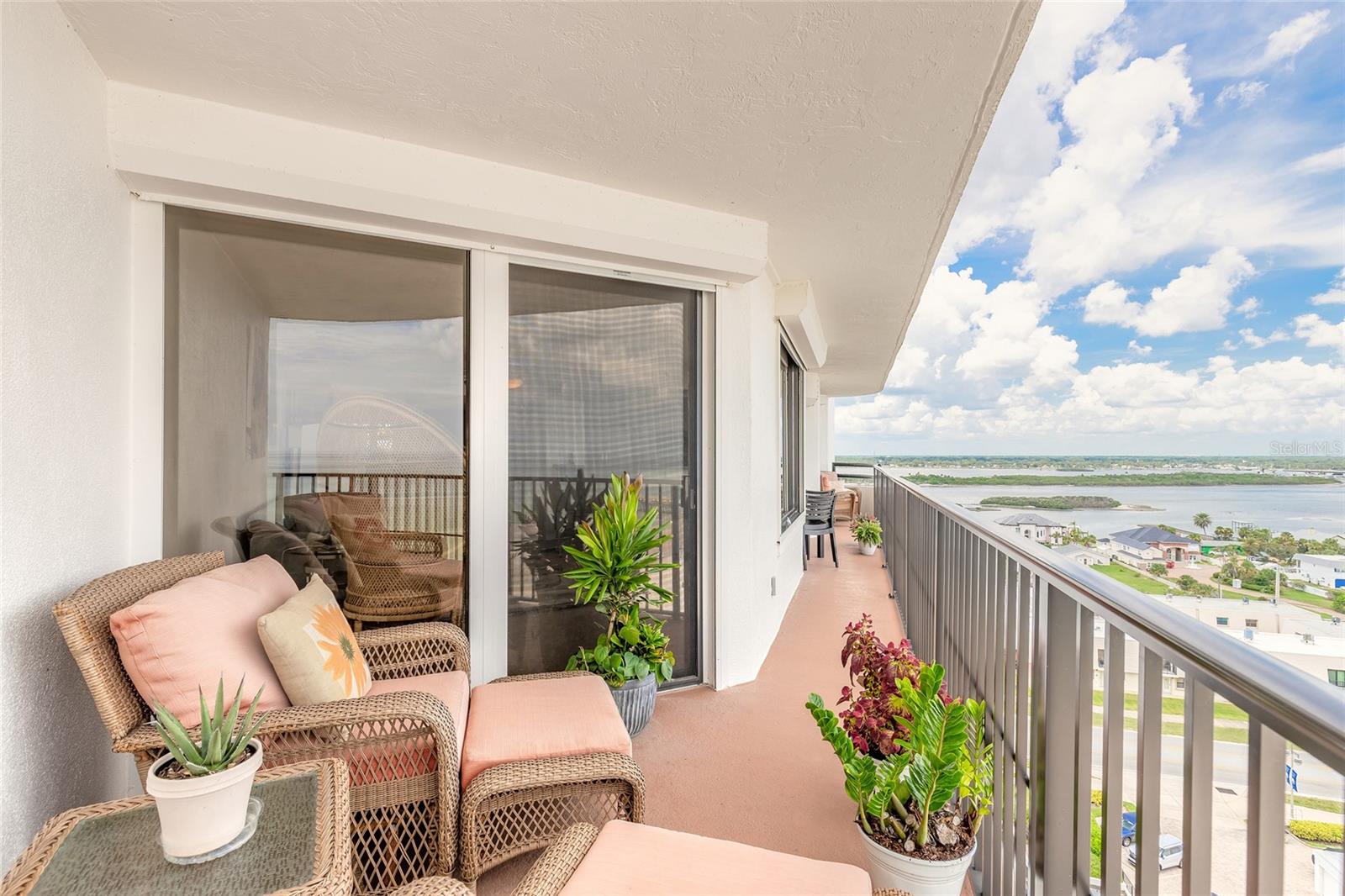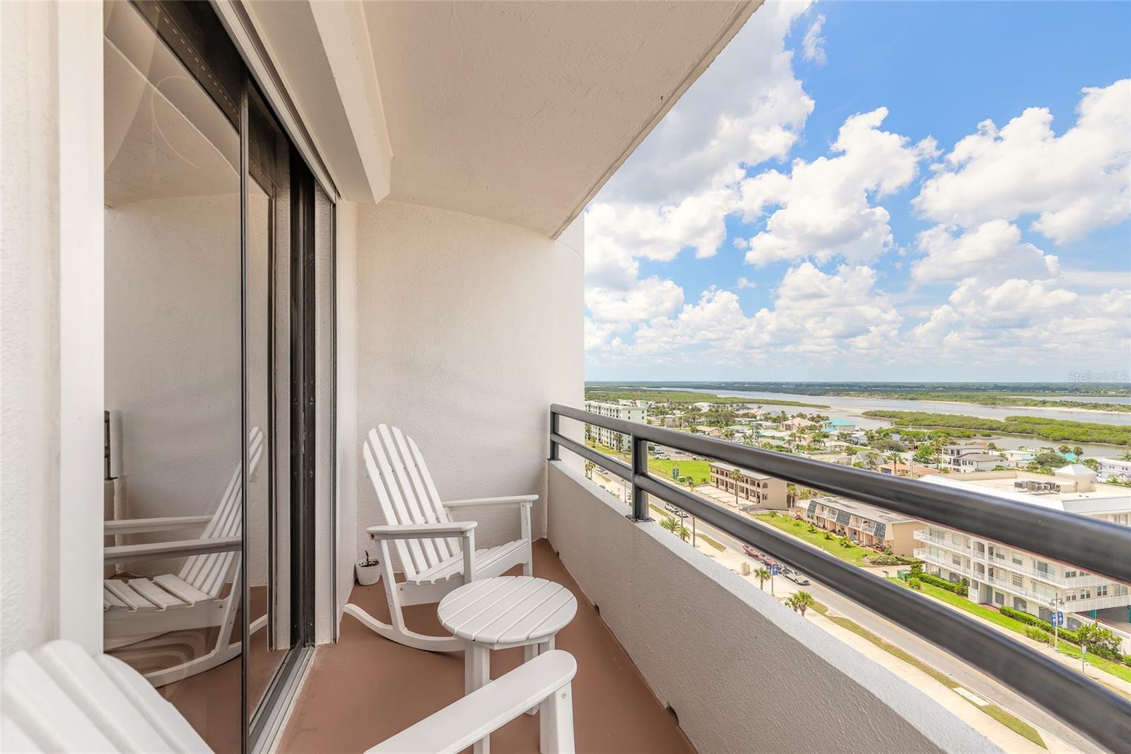 Welcome to The Ashley, one of the most prestigious and architecturally distinctive oceanfront condominiums in Daytona Beach Shores. Renowned for its striking design, exceptional financial stability, meticulous maintenance, and the attentive service of its dedicated live-in managers, The Ashley offers a lifestyle of ease, comfort, and coastal elegance. This highly sought-after end unit is one of the largest floor plans in the building, spanning nearly 1,600 square feet and stretching from the east to west sides of the tower, providing uninterrupted panoramic views of both the Atlantic Ocean and the Intracoastal Waterway. Perched on the 12th floor, it delivers breathtaking sunrise and sunset vistas from its expansive 50-foot-long private balcony, allowing you to enjoy both ocean breezes and riverfront glow. Inside, the unit has been tastefully updated with porcelain tile flooring, brand-new carpeting, and a 2020 HVAC system to ensure energy-efficient, year-round comfort. The flowing layout features an open living and dining area filled with natural light, a well-appointed kitchen, and spacious bedroomsall designed to maximize views and comfort. The Ashley offers a comprehensive suite of resort-style amenities designed for relaxation and recreation, including a heated oceanfront pool, indoor spa and saunas, fitness center, game room, bicycle storage rooms, BBQ and picnic area, and an expansive rooftop sun deck. The top-floor community room, complete with floor-to-ceiling windows, offers breathtaking 360-degree views, making it an ideal space for hosting gatherings or simply unwinding. Additional features include two unassigned underground parking spaces and a private storage cage, perfect for storing your beach gear and seasonal items. The Ashley also allows for short-term rentals (minimum one week), making this a great option for both personal use and investment potential. This is a rare opportunity to own a beautifully maintained, direct oceanfront end unit in one of the area's most respected and desirable condominium communities. Experience the very best of coastal living, schedule your private showing today! All information deemed accurate but cannot be guaranteed.