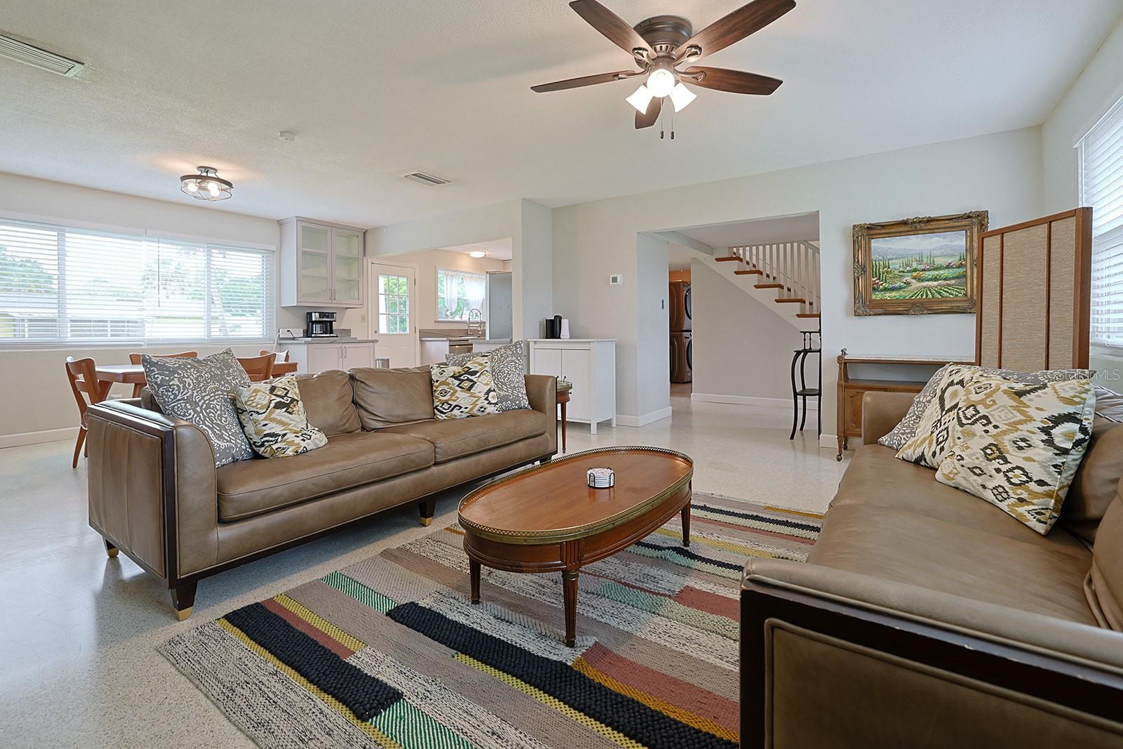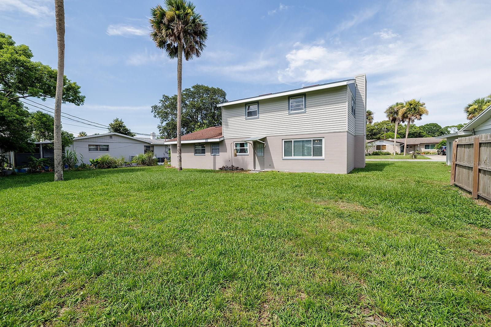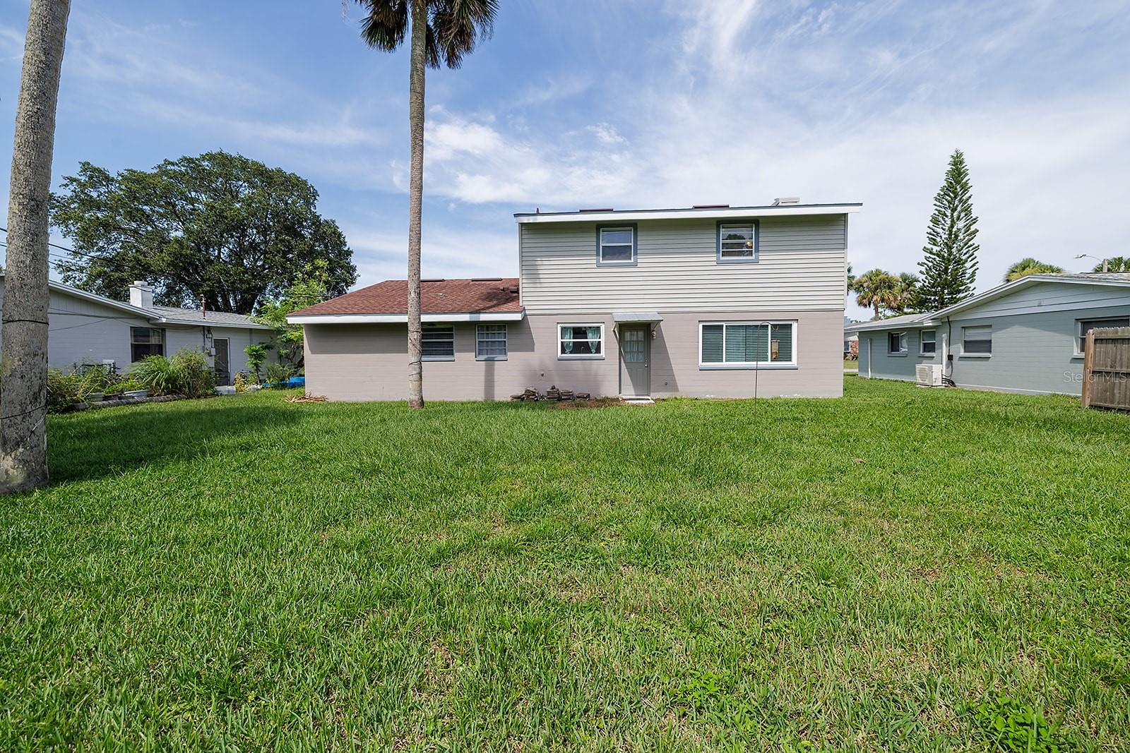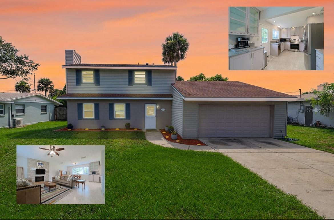 $10K in closing/Flex costs with full price offer! Ever dreamed of two primary suites or an ideal in-law setup? This freshly painted 4-bedroom, 3-bath home boasts a rare layout with private en-suite bedrooms on both the first and second floors. Enjoy classic terrazzo floors, a cozy fireplace, and a spacious downstairs suite. The beautifully updated kitchen features quartzite counters, soft-close cabinets, deep chef’s sink, coffee station, stylish fixtures, and 2023 stainless steel appliances. The open design includes indoor laundry with sink and a generous yard with no HOA. Upstairs offers rich wood floors, two large guest rooms, a full bath, and a huge second primary with en-suite bath and walk-in closet. Car lovers will love the oversized 2-car garage with vaulted ceiling ready for a lift, workbench, drink fridge, and abundant storage. Updates include a 2025 water heater and 2023 HVAC. Just steps to grocery and department stores, minutes to the beach, and 1.5 hours to Orlando.