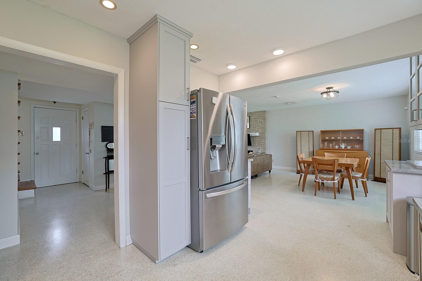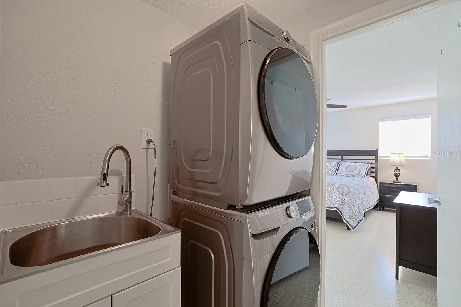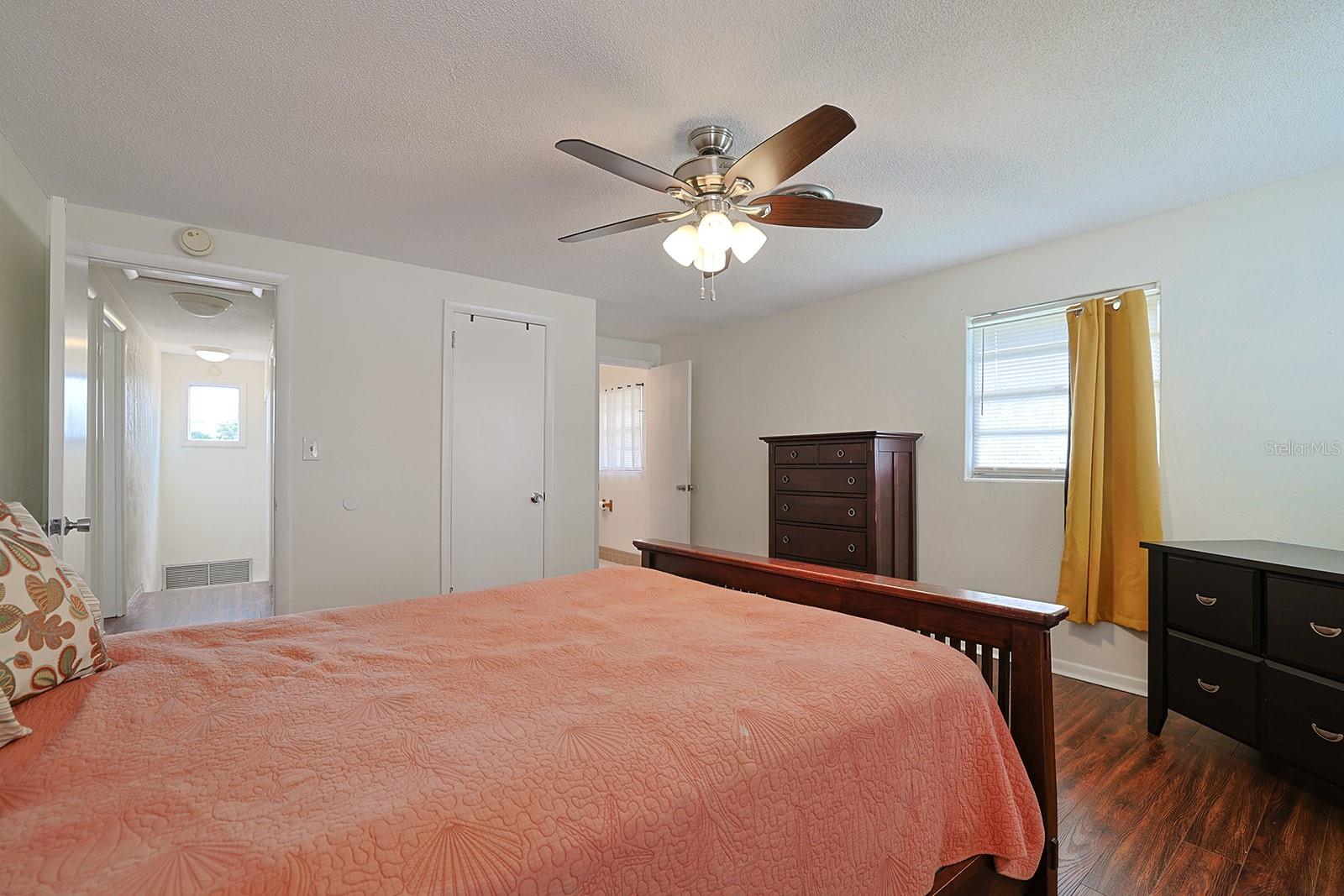$10K in closing/Flex costs with full price offer! Ever dreamed of two primary suites or an ideal in-law setup? This freshly painted 4-bedroom, 3-bath home boasts a rare layout with private en-suite bedrooms on both the first and second floors. Enjoy classic terrazzo floors, a cozy fireplace, and a spacious downstairs suite. The beautifully updated kitchen features quartzite counters, soft-close cabinets, deep chef’s sink, coffee station, stylish fixtures, and 2023 stainless steel appliances. The open design includes indoor laundry with sink and a generous yard with no HOA. Upstairs offers rich wood floors, two large guest rooms, a full bath, and a huge second primary with en-suite bath and walk-in closet. Car lovers will love the oversized 2-car garage with vaulted ceiling ready for a lift, workbench, drink fridge, and abundant storage. Updates include a 2025 water heater and 2023 HVAC. Just steps to grocery and department stores, minutes to the beach, and 1.5 hours to Orlando.