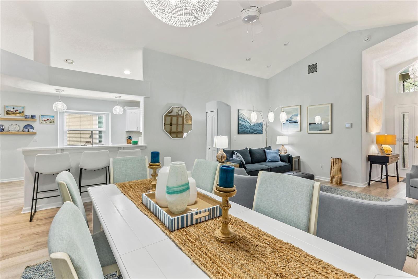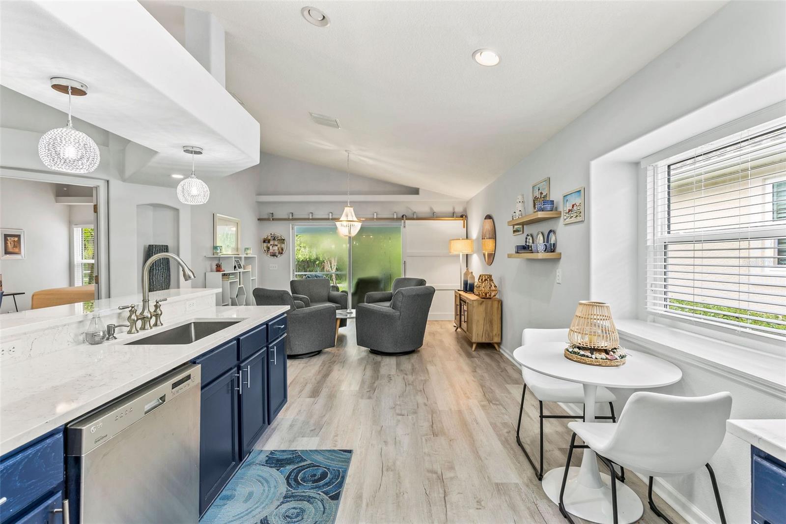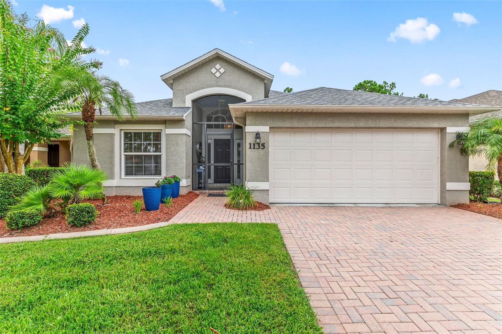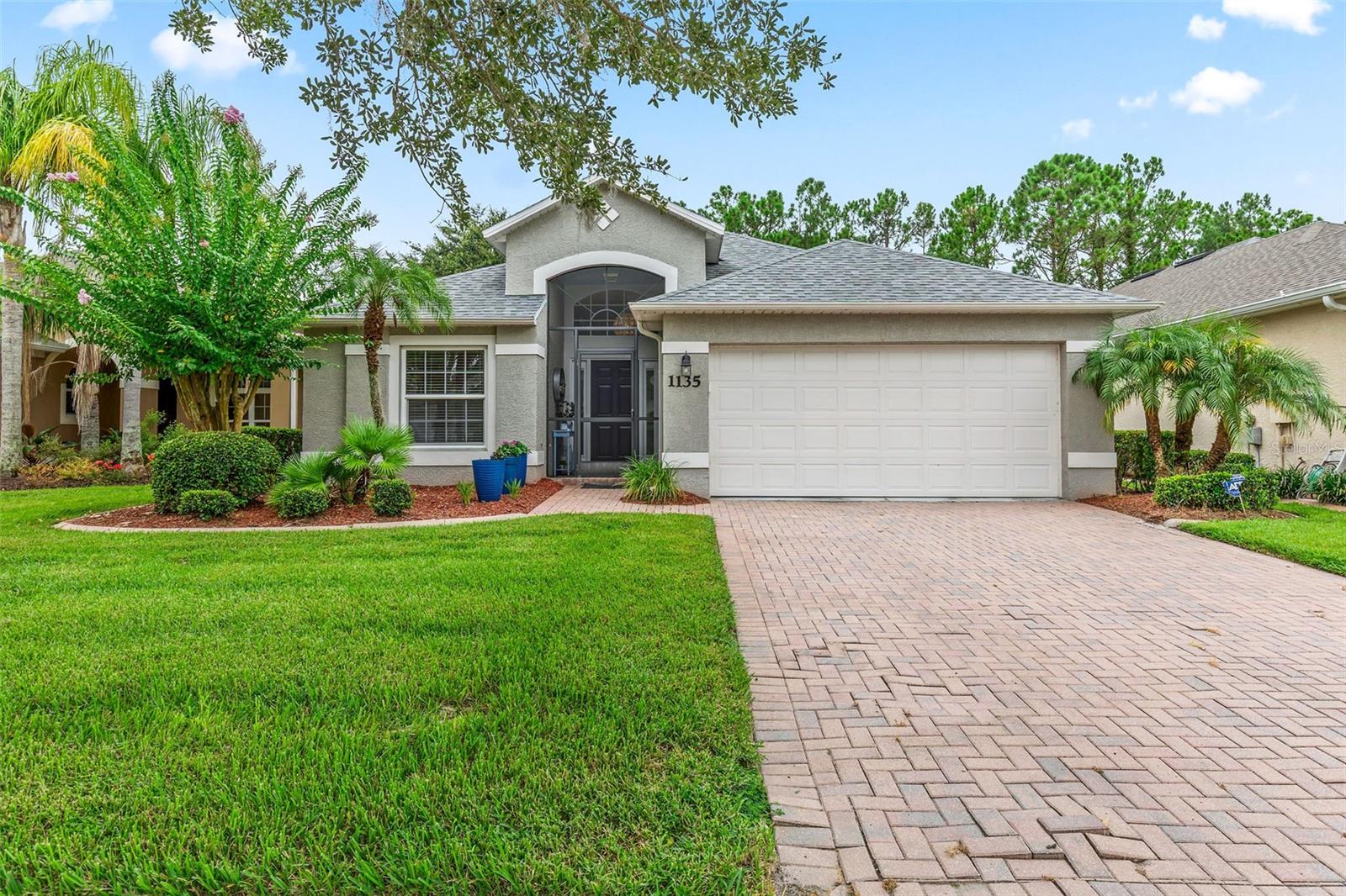 Walk in to an amazingly well-renovated home with tons of charm! This beautifully remodeled Cayman model home with only a five-year-old roof, as well hurricane impact windows (2018), is concrete block and will offer security and comfort. Meticulously maintained, you will love the paver driveway leading up to a two-car garage and a screened front patio area. You will be so impressed with the thoughtful renovation that offers luxury vinyl flooring throughout, two living room areas for entertaining, a breakfast bar, a lovely screened porch with plenty of room for seating, and much more. This house is a show-stopper, offering volume ceilings, niches, and a split bedroom plan. The updated guest bathroom with frameless shower doors and lots of contemporary style provides comfort as well as style. The primary suite is large and offers an ensuite bath and a huge walk-in closet. The kitchen provides lots of counter space for the cook in your family, quartz counters, stainless appliances, a tiled backsplash, cobalt cabinets, and a very spacious pantry. You will enjoy the low maintenance and seamless look of laminate flooring in living areas and bedrooms. This home features newer fans, lighting, toilets, and a transferrable termite bond. Enjoy peaceful mornings on the screened porch with a water & conservation area view! A golf cart path behind the home leads to the Par 3 practice area, so you won't see much traffic driving by! This home is a short walk or bike ride to the LPGA Clubhouse for dinner, golfing, swimming, or socializing. LPGA is also a stone's throw from all of the entertainment options like Tanger Outlets, Bucees, PopStroke, I-4, and I-95, and only 15 minutes to the area beaches. You simply can't beat this location in terms of being central and close to all the great restaurants and conveniences. All information taken from the tax record, and while deemed reliable, cannot be guaranteed.