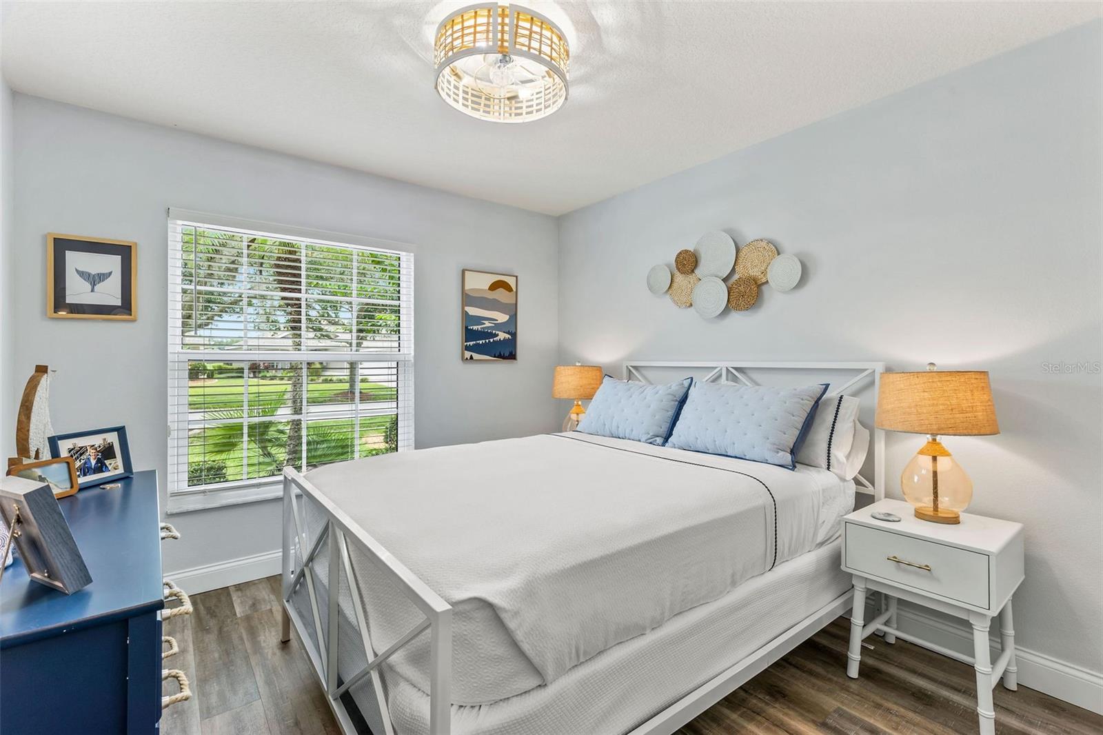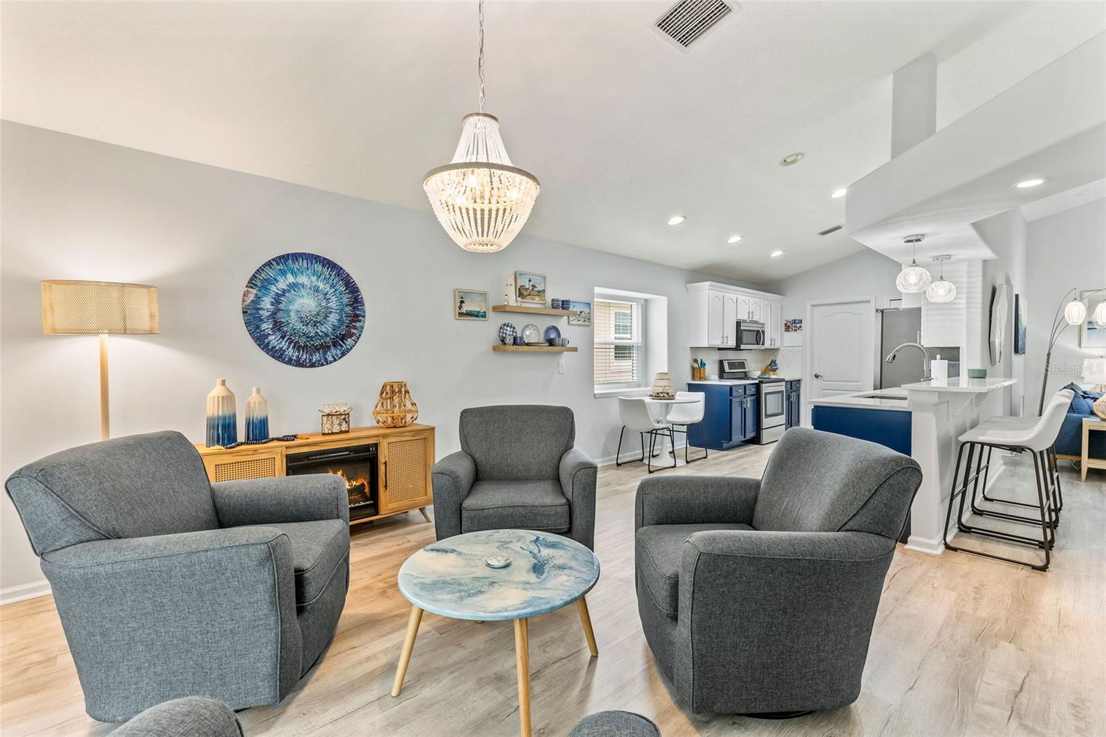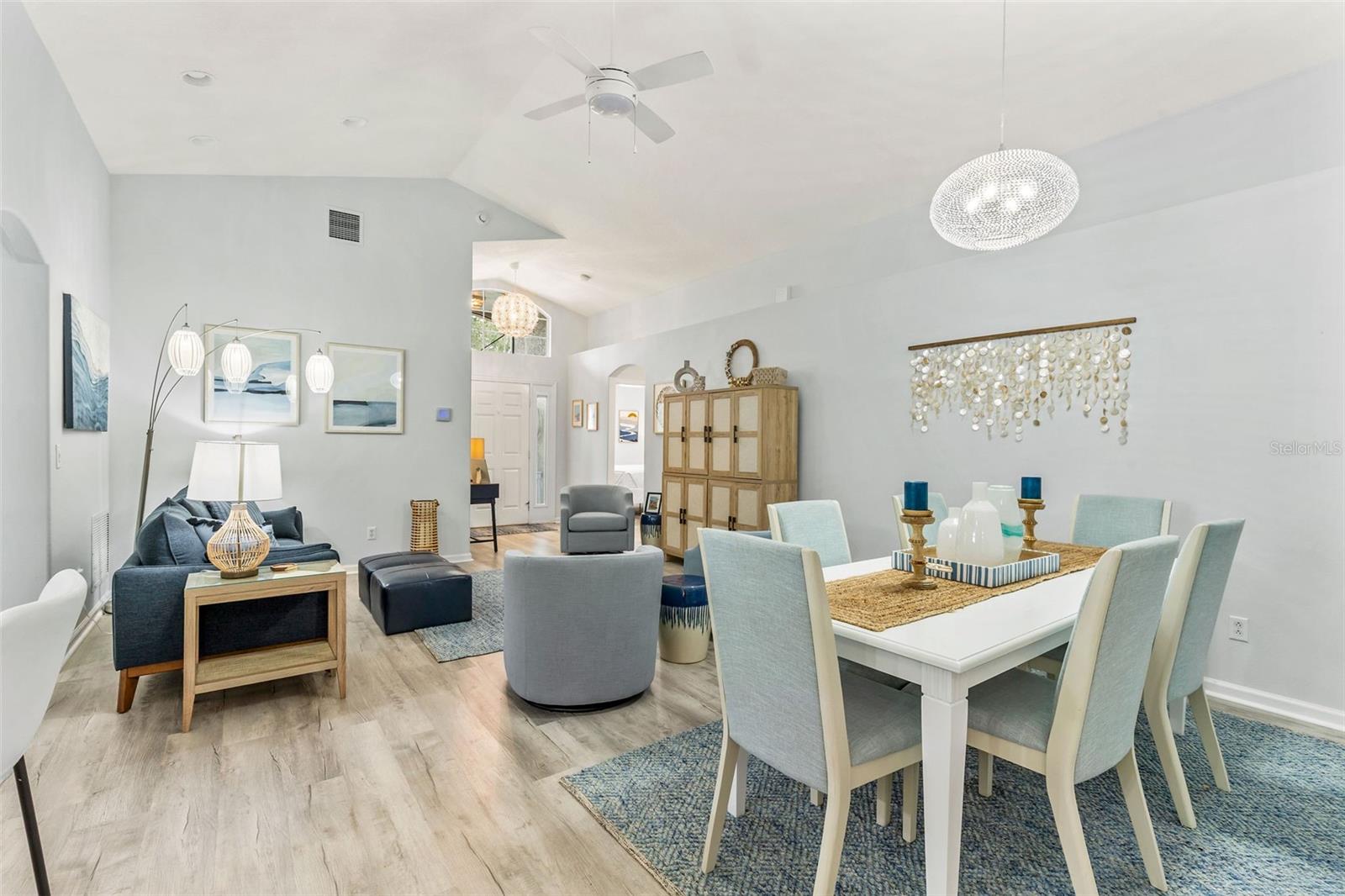 Walk in to an amazingly well-renovated home with tons of charm! This beautifully remodeled Cayman model home with only a five-year-old roof, as well hurricane impact windows (2018), is concrete block and will offer security and comfort. Meticulously maintained, you will love the paver driveway leading up to a two-car garage and a screened front patio area. You will be so impressed with the thoughtful renovation that offers luxury vinyl flooring throughout, two living room areas for entertaining, a breakfast bar, a lovely screened porch with plenty of room for seating, and much more. This house is a show-stopper, offering volume ceilings, niches, and a split bedroom plan. The updated guest bathroom with frameless shower doors and lots of contemporary style provides comfort as well as style. The primary suite is large and offers an ensuite bath and a huge walk-in closet. The kitchen provides lots of counter space for the cook in your family, quartz counters, stainless appliances, a tiled backsplash, cobalt cabinets, and a very spacious pantry. You will enjoy the low maintenance and seamless look of laminate flooring in living areas and bedrooms. This home features newer fans, lighting, toilets, and a transferrable termite bond. Enjoy peaceful mornings on the screened porch with a water & conservation area view! A golf cart path behind the home leads to the Par 3 practice area, so you won't see much traffic driving by! This home is a short walk or bike ride to the LPGA Clubhouse for dinner, golfing, swimming, or socializing. LPGA is also a stone's throw from all of the entertainment options like Tanger Outlets, Bucees, PopStroke, I-4, and I-95, and only 15 minutes to the area beaches. You simply can't beat this location in terms of being central and close to all the great restaurants and conveniences. All information taken from the tax record, and while deemed reliable, cannot be guaranteed.