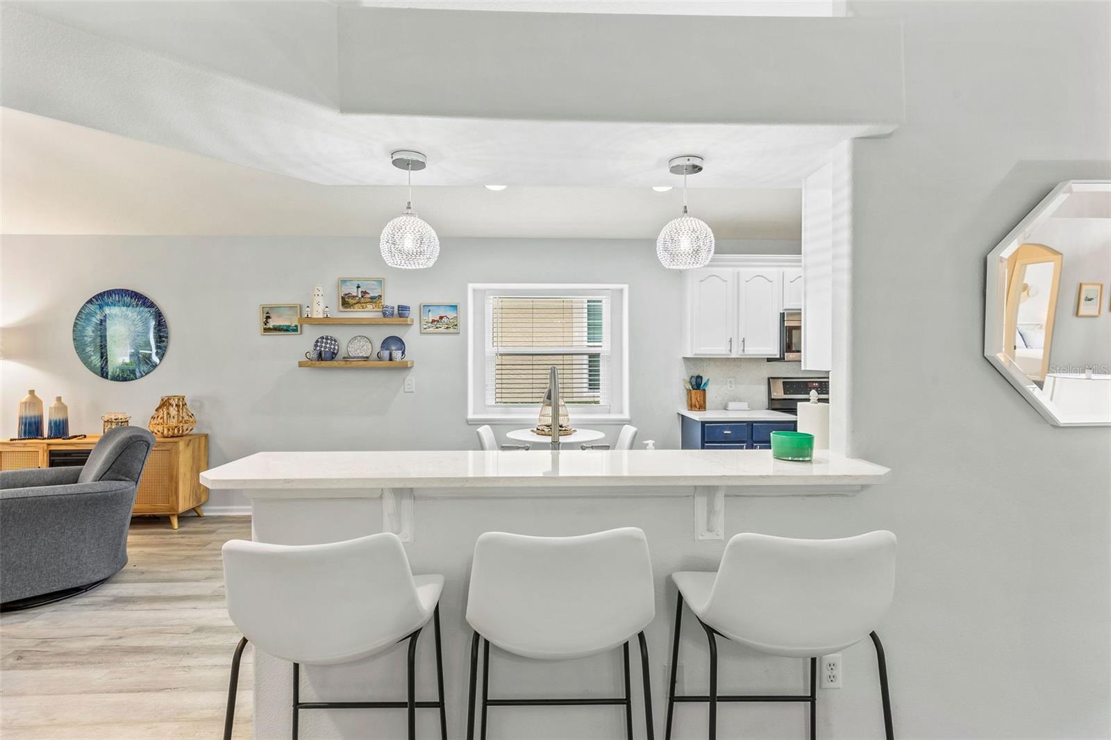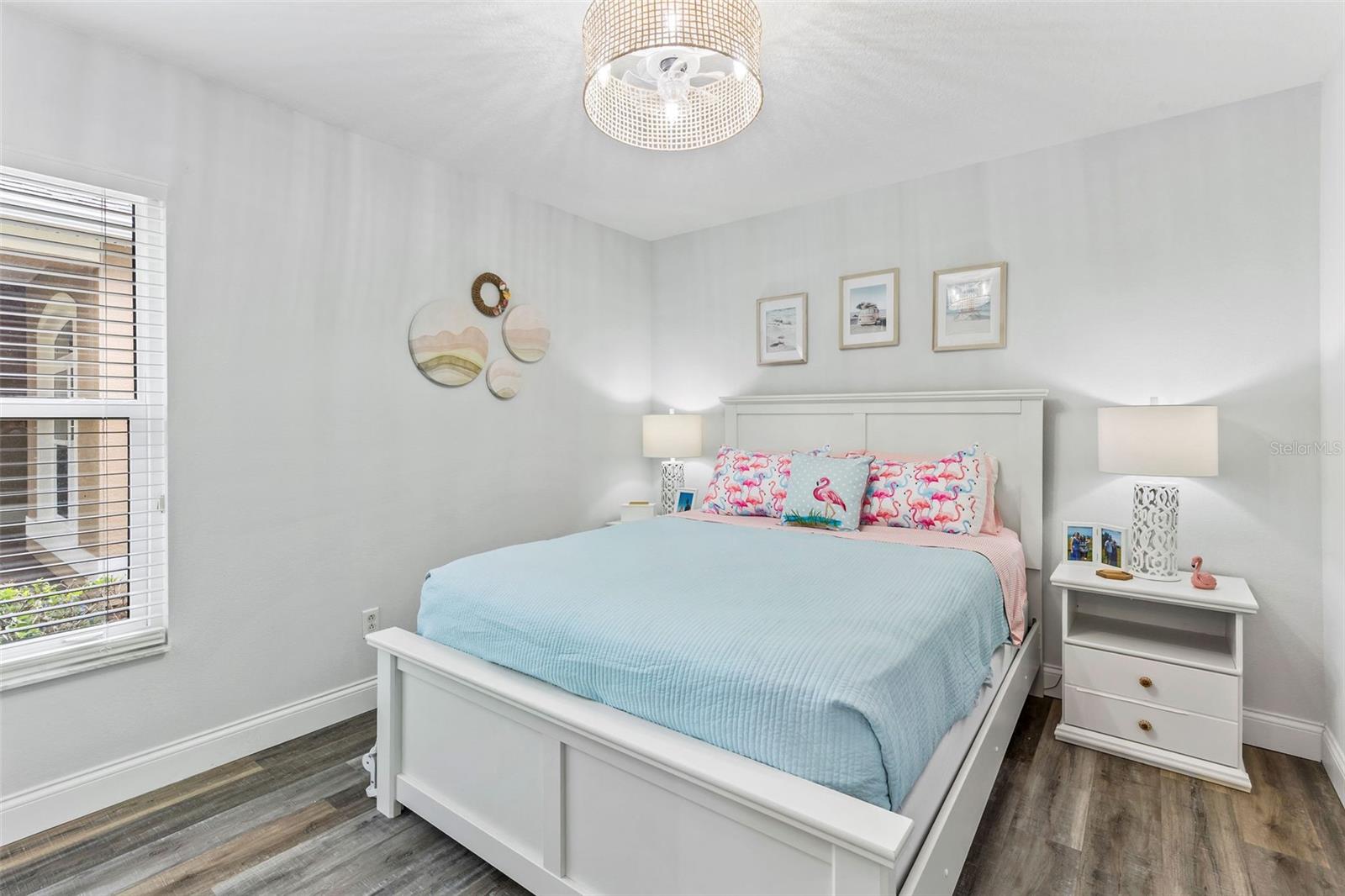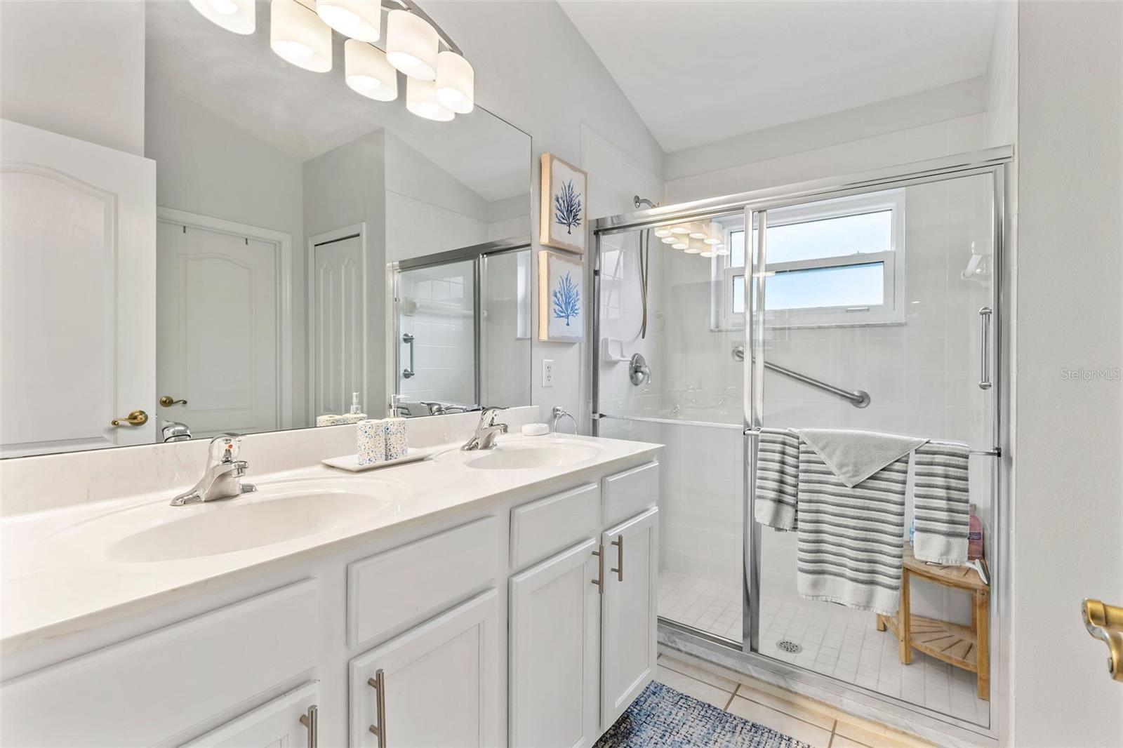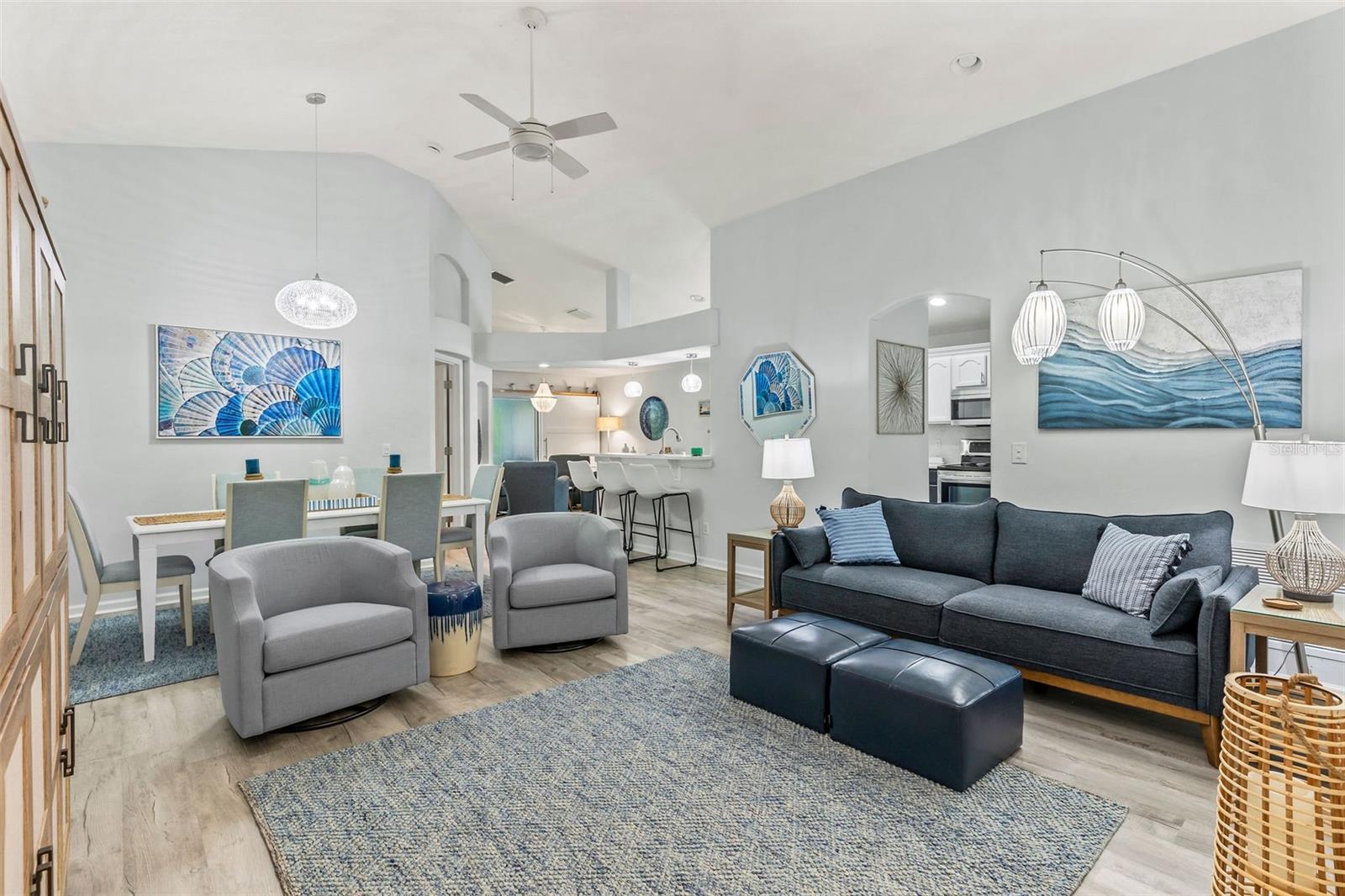 Walk in to an amazingly well-renovated home with tons of charm! This beautifully remodeled Cayman model home with only a five-year-old roof, as well hurricane impact windows (2018), is concrete block and will offer security and comfort. Meticulously maintained, you will love the paver driveway leading up to a two-car garage and a screened front patio area. You will be so impressed with the thoughtful renovation that offers luxury vinyl flooring throughout, two living room areas for entertaining, a breakfast bar, a lovely screened porch with plenty of room for seating, and much more. This house is a show-stopper, offering volume ceilings, niches, and a split bedroom plan. The updated guest bathroom with frameless shower doors and lots of contemporary style provides comfort as well as style. The primary suite is large and offers an ensuite bath and a huge walk-in closet. The kitchen provides lots of counter space for the cook in your family, quartz counters, stainless appliances, a tiled backsplash, cobalt cabinets, and a very spacious pantry. You will enjoy the low maintenance and seamless look of laminate flooring in living areas and bedrooms. This home features newer fans, lighting, toilets, and a transferrable termite bond. Enjoy peaceful mornings on the screened porch with a water & conservation area view! A golf cart path behind the home leads to the Par 3 practice area, so you won't see much traffic driving by! This home is a short walk or bike ride to the LPGA Clubhouse for dinner, golfing, swimming, or socializing. LPGA is also a stone's throw from all of the entertainment options like Tanger Outlets, Bucees, PopStroke, I-4, and I-95, and only 15 minutes to the area beaches. You simply can't beat this location in terms of being central and close to all the great restaurants and conveniences. All information taken from the tax record, and while deemed reliable, cannot be guaranteed.