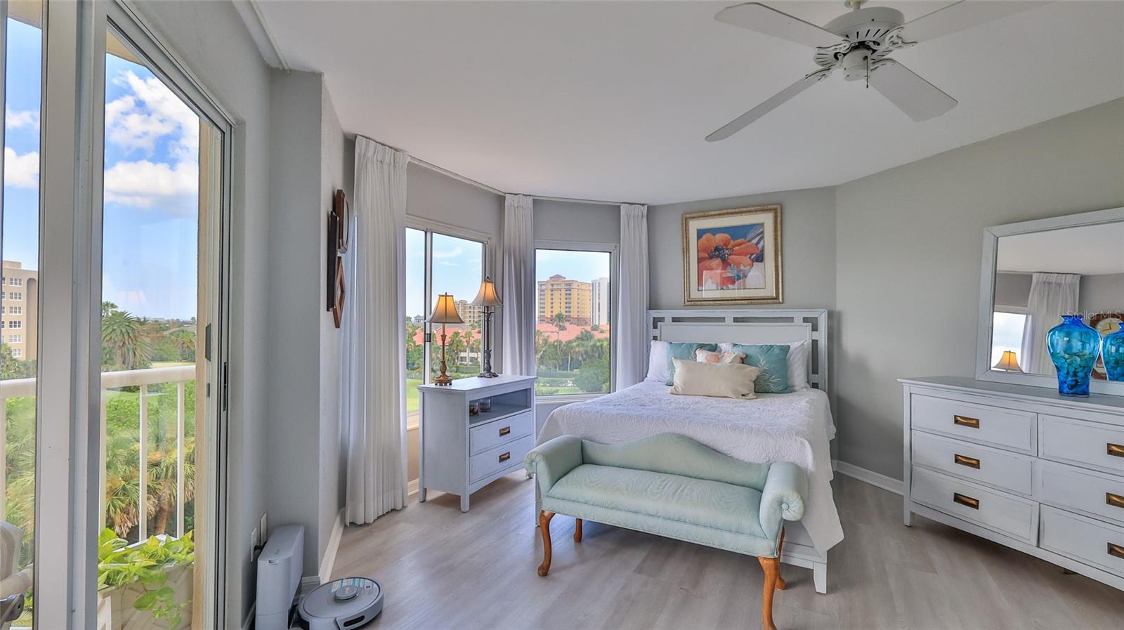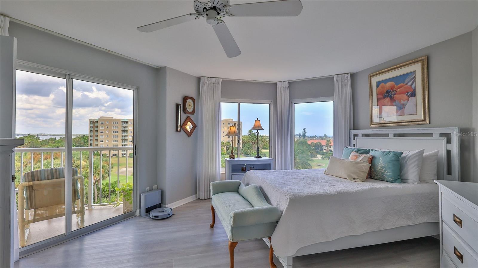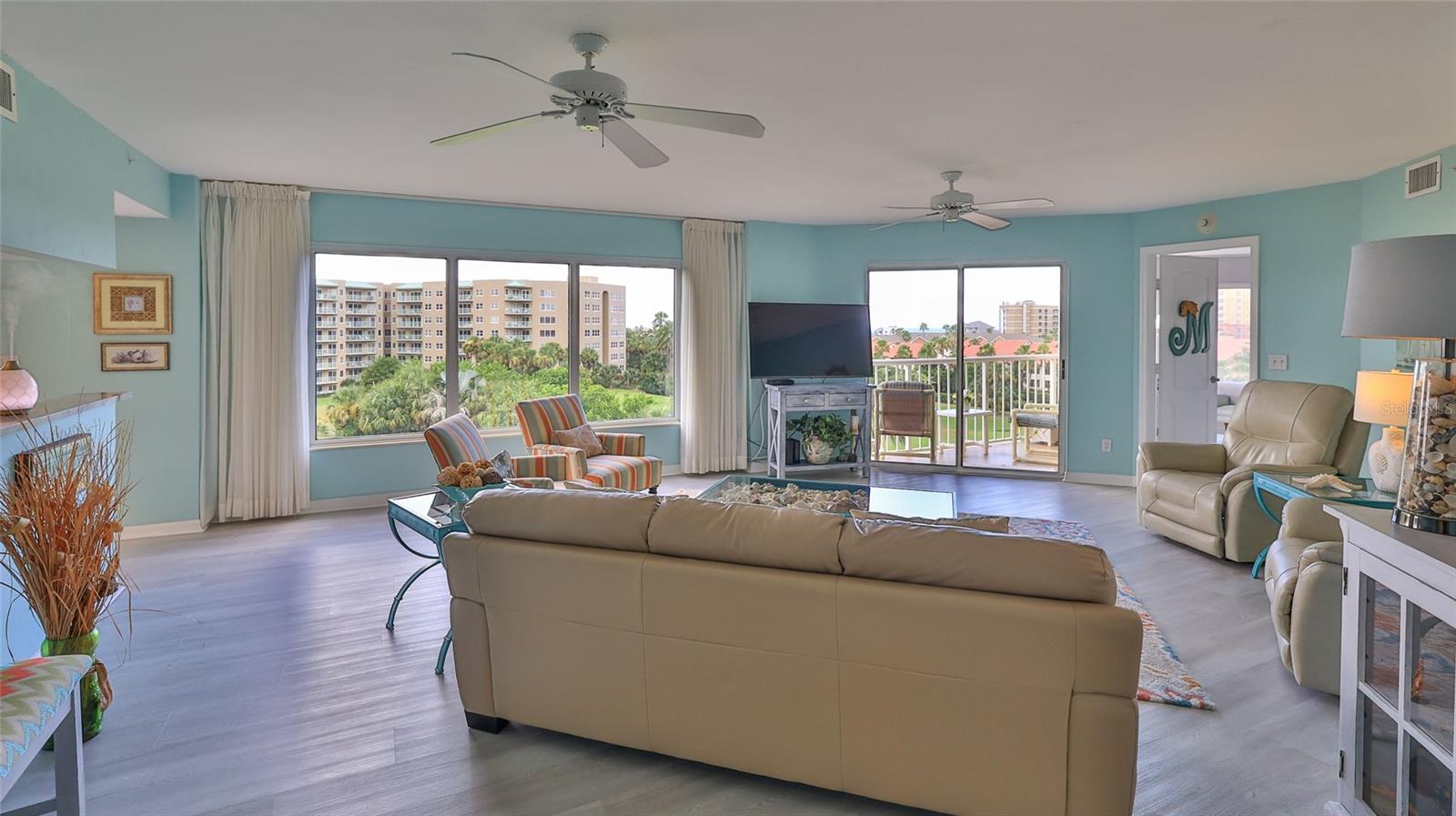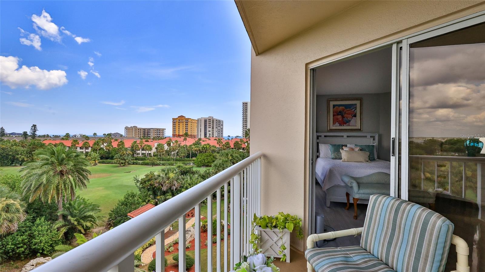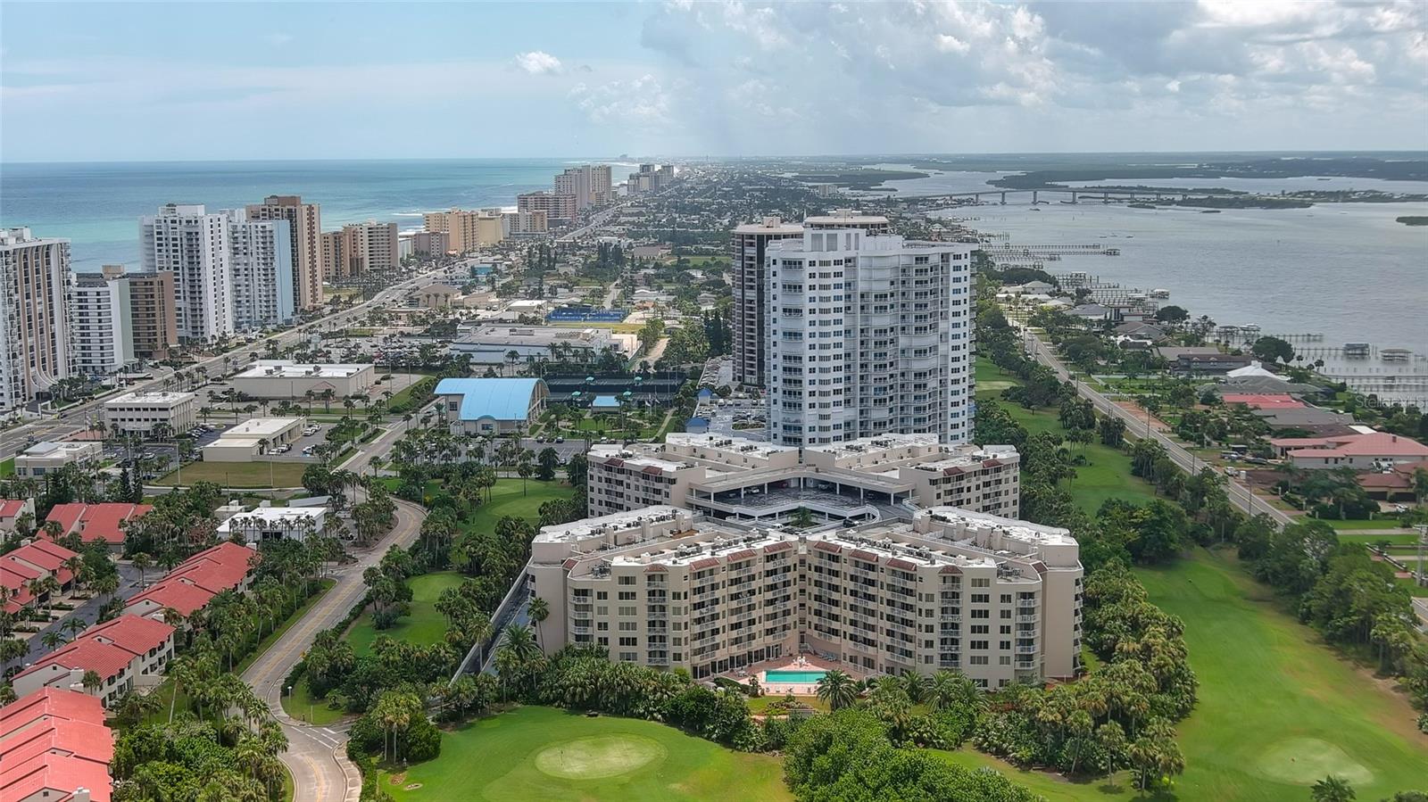 Coastal Living with Panoramic Views! Welcome to this stunning 3 bedroom, 3 bath condo offering spectacular views of the ocean, Intracoastal Waterway, and golf course...a rare trifecta of scenery! Located in a well maintained gated community, this fully furnished home captures the essence of coastal living with soothing ''colors of the sea'' decor and elegant luxury vinyl plank flooring throughout. Enjoy an open, light-filled layout perfect for relaxing or entertaining. Two master suites, each with a private balcony, perfect for taking in sunrise views or evening breezes. The third bedroom offers flexibility for guests or a home office. The location is unbeatable - walking distance to the golf course, the Shores Community Center with pickleball/tennis courts, Publix & Walgreens, a short walk to the beach. Whether you're active, social, or simply enjoy the ease of nearby conveniences, this condo delivers! Drive right up to your floor, no parking garage or elevator to deal with here! Guest parking on each level, too (golf carts ok!). Storage on ground floor. Community amenities include 2 pools (one indoor heated), hot tub, fitness room, library, dog park, and even a car wash! Welcome home!